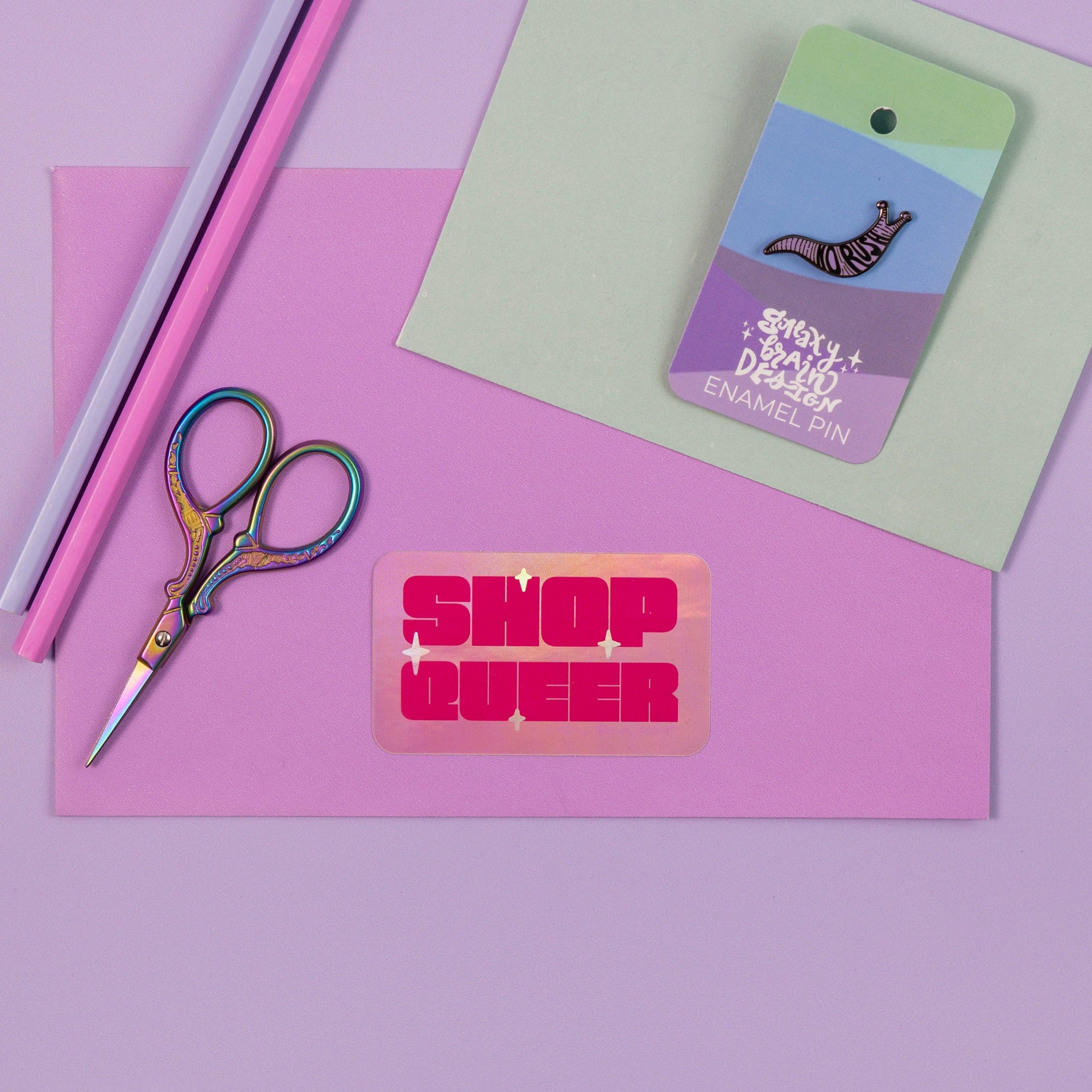 Galaxy Brain Design is a queer-, woman-owned small business selling art, gifts, + home goods for folks that love a wikipedia deep dive, boozy brunch, or therapeutic breakthrough! I founded GBD in 2018 after I — a gay artist with OCD + RBF — quit my full-time nonprofit marketing job. It was honestly kind of soul-crushing to see a cause I care about get tangled up in red tape and now I get to do the work on my own terms! I primarily make art about queerness, mental health, and — idk — what it means to be a good person in a broken society? and major motifs include plants, space, and other natural elements, which you'll find on high quality art prints, stickers, pins, puzzles, + whatever else strikes my fancy! I'm grateful every day for this avenue of self-expression, community-building, + mutual aid and I LOVE meeting other passionate, progressive small business owners on Faire — look forward to your order!