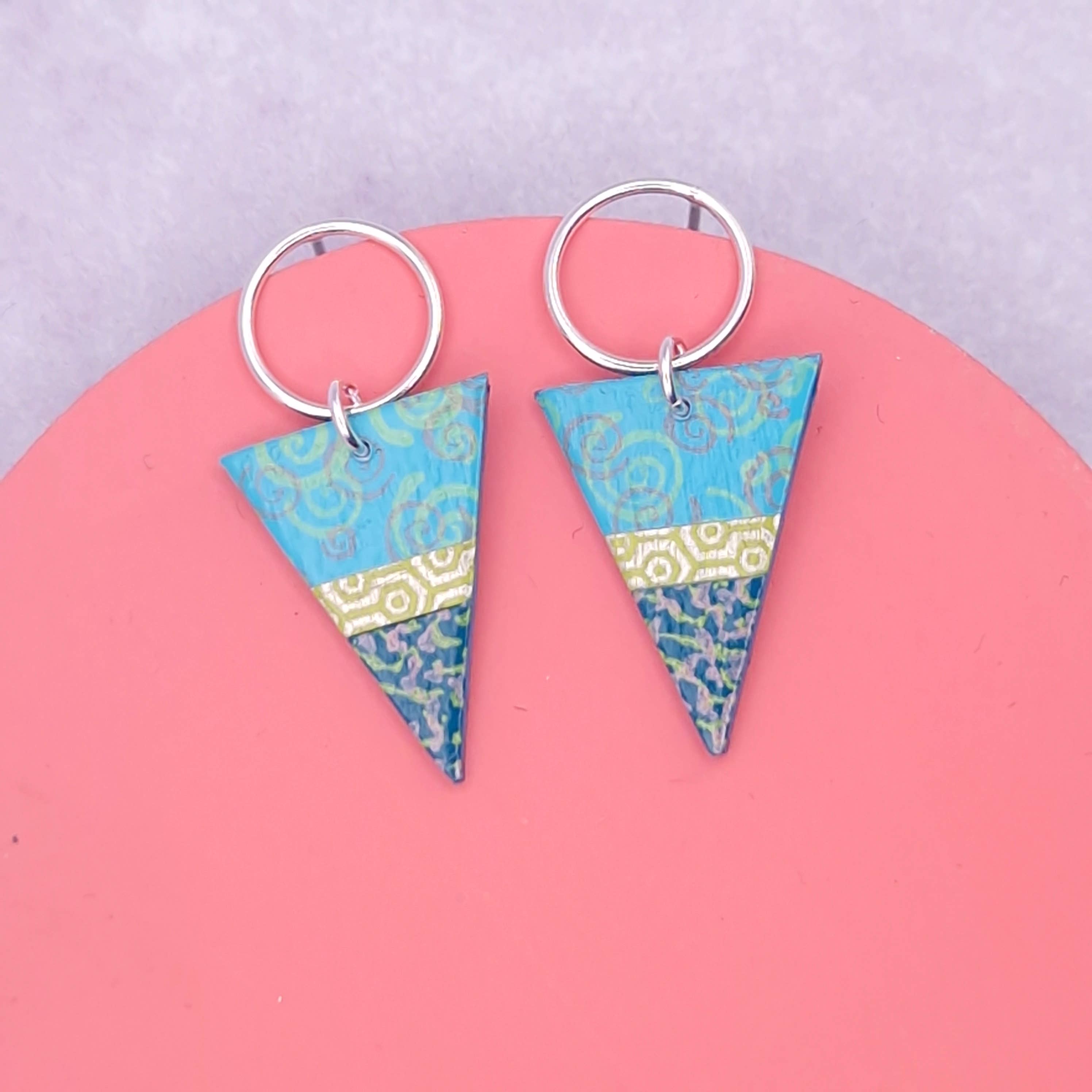 Circle & Dash design & create colourful, unique jewellery from hand painted, printed and gilded papers. Starting in 1998, Circle & Dash has gradually built up in the UK & Ireland and now proudly stock our range in over 70 locations. Our limited-edition papers have all been exquisitely designed and decorated by hand in our UK studio located in Surrey. While the process of creating our products have developed over the years, the same ethos of using high quality components creatively has remained. Our products are durable and light weight making them very comfortable to wear, whatever the occasion. Acrylic paints are employed using a variety of printing, layering and gilding techniques which have been developed by us over the years. Sections of our hand-painted papers are used to compose the different designs, making each piece slightly different from the next. We finish the jewellery with a resistant lacquer or resin to ensure that the surface is well protected and aesthetically pleasing.