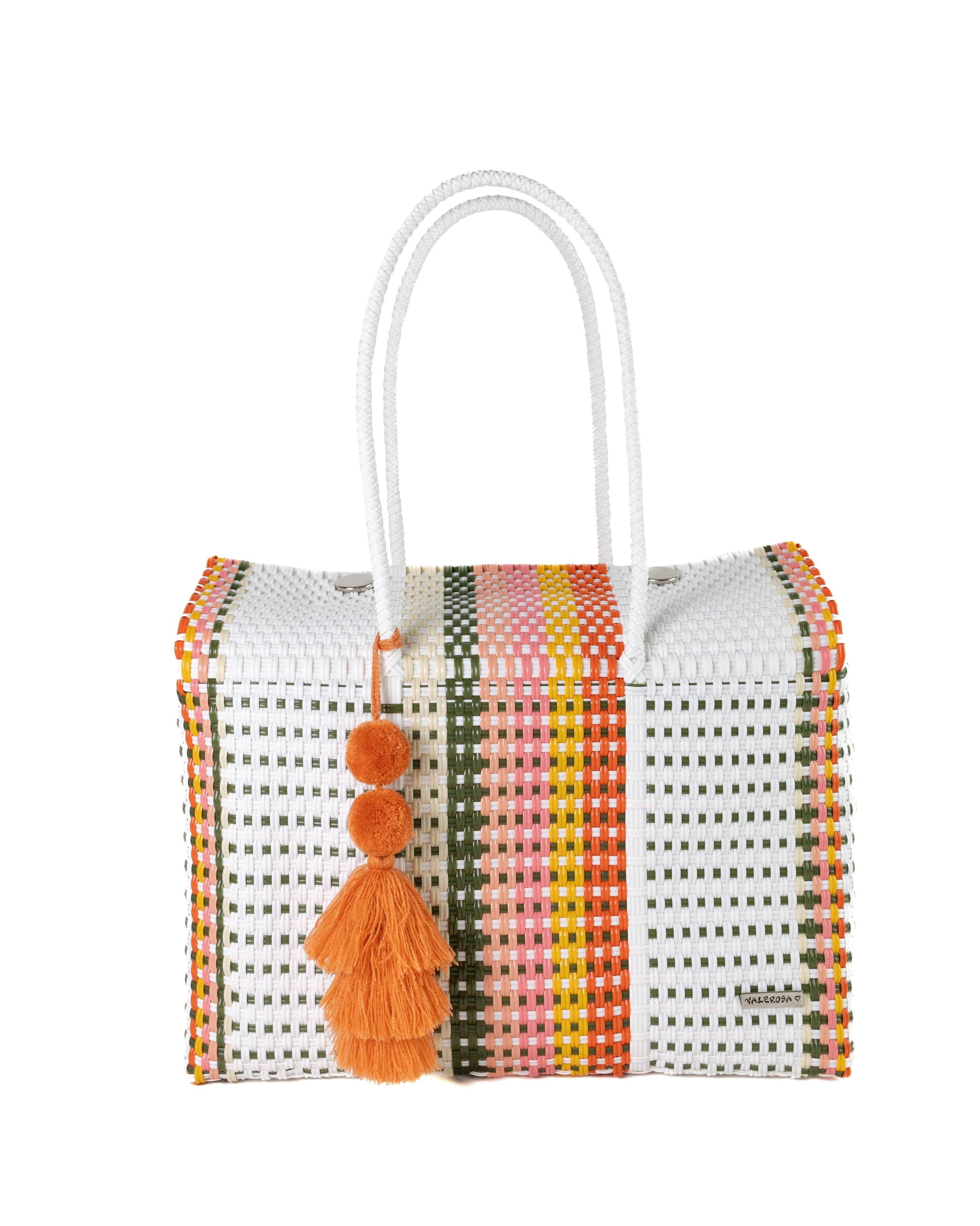 Valerosa- Bags for making bold moves Valerosa is female-owned, small business specializing in beautiful yet highly practical handmade Mexican bags. Our bags are a unique blend of traditional craftsmanship, durability, and vibrant aesthetics, making them a sought-after accessory locally and around the globe. At Valerosa we work directly with the Mexican artisan groups we support, and we are committed to paying these artisans living wages. We can’t wait to see you (or your customers) venture boldly into new opportunities. At Valerosa, we want to cheer you on and to provide a beautiful, lightweight, durable bag for every move you’re about to make. Our bright, bold totes are designed locally in North Carolina and handcrafted in Jalisco, MX. Each reusable, washable tote takes 6-8 hours to complete. We offer custom design services for boutique owners.