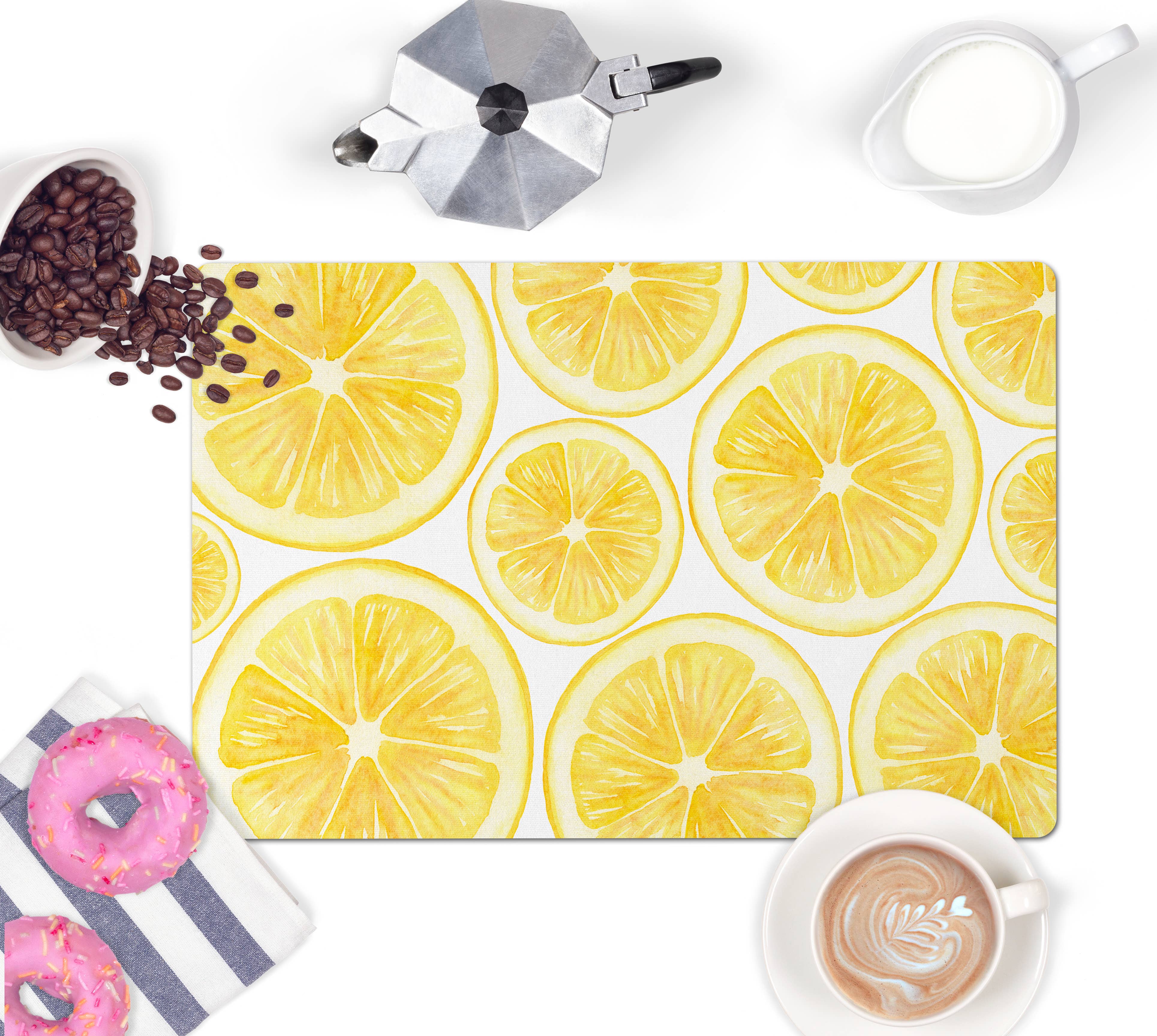 Aliza Darik chic and modern surface-protecting mats: pet food placemats, tabletop/kitchen counter mats and desk mats complement stylish home decor with colorful and eye-catching printed patterns. We combine our love of tropical and coastal styles with our passion for great design. Aliza Darik was founded in 1999 by sisters Alyssa & Darice. Their debut fashion collection of silk kimono-style blouses and handmade coordinating fabric flower accessories caught the eyes of buyers, stylists and editors across the country. In 2000, when HBO's hit series Sex and the City began featuring over-sized flower accessories on the trend-setting character Carrie Bradshaw, played by Sarah Jessica Parker, The New York Times featured an Aliza Darik flower choker in their Sunday Styles section. Aliza Darik accessories took off! They were scooped up by high end department stores such as Barneys New York & Japan, Henri Bendel, and luxury fashion boutiques around the world. Aliza Darik's fashion accessories were featured in top magazine editorial spreads - styled, photographed, and edited by some of the biggest names in fashion. After taking a pause to raise families and explore other business ventures, Alyssa & Darice relaunched Aliza Darik in 2021 to bring back the pretty and feminine spirit of the brand to the home market offering decorative home accessories. We are pleased to offer our unique hand printed surface-protecting mats to pet and home decor retail stores.