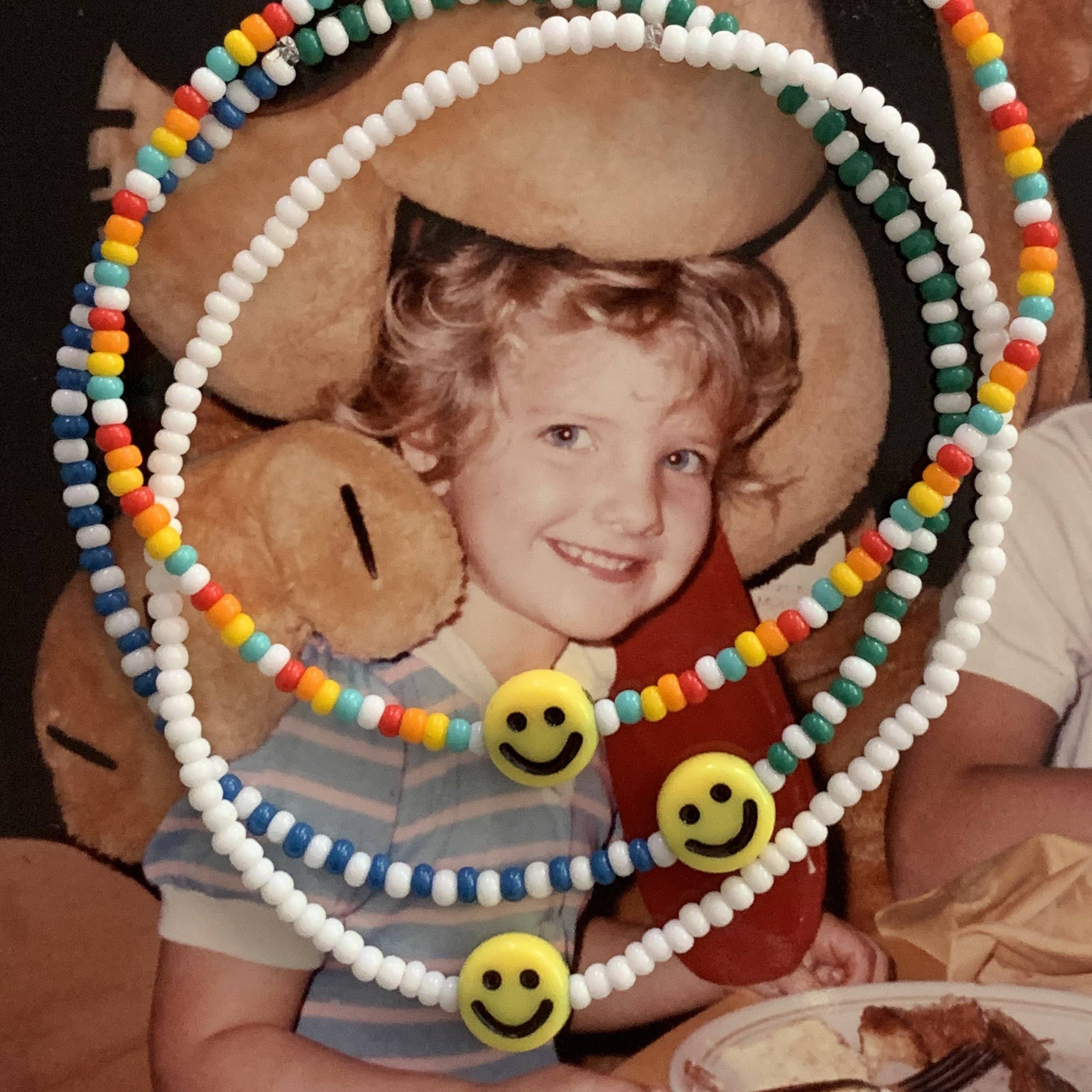 i love jewelry. i've been piling it on since i was a kid. you'll always find me wearing lots of earrings, layers of necklaces, tons of rings, stacks of bracelets and piles of anklets. always. last summer, when my dad was in the hospital, i made myself, my sisters and my mom a fun, colorful bracelet with my dad's initials on it to help us stay positive. when he was in hospice before passing, i brought my tote bag full of beads to visit him everyday and would make more bracelets for us. we piled them on and they made us happy during a tough time. this time in my life inspired me to do what i've always wanted to do- start my own jewelry business. so, here we are thanks to my dad. my jewelry is meant for anyone and everyone and to inspire happiness.