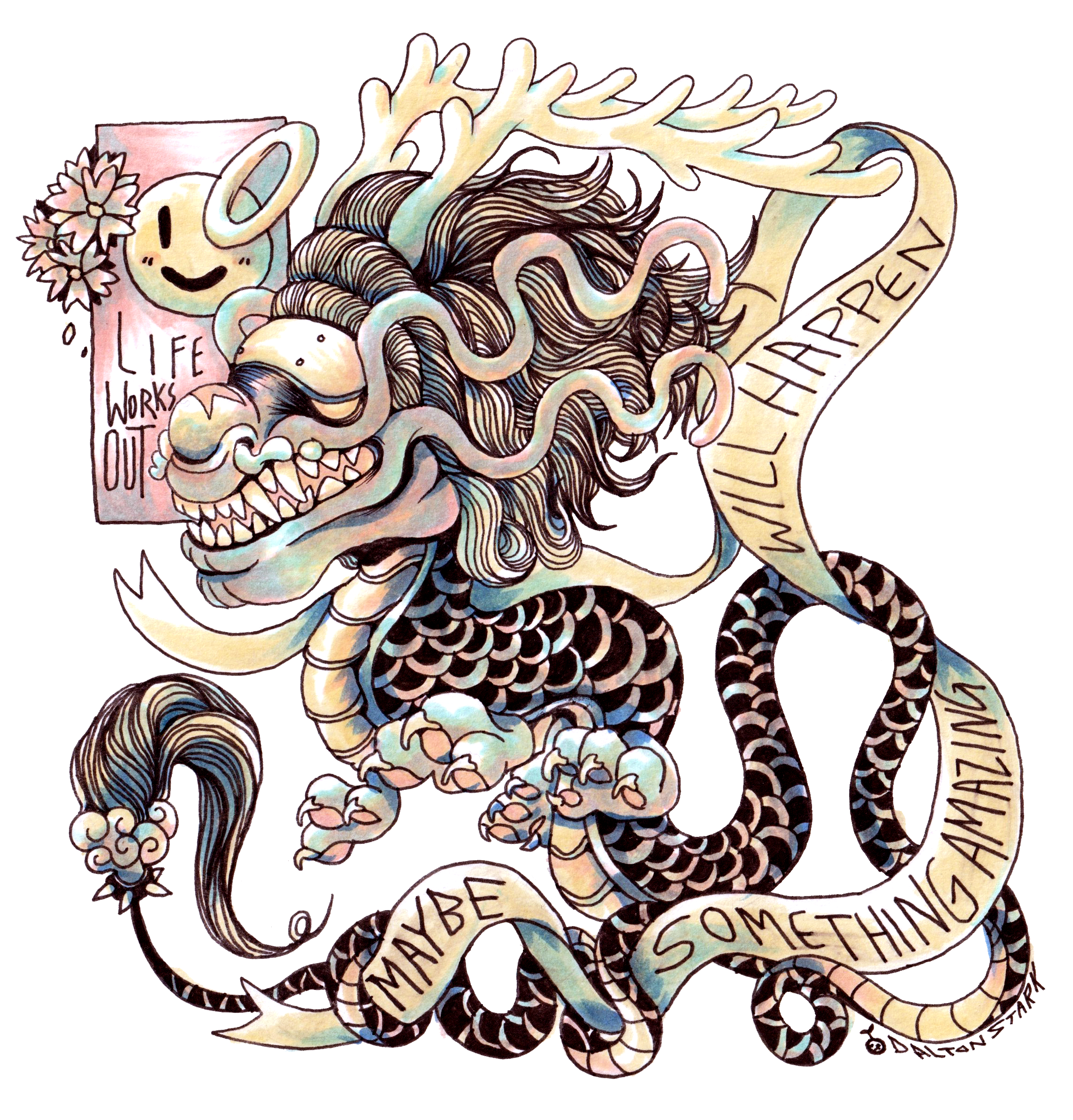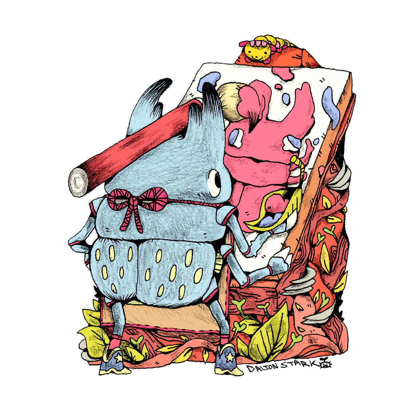 Dalton is a Texas based doodler who loves dinosaurs, dragons and alliteration. Inspired by both the imaginary creatures and characters of worlds like Pokemon, and all the amazing forms and fauna of this world, from the whimsical to the existential. He can be found walking barefoot, sketchbook in hand, drawing everyday, and sharing what happens with the world.
