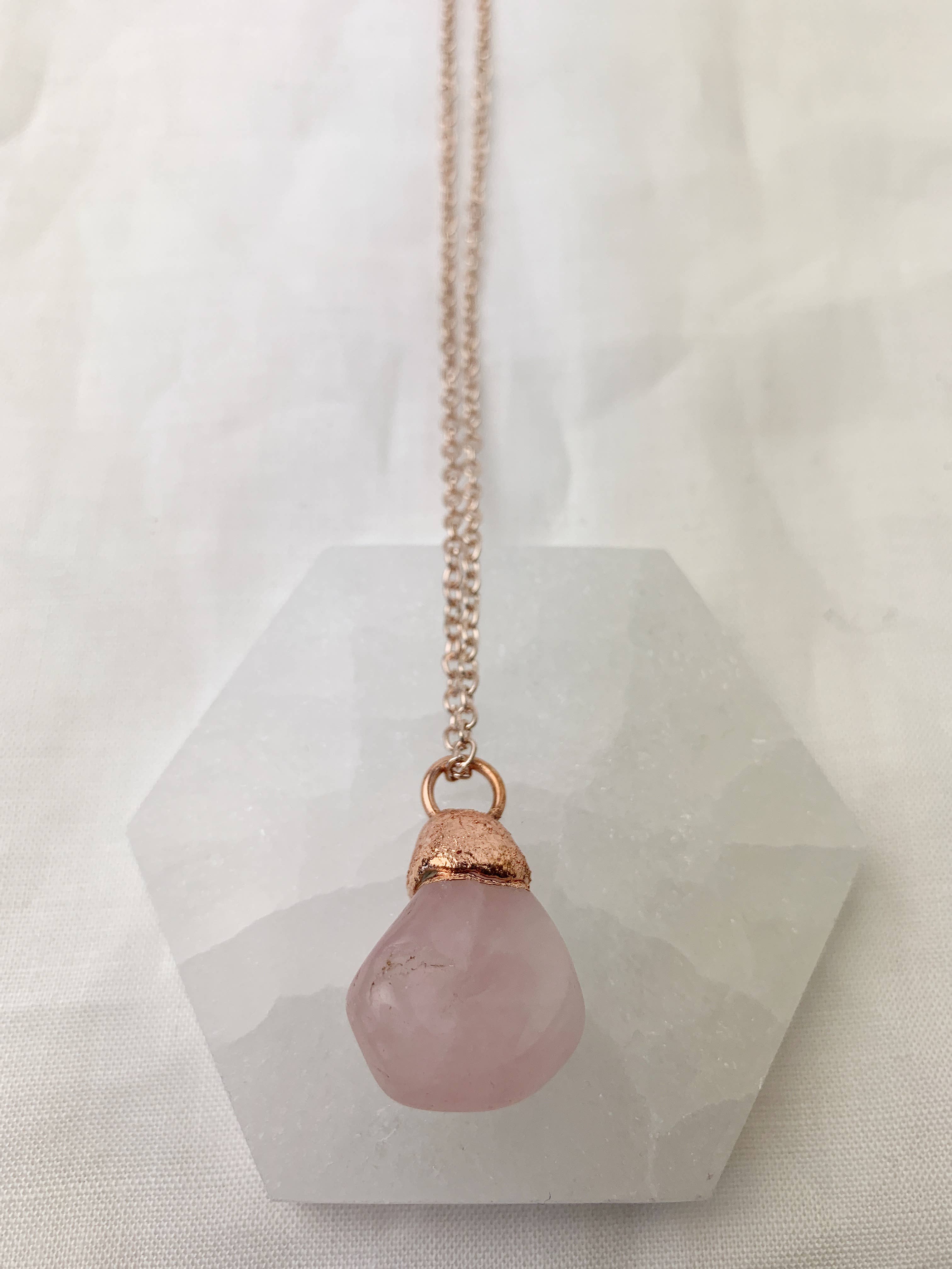 Lyon & Feather are a UK based jewellery company founded in 2013. After working with clients in the music and celebrity industry for 14 years Tash realised there was a hole in the fashion market for beautifully crafted pieces which were effortlessly timeless and after 12 months of research and stone buying overseas, Lyon & Feather was born. We sell and hand make minimalistic jewellery in electroformed copper and semi precious stones and everything is lovingly handmade in Sheffield. The process of electroforming is an alchemy of acid and electricity which create incredibly unique one off pieces. We let the raw, ethically sourced stones do the designing of each piece, allowing it to be the main feature yet gently allowing the copper to caress the edges. The items are designed as timeless fashion pieces which you can wear time and time again, and will carry you from daytime through to evening. Simple yet versatile jewellery made to be worn for years.