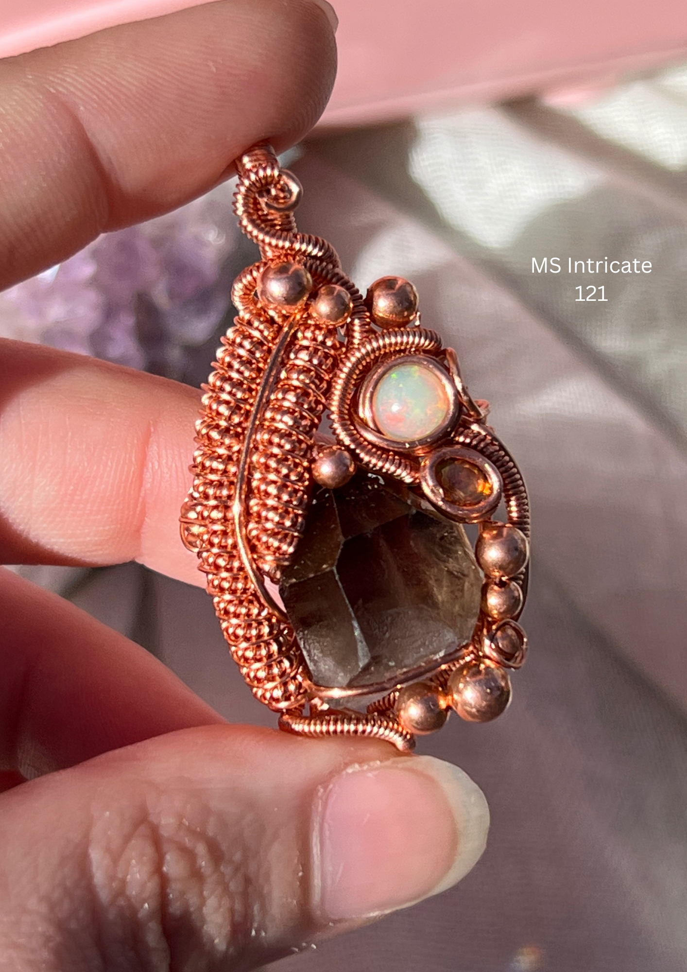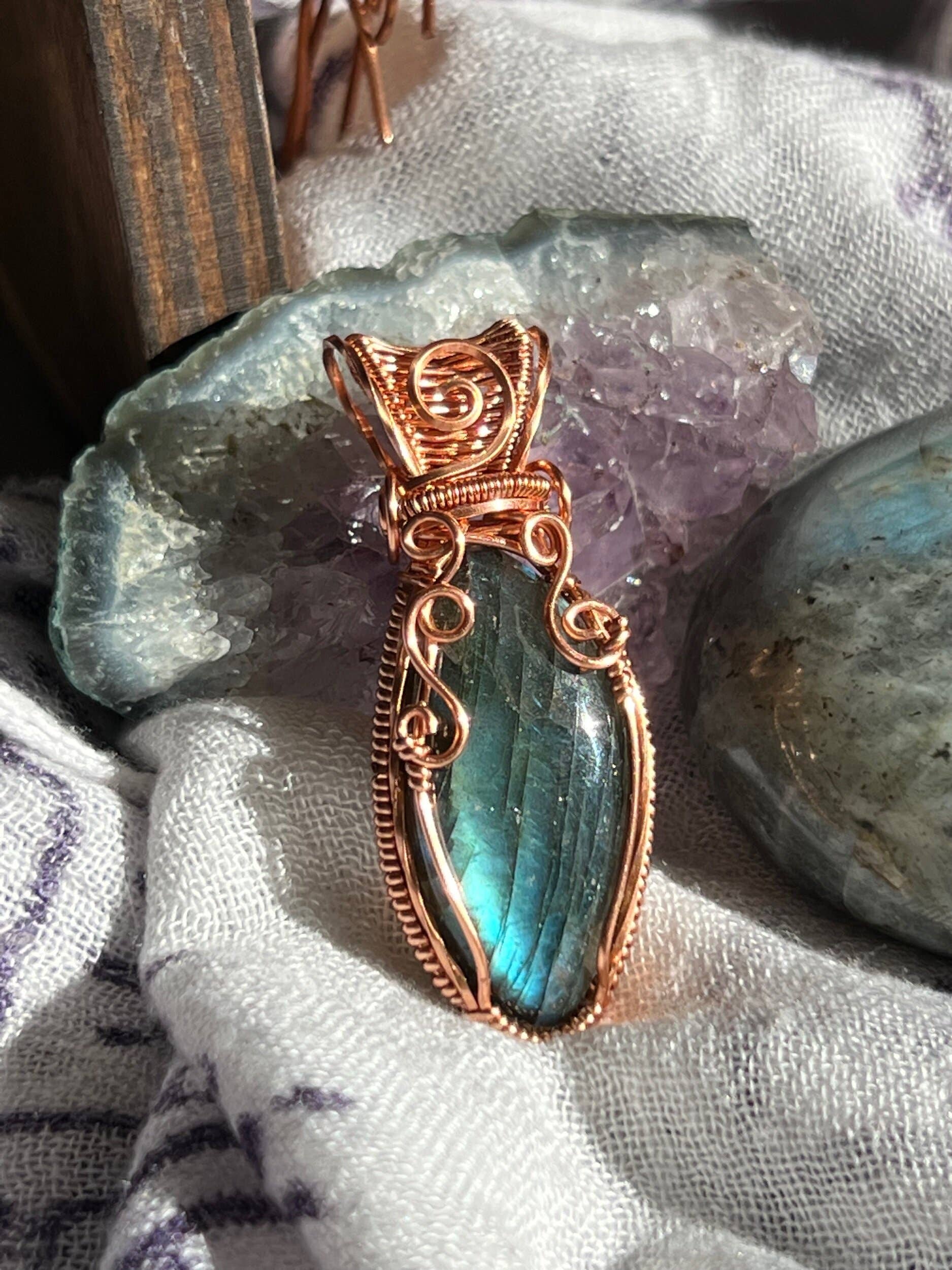 Lillian Sunday began bending metal around stones near the end of 2017. Once she decided to try, she learned her great-grandmother had been a wire artist for decades. It then became her great-grandmother’s guidebook of designs that helped jumpstart the beginning of her craft! Loving what she was doing, she opened up Sunday’s Jewels in mid-2019. Stones are like an alive canvas, so while creating she acknowledges the invisible influences of the stone energies to make a uniquely harmonious, love-filled Copper home for them to emanate within. At Sunday’s Jewels, we look forward to continuing our growth and, with help from the Earth and Cosmos, intend to bring love, guidance, encouragement & healing to the collective. All pieces are made with organic materials and are packaged in recyclable, reusable, and biodegradable packaging by reusing old boxes and/or working with eco-conscious packaging companies.