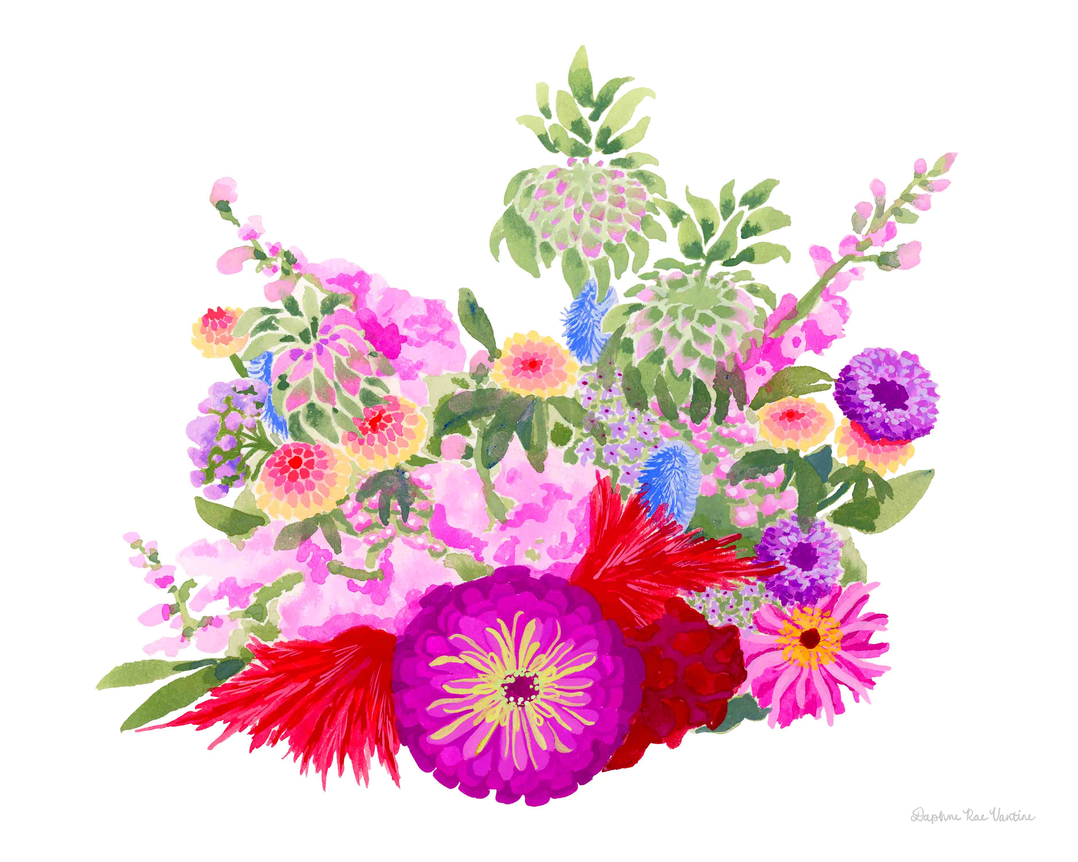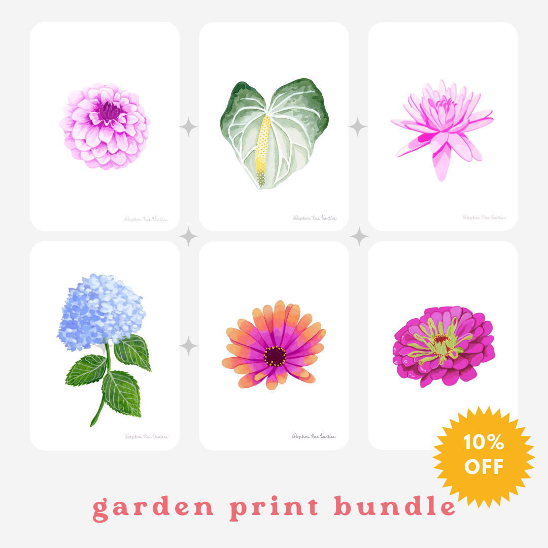 Daphne has been creating for as long as she can remember. Always “the art kid,” she spent her childhood drawing, painting, and experimenting with sewing, knitting, pottery, and more. She was even voted "Most Artistic" in her eighth-grade yearbook. In college, Daphne studied entrepreneurship at the University of Delaware while taking as many art electives as possible. After graduation, she worked in software sales for five years, keeping her creative spark alive by painting and exploring new crafts at home. Feeling a restlessness that led to insomnia and anxiety, Daphne left her corporate career to follow her true passion. Today, her art reflects that leap of faith, embracing bold color and joyful creativity. Daphne paints only from her own reference photos, ensuring each piece is uniquely hers. She scans her originals to create prints, occasionally outsourcing to a woman-owned printer in Waltham, MA. Her greeting cards are also produced locally, and she personally packages all prints and cards with care. Her work is available as original paintings, fine art prints, and greeting cards, and she also takes commissions to create custom pieces that bring her lively perspective to personal spaces.