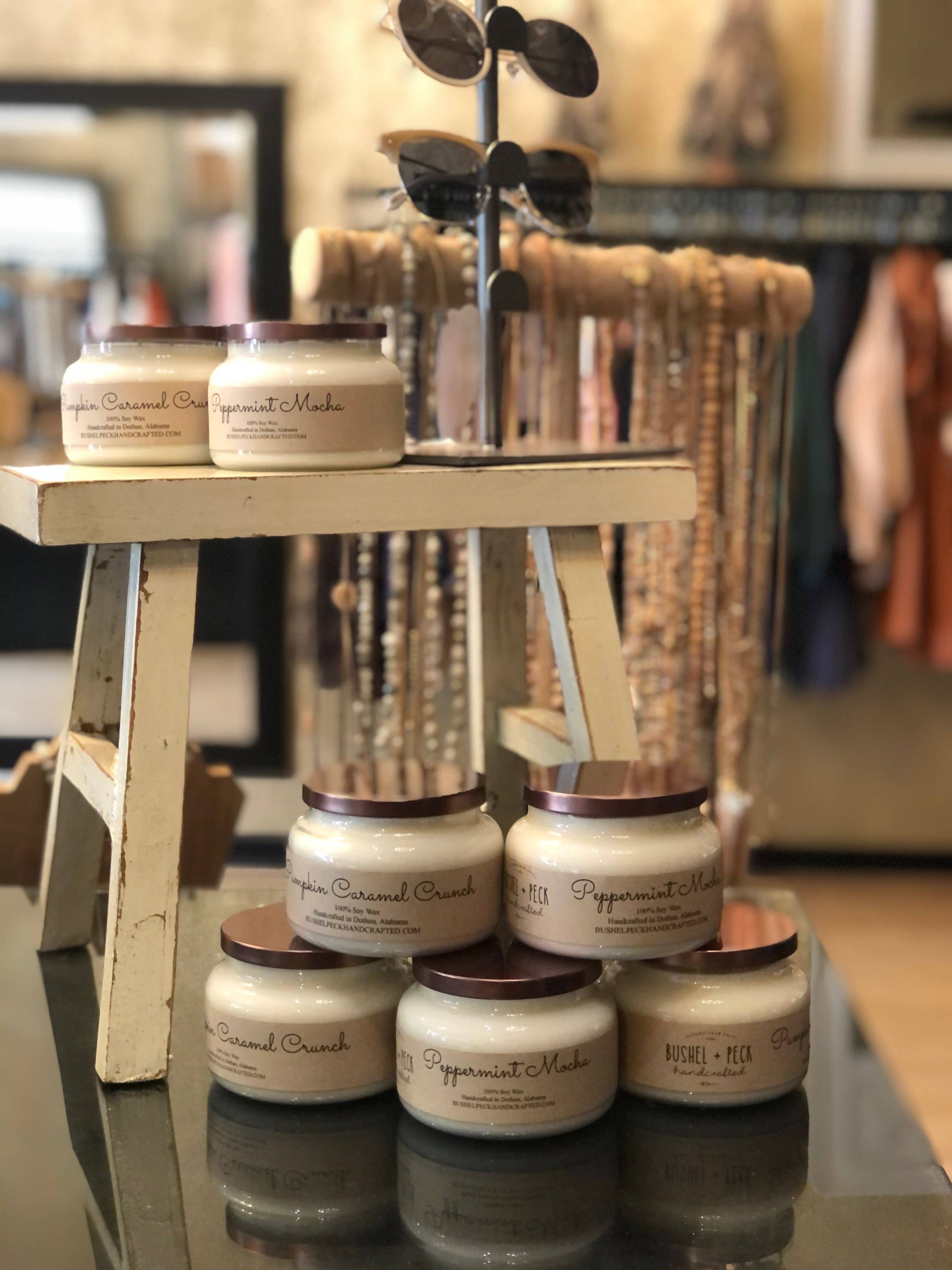 Bushel + Peck is a local business that started on April 15, 2019, owned and operated in Dothan, Alabama by Laura Moore. Laura has always had a passion for natural candles that leave your home smelling and feeling delicious. The name Bushel + Peck was chosen because Laura loved the meaning behind the 1950’s popular song, A Bushel and a Peck - “I love you a bushel and a peck, A bushel and a peck and a hug around the neck.” Laura wants you to feel like family, loved and hugged around the neck every time you use Bushel + Peck products. All of the products are meticulously handcrafted using only small, hand-poured batches. She prides herself in using the best quality materials. No harmful chemicals will enter your home. At Bushel + Peck we want you to love our company as much as we do, a Bushel and a Peck!