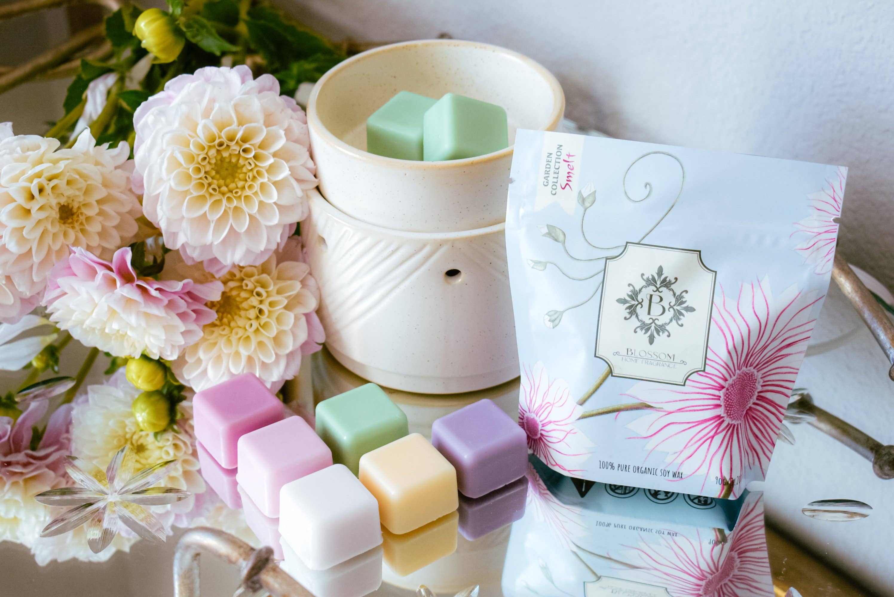 Welcome to the world of Blossom! We are a small business founded by artists, designers, and nature enthusiasts based in Californian. At Blossom, our desire is to provide the most fulfilling aromatic experiences, leading to pleasant moments and unforgettable memories. Blossom’s products are inspired by Northern California’s culture, where living in harmony with nature and being part of an ecologically sustainable community is part of everyday life. Our colorful wax melts, called smelts, reflect our colorful gardens with the most irresistible scents. They are handcrafted and organized into themed collections, creating a luxurious and revealing experience. Rich in aesthetic and aromas, our smelts are personalized in practical packages, ready to gift and delight. Choose from a wide selection of sublime scents to create a warm and inviting atmosphere in any environment.