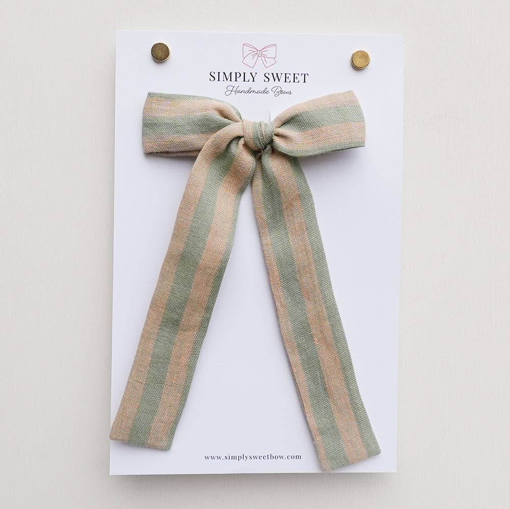 At Simply Sweet Bow, our goal is to design classic bows that will stand the test of time - bows that both little girls and moms alike will love. Owned and operated by two sisters with little girls of our own, we ensure that each bow meets our own high standards for quality and wear before putting it in our shop. Much time is spent behind the scenes testing various fabrics and styles. Each bow is lovingly handmade, and shipped from our little home shops in Texas and Oklahoma.