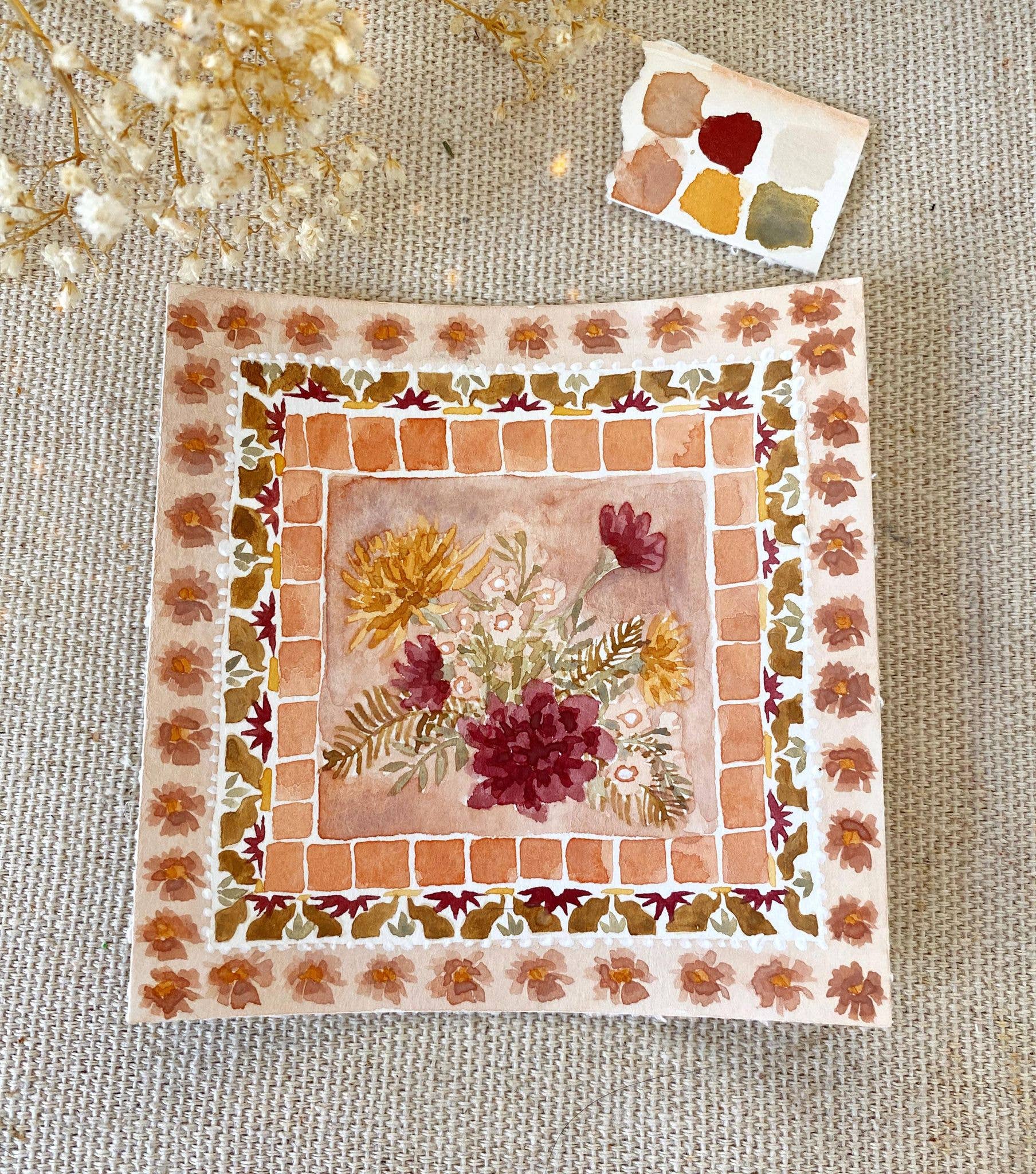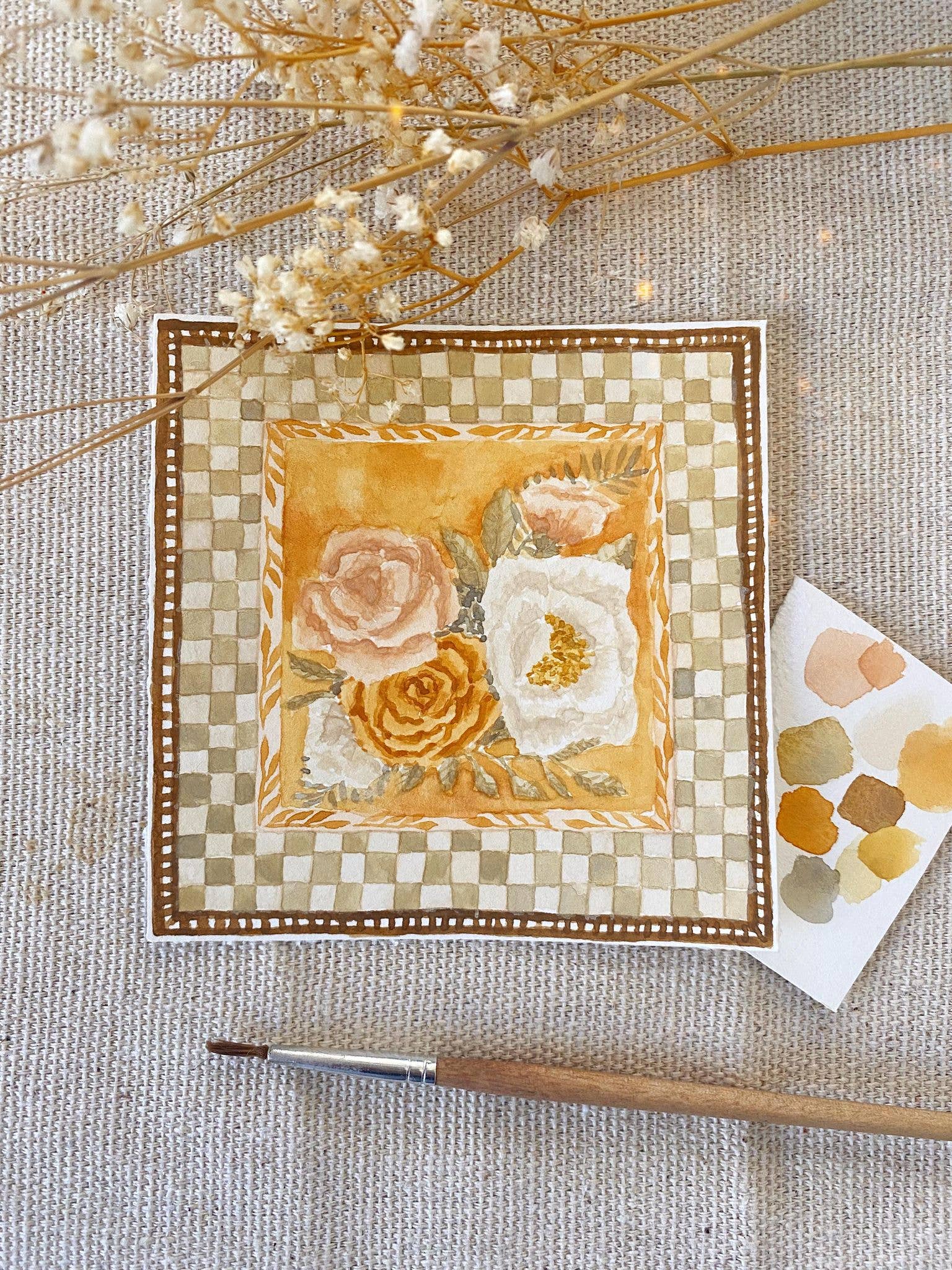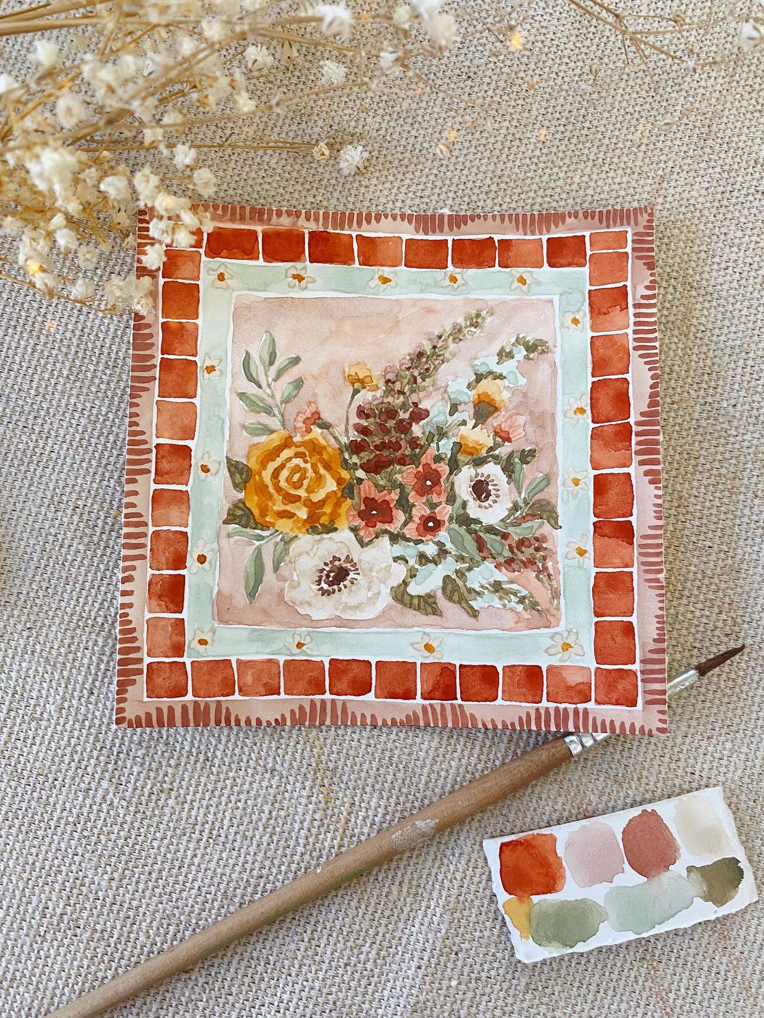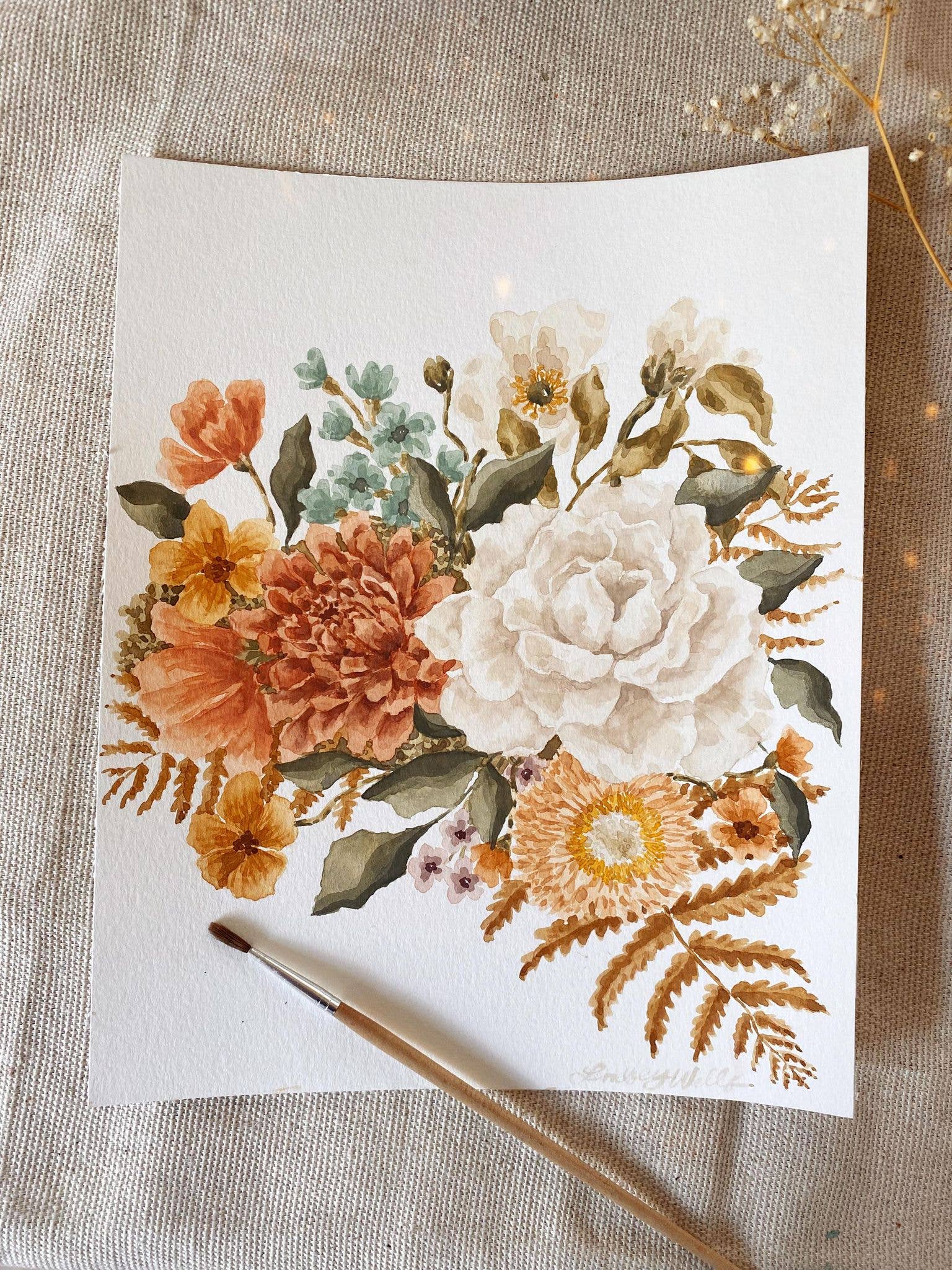 I'm Lindsey Wells, an artist and small business owner based in Southern California. My work is inspired by the simultaneous resilience and fragility of life, found especially in plants and flowers. They are both soft and strong, simple and meaningful, delicate and yet able to survive in some of the harshest conditions. I believe there is comfort in the duality of that: you can be both. This concept is what led me to start painting again in 2019, after a long journey with mental illness. I developed an art process that brought a much-needed sense of peace and mindfulness to my life: I learned to create my own watercolor paint from natural earth pigments, how to run an eco-friendly studio that is kind to the earth, I developed fulfilling creative rituals and painting techniques, and I found connection with others through sharing my work with like-minded collectors. I'm so grateful to be here and to be able to share my work with the world - I hope it brings you a moment of peace in whatever struggles your life throws your way.