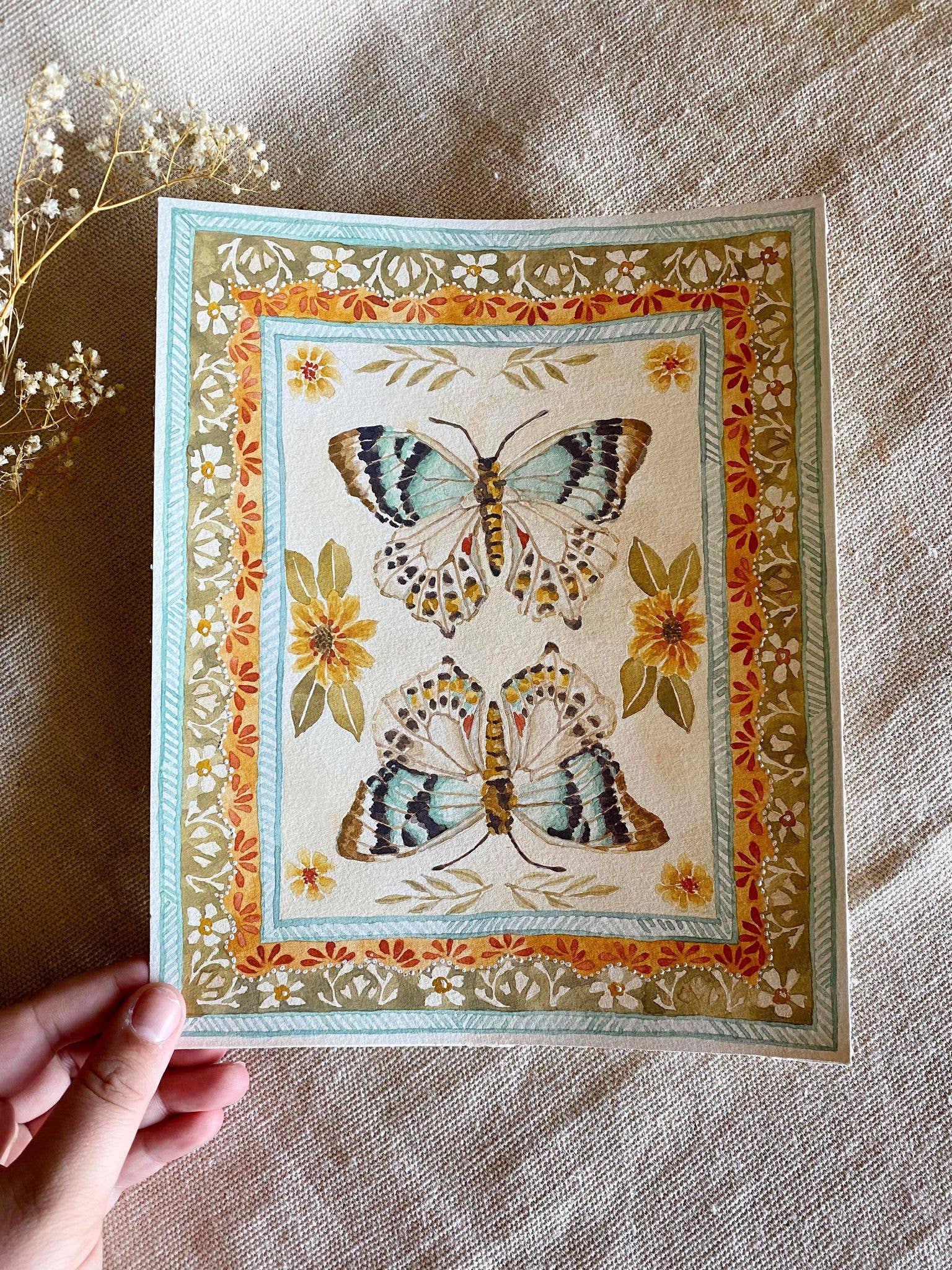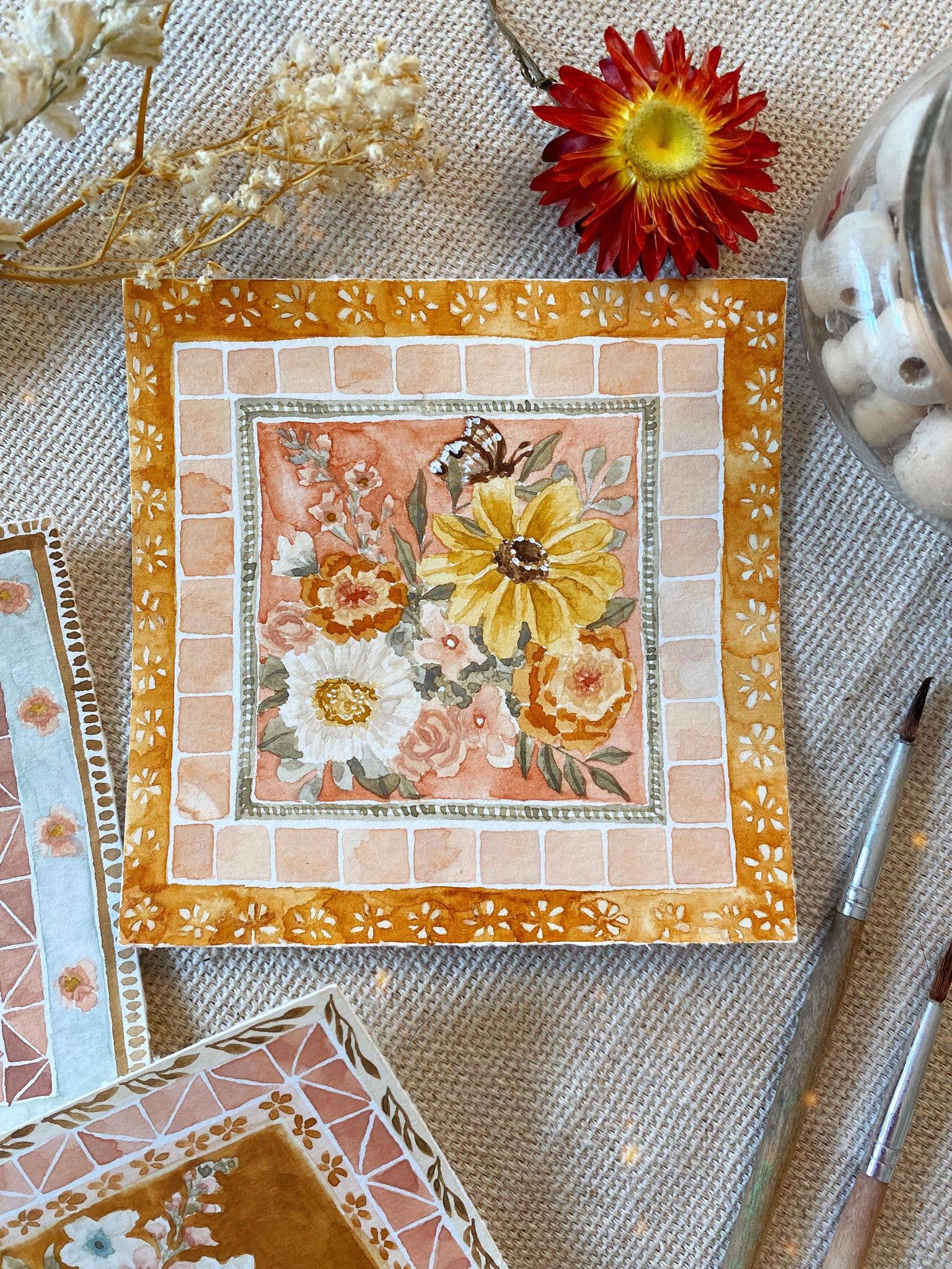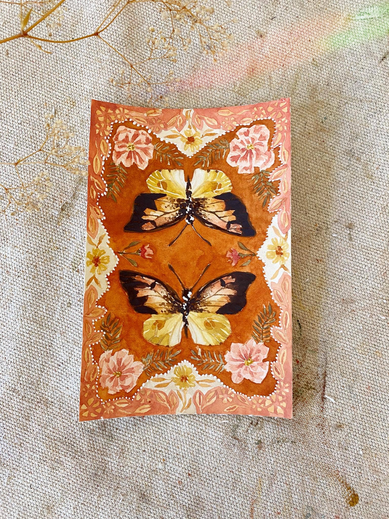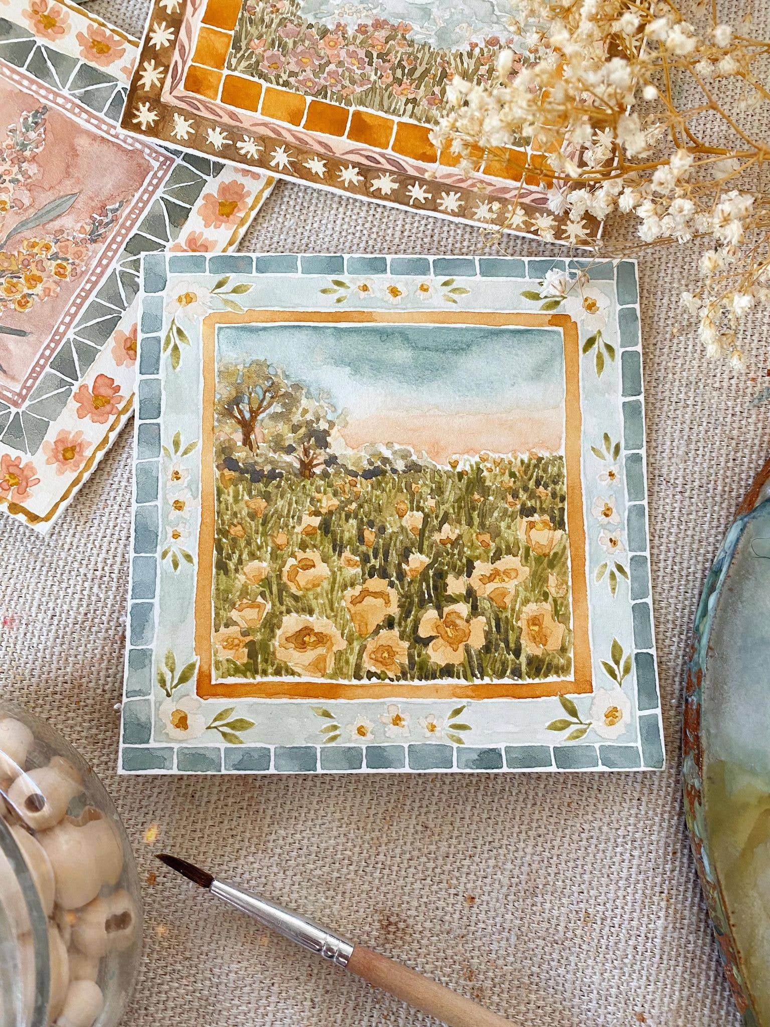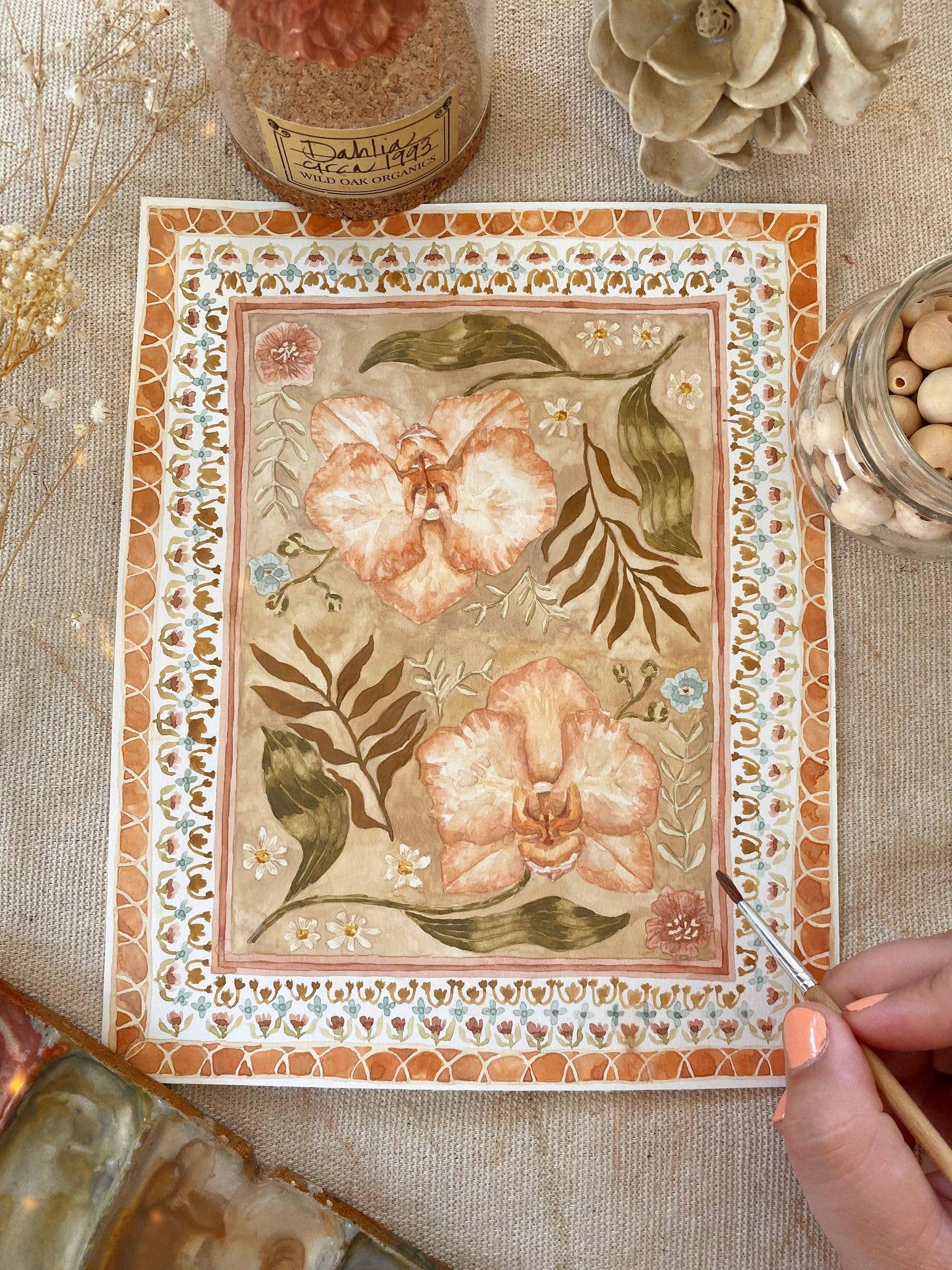 I'm Lindsey Wells, an artist and small business owner based in Southern California. My work is inspired by the simultaneous resilience and fragility of life, found especially in plants and flowers. They are both soft and strong, simple and meaningful, delicate and yet able to survive in some of the harshest conditions. I believe there is comfort in the duality of that: you can be both. This concept is what led me to start painting again in 2019, after a long journey with mental illness. I developed an art process that brought a much-needed sense of peace and mindfulness to my life: I learned to create my own watercolor paint from natural earth pigments, how to run an eco-friendly studio that is kind to the earth, I developed fulfilling creative rituals and painting techniques, and I found connection with others through sharing my work with like-minded collectors. I'm so grateful to be here and to be able to share my work with the world - I hope it brings you a moment of peace in whatever struggles your life throws your way.