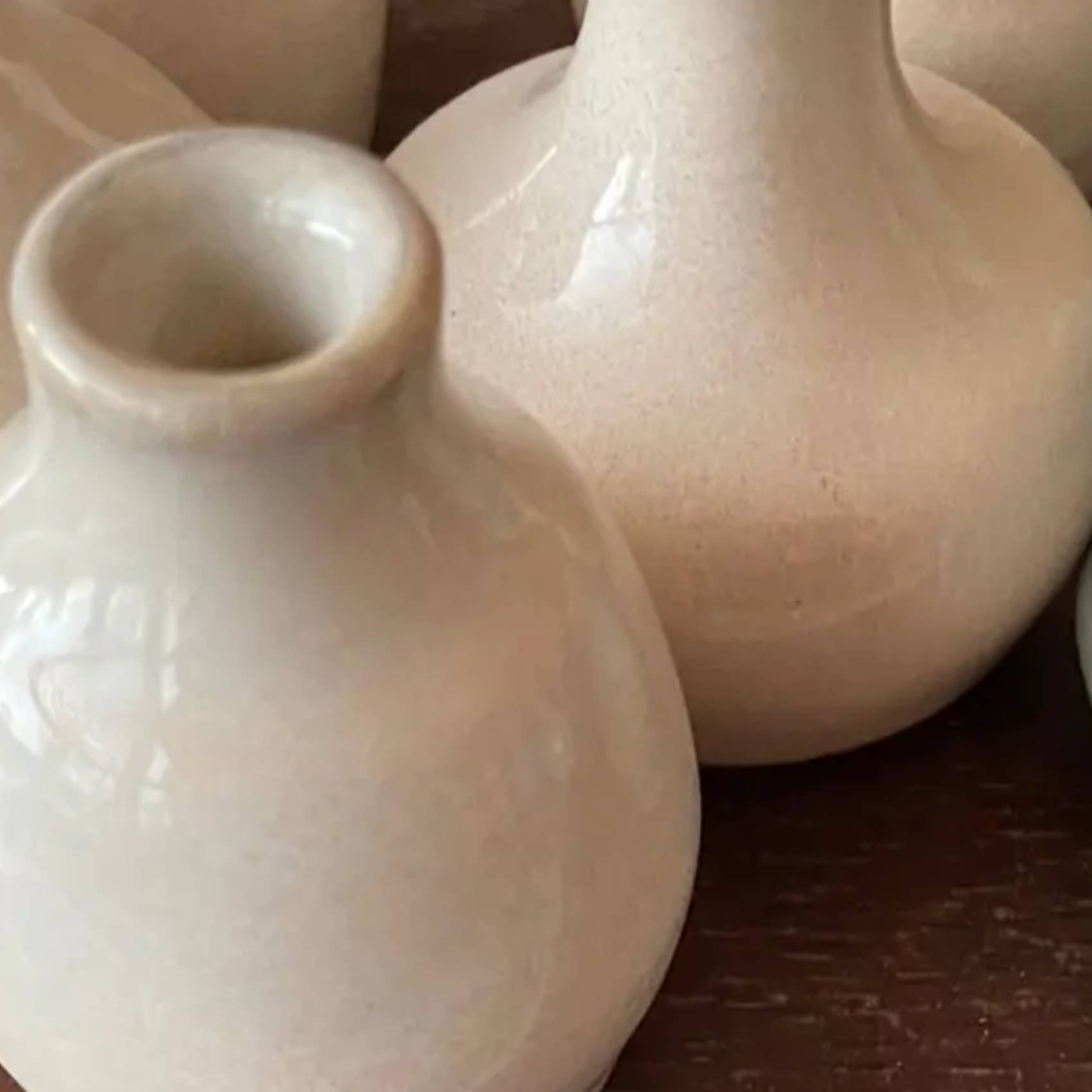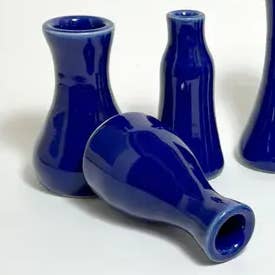 Cedarleaf Ceramics (formerly Zen Pots) is a small production pottery studio based in Asheville, NC. We focus on creating small wheel-thrown ceramic products including mini bottles and vases, jugs, jars, mini plates & bowls, spice dishes, seashells. Our main product is a line of 12 different shaped mini bottles in 15+ glaze colors and color combos. Our cute little teeny tiny bottles are both beautiful and artsy. Ideal for your boho decor, zen gardens, mountain kitchens, or cabin in the woods themes. These bottles can be used for bud vases, cut flowers, dry flowers, incense, oils, candles. They are also lovely as table decor and party favors gifts. They can be used for bathroom products, kitchen items and more. These bottles sell themselves as people love the tiny individually unique ceramics made with quality. They're also perfect as wedding or shower gifts or for plants clipping and home decor. As a part of a zen meditation practice we produce large quantities of bottles (1000s) every month. In our zen throwing sessions each mini bottle is wheel-thrown, hand-finished, then bisqued and glazed in our hand-mixed custom in-house glaze recipes. When you place an order they are selected and packaged safely in recycled newspaper and bubble wrap - all clay scraps are recycled & reused - we use locally produced clay as available (RIP Highwater). These all make our bottles very high in positive chi energy as well as having a balanced low impact in their creation.