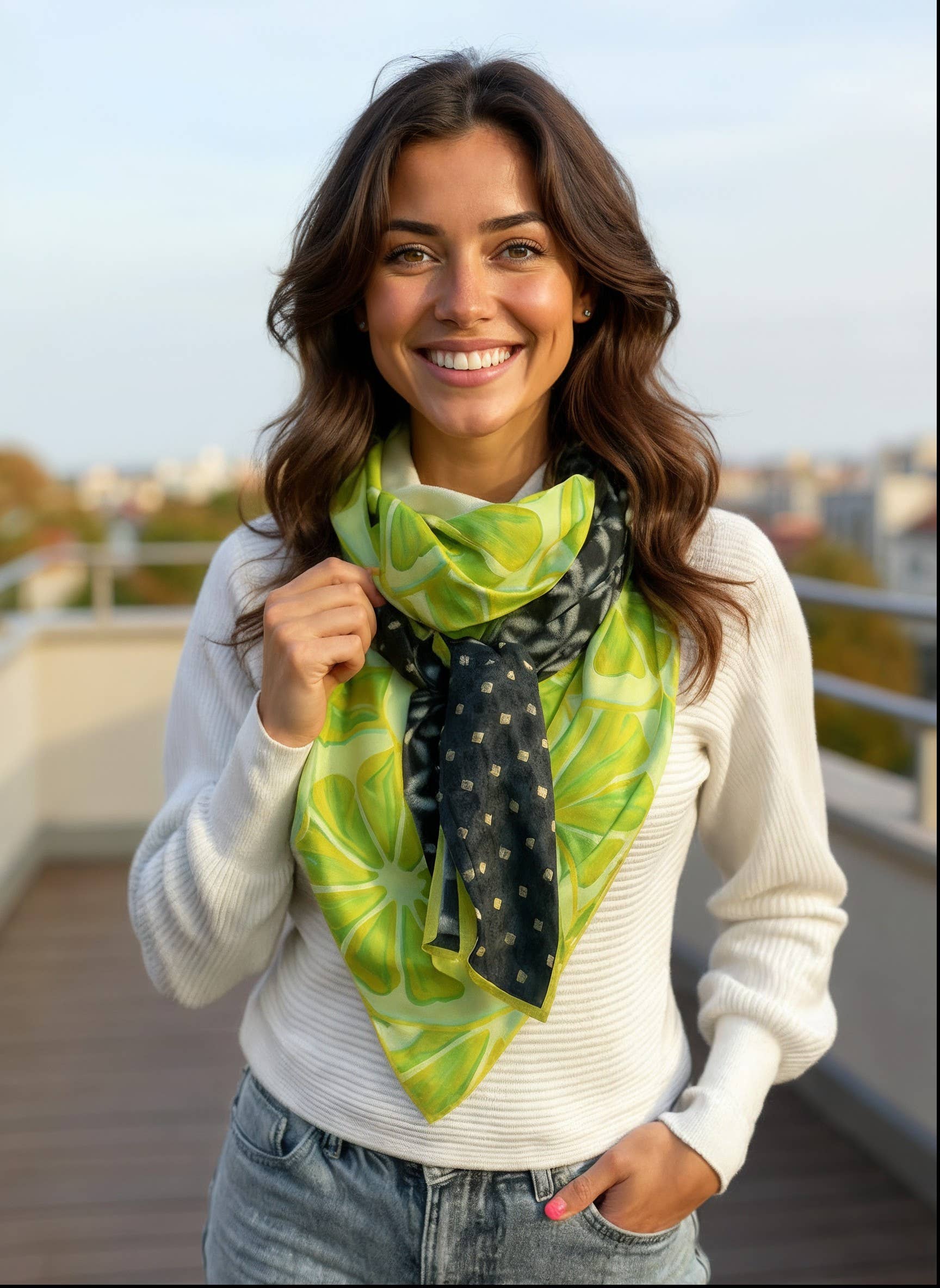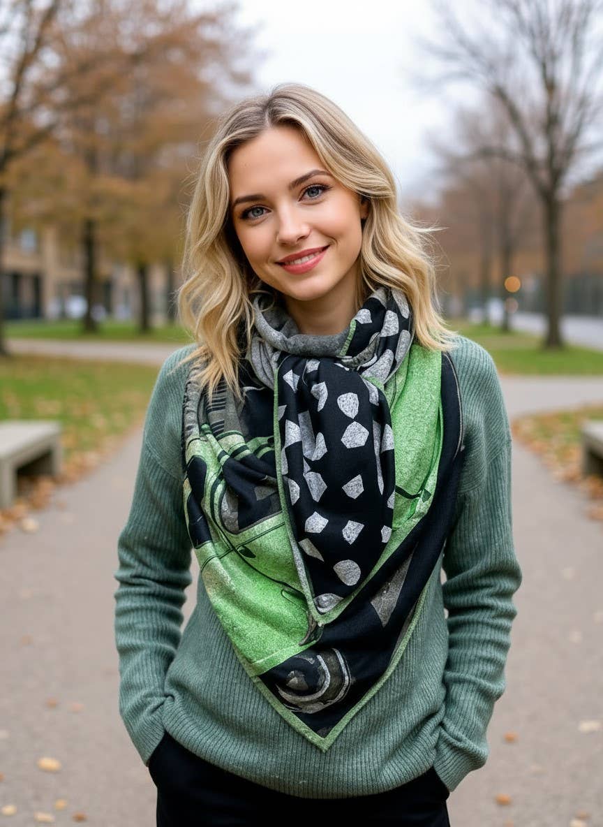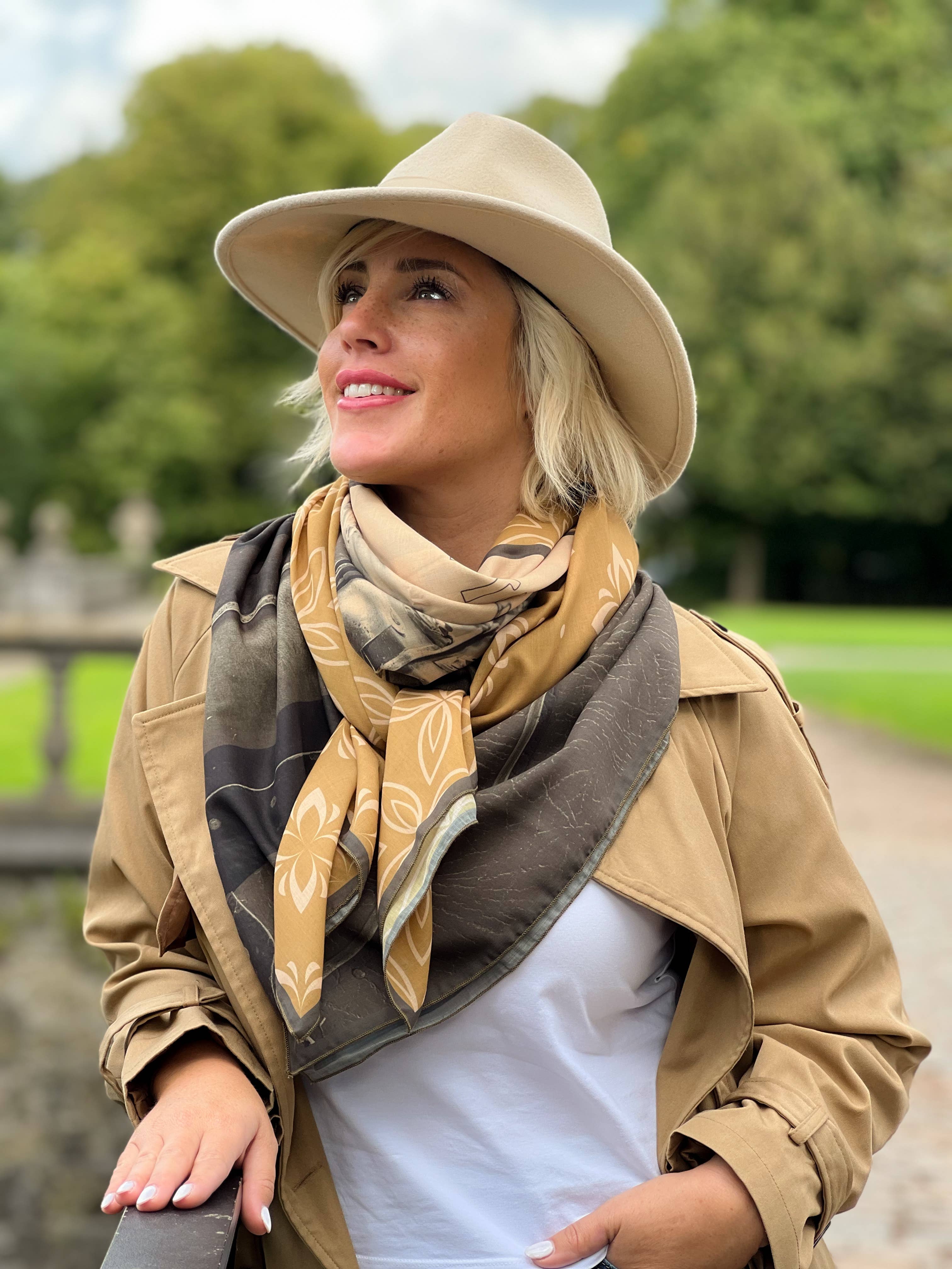 A 100% Belgian success story, with & for local shops: in a few years, we have gone from 200 to more than 4,000 copies created each year, largely thanks to the stores that trust us. We are convinced that our future depends on local shops. There is no substitute for human contact. Our mission from the beginning has been to sublimate our customers while participating in local commerce. No creation will be sold cheaper online than in store, that's our commitment! Our best sellers are square scarves and scarves, 140 x 140cm (ideal for stylish bows, without the feeling of wearing an overly imposing scarf). Exclusive design: we don't assemble existing fabric, we create the fabric... so you won't find anywhere else. Printed in Belgium. Handcrafted & premium quality finishes in Belgium. Composition: for photo quality printing, we print on 100% polyester fabric with a viscose touch for scarves, & a softer and warmer touch for scarves. The viscose effect is very pleasant, with the advantage of better resistance and machine washing+drying. Ecological and environmentally friendly printing process: inks based on water and chillies of mineral origin. AZO Free No POA animal products. REACH compliant. Contact us: we answer quickly & personally! Measured customer satisfaction: 99.7%