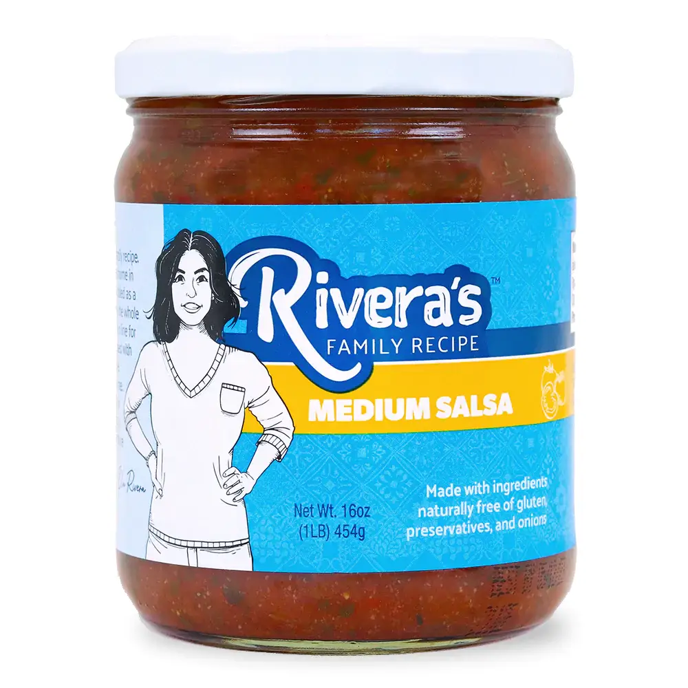 Salsa lovers know it is difficult to find a jarred salsa that doesn’t have unnecessary ingredients or taste like it came from a factory. Our centuries-old family recipe is pure and simple, curated by generations of family in Monterrey, Mexico. It’s the only salsa good enough for our family table. So, stop settling for disappointing salsa. Now, you can have Rivera’s Family Recipe Salsa at your table, with simple, natural ingredients — like tomato, jalapeño and serrano peppers, garlic, cilantro, and red pepper. Rivera’s red salsas are made without onions and are traditionally prepared and jarred like we made it fresh in your kitchen. Our salsa is minced, not chunky. There are no added flavors, water, fillers or preservatives, and no added sugar or gluten. Rivera’s Salsa is a classic, no-frill, flavorful recipe that will exceed your expectation of what a great salsa should be. The Rivera family puts our salsa on everything from gourmet meals to everyday cooking. And of course, it’s purely delicious all by itself with a bowl of tortilla chips or spread on a crunchy tostada. Get Rivera’s Medium Salsa for your table today and come join the family!