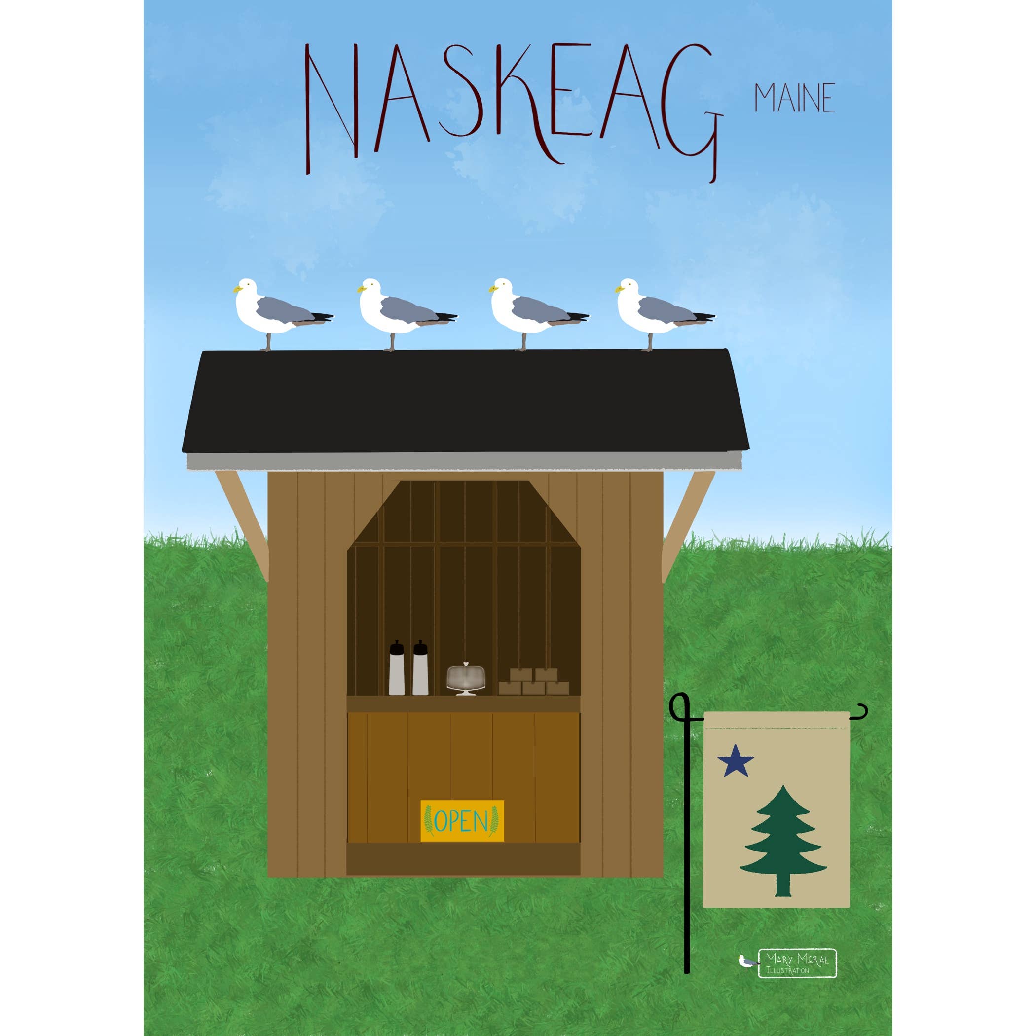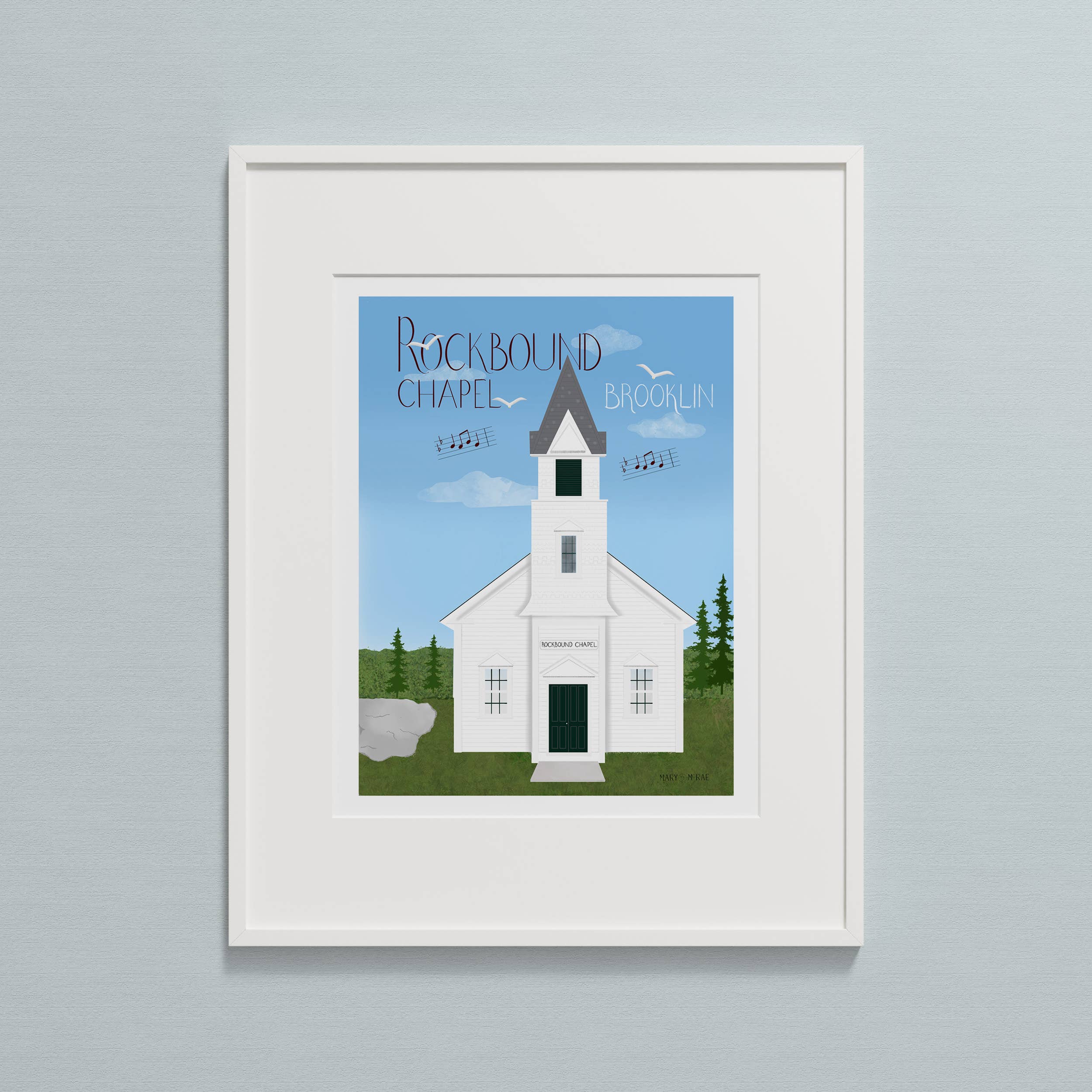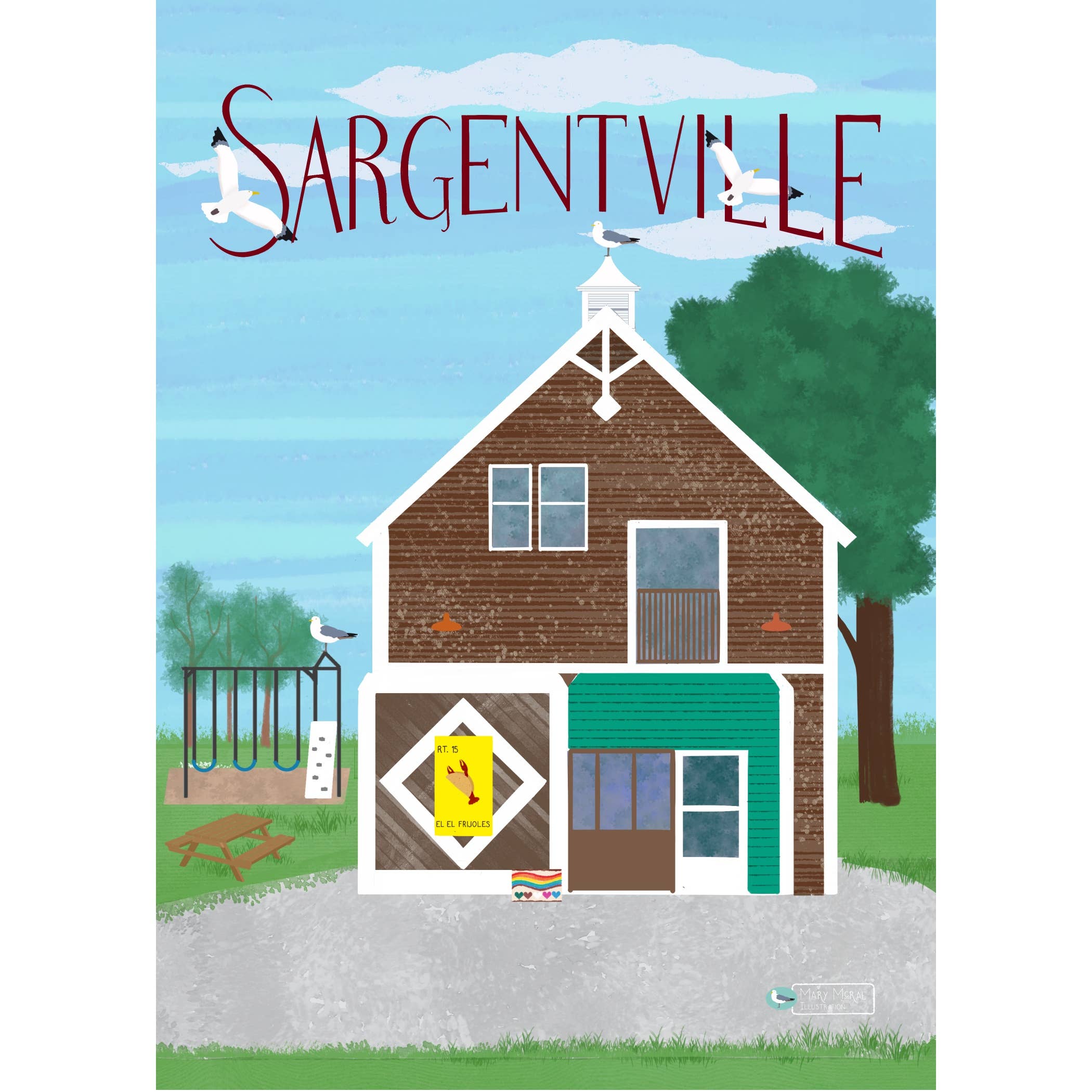 Mary McRae's illustrations celebrate life - past and present - along the coast and and rural communities. My illustrations capture the essence of quintessential coastal communities and life on land and sea. What began as a single travel poster has evolved into a complete line of cards and art prints. I have been drawn to vernacular architecture for as long as I can remember – seeking out the old white clapboard churches, fraternal halls, schoolhouses, barns, covered bridges, farmhouses and capes – mostly showing signs of their age but still holding on and playing a vital role within the community. Living on the coast expands that horizon towards the sea - to lighthouses and lobster boats, boat yards and working docks, and the local shops that play a vital role in coastal villages and towns. Each illustration is hand-drawn and painted, and reproduced as high quality giclee art prints and greeting cards.