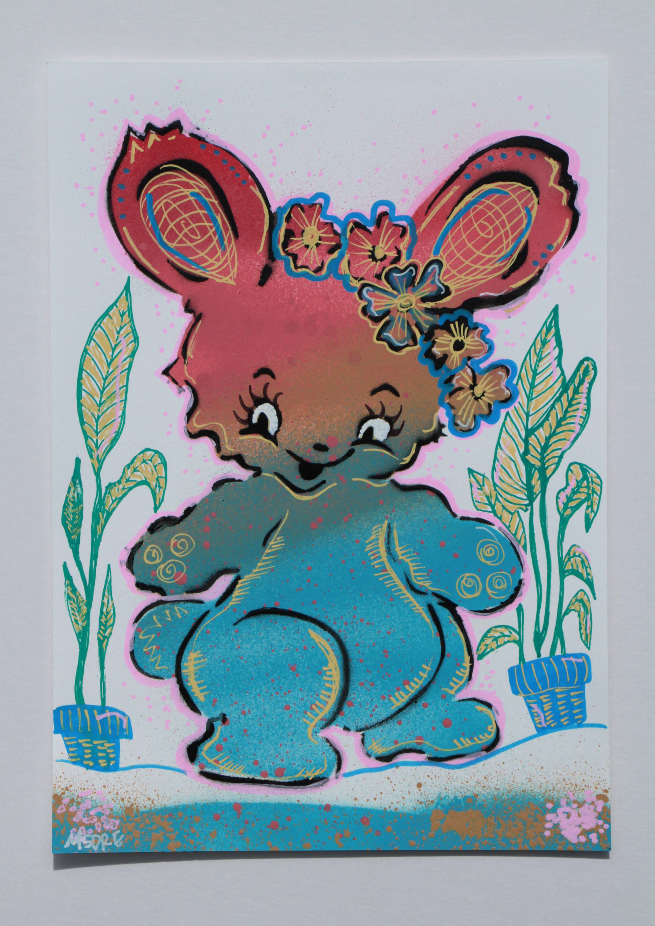 MsDre is a Brighton-based artist and illustrator. Her work reflects her great loves of the past, and is inspired by Greek myths, the 1920s, architecture, mid-century design and kitsch, pin-up girls, and all manner of vintage wonders. Coming from a cultural diverse background, with Jamaican, Indian, African and English heritage, she naturally includes these visual influences in her works, whether this is the hummingbirds from home village in Jamaica, or the graffiti boys she hung out with as a teenager in North London. Her originals use a mix of different media: often using stencils and print as a starting point, augmented with pen and ink, acrylic paints and markers, collage, and lashings of spray paint. She turns her original illustrations into digital art to make a wider collection of accessible open edition prints.