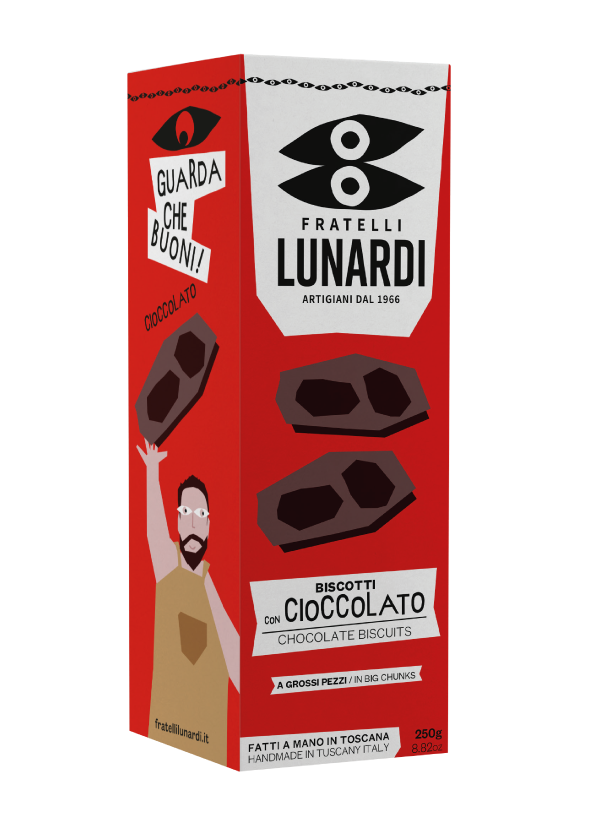 In the heart of Tuscany, where craftsmanship were born, Massimiliano and Riccardo Lunardi relaunch their family business, creating a new brand that carries their faces: FRATELLI LUNARDI. Since 1966, bread, sweet and savory items are produced in their family bakery, made to meet the needs of gourmand lovers coming from all Italy to taste their specialty at a table, or take away. Their crumbly biscuits [the chocolate one on TOP] and Tuscan PGI cantucci have also gone abroad and today are distributed all over the world. In order to have a huge range of finest food, bros are always involved in a never-ending research of the best, because they are maniacs of the Good and the Beauty. One of the most traditional recipes of the Tuscan cuisine inspires our biscuits: Cantucci. We add a little bit of genuine butter to get a softer and tasty result. We knead, prepare Elongated Strips of Dough and then Bake in the Oven. When they are ready, we try them, share opinions and knead them again. KEEP AN EYE, IRRESISTIBLE! Now, flavours are five, we have something for every taste: Italian butter cookies for adults and children, the greediest and those who are more careful, as a present to give or to enjoy. And also, a selection of desserts for the special days: from the Panettone, the traditional Italian Christmas cake to the Colomba cake, there's something to make every occasion even more tasty. Discover them all, express a desire and bite it!
