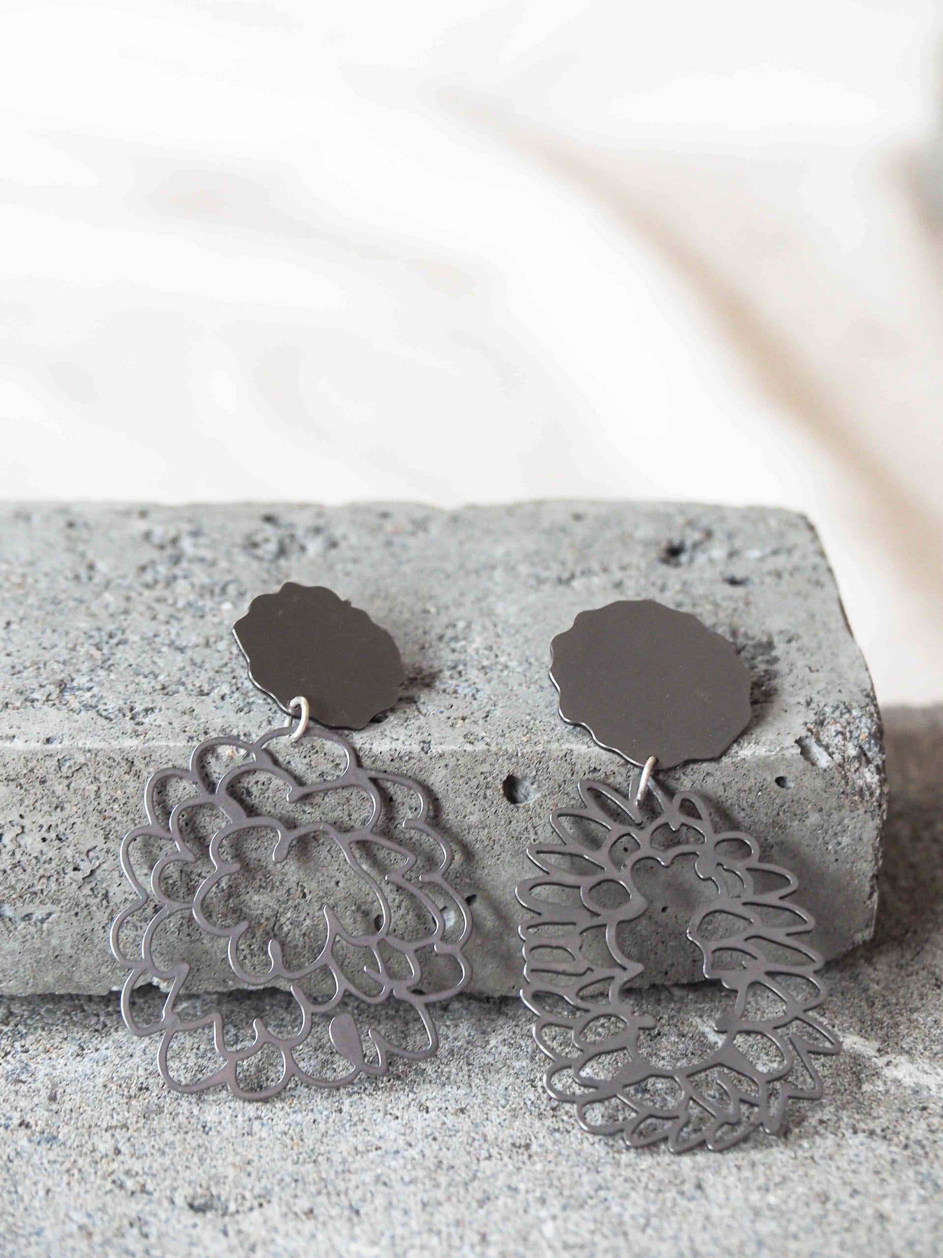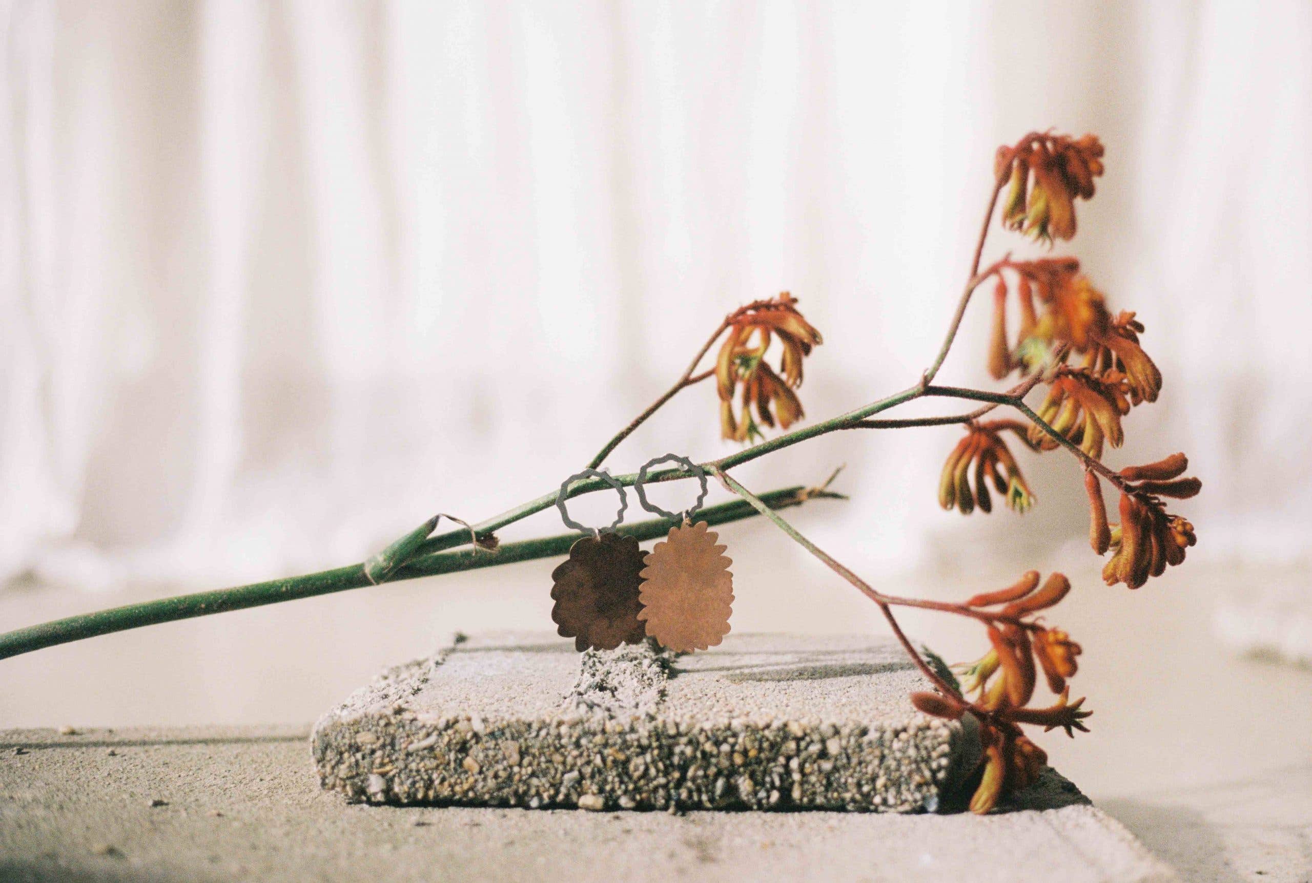 Usually working in a creative agency for other businesses, ELKE is a place for designer and artist, Elke Gill to be free with her work. Her pieces range from industrial, yet delicate jewellery to silk headscarves and art prints that showcase the colourful inner-workings of her brain. ELKE's jewellery pieces are inspired by land and are true to the raw beauty of the Australian environment. It's the contrast of the hand-drawn elements with the industrial precision and intricate nature of laser-cutting that draws people to her pieces. Working out of her home based studio in Northern NSW, Australia, Elke ensures up-most care is taken when it comes to sustainability. The machines Elke uses are powered by the sun, the collections are slow, small-batch and the business gives back where we can.