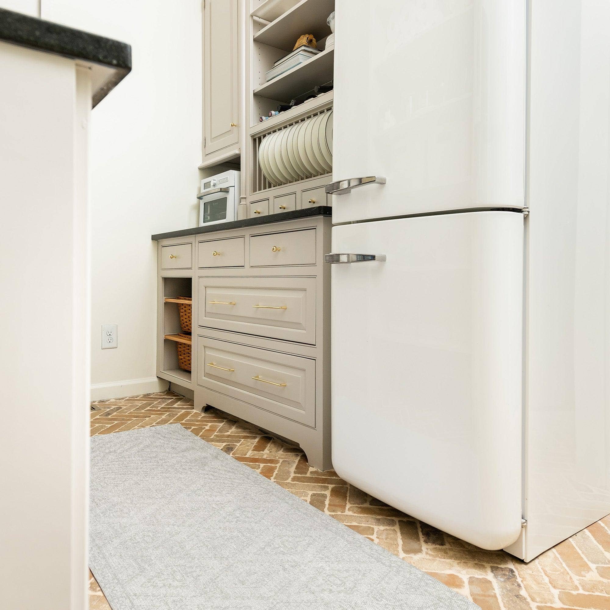 Carolina CreekHouse started at the kitchen sink with our Founder Shannon Blake! She used to buy 3-4 of the same inexpensive fiber rugs, one to keep in front of her sink to protect her wood floors and 2-3 to keep as backups. Even with regular washing, the rugs would be so disgusting she would just throw them out and replace them with one of the matching backups. Her 20+ years in consumer products and a determination to find a better solution led Shannon to wipeable, vinyl mats and the start of Carolina CreekHouse. Pretty and Practical is the driving force behind the company and everything we offer to our customers!