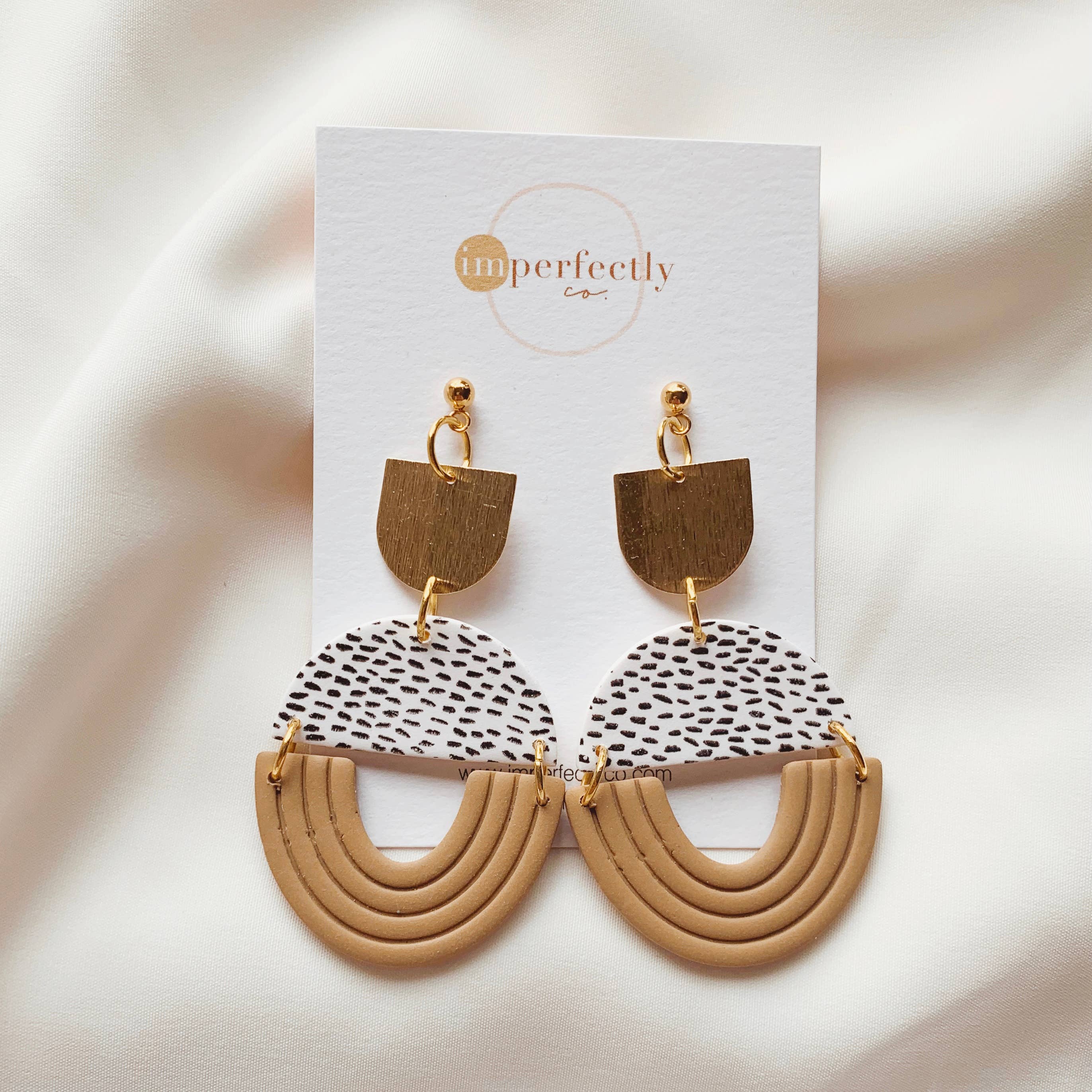 Imperfectly Co is the home of high quality, unique, and modern polymer clay earrings. Every piece is handmade by me, Meghan, in Reno, Nevada. Imperfectly Co Earrings are incredibly light weight and made with hypoallergenic materials making them ideal for sensitive ears. This mama-owned small business began as a creative refuge and turned into a passion for empowering womxn to feel bold, modern, and capable of anything. The name "imperfectly co." is a reminder to myself (and hopefully you) to never wait until it's perfect to begin. "It" being whatever it is you're here to do, make, or be. Just take a deep breath and begin, no matter how imperfectly. It's my hope that you will be reminded to be bold in the pursuit of your dream when you wear your imperfectly co. earrings.