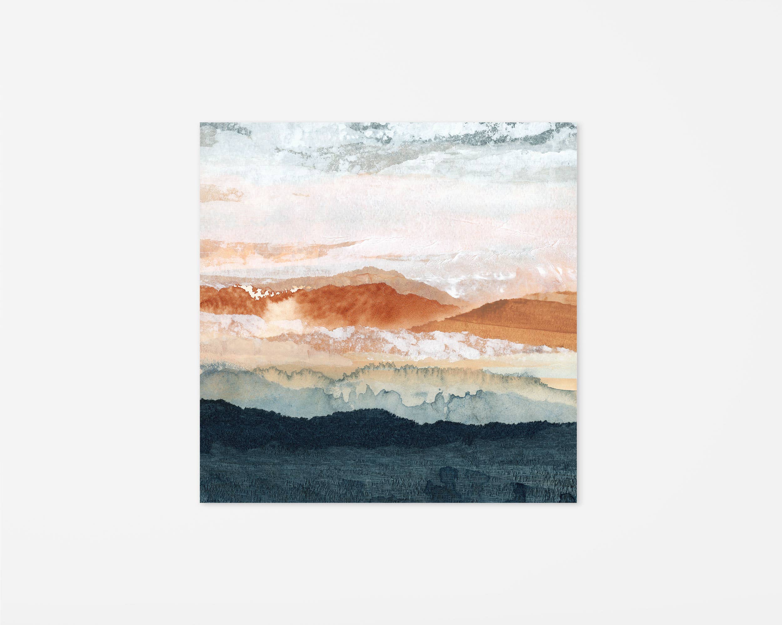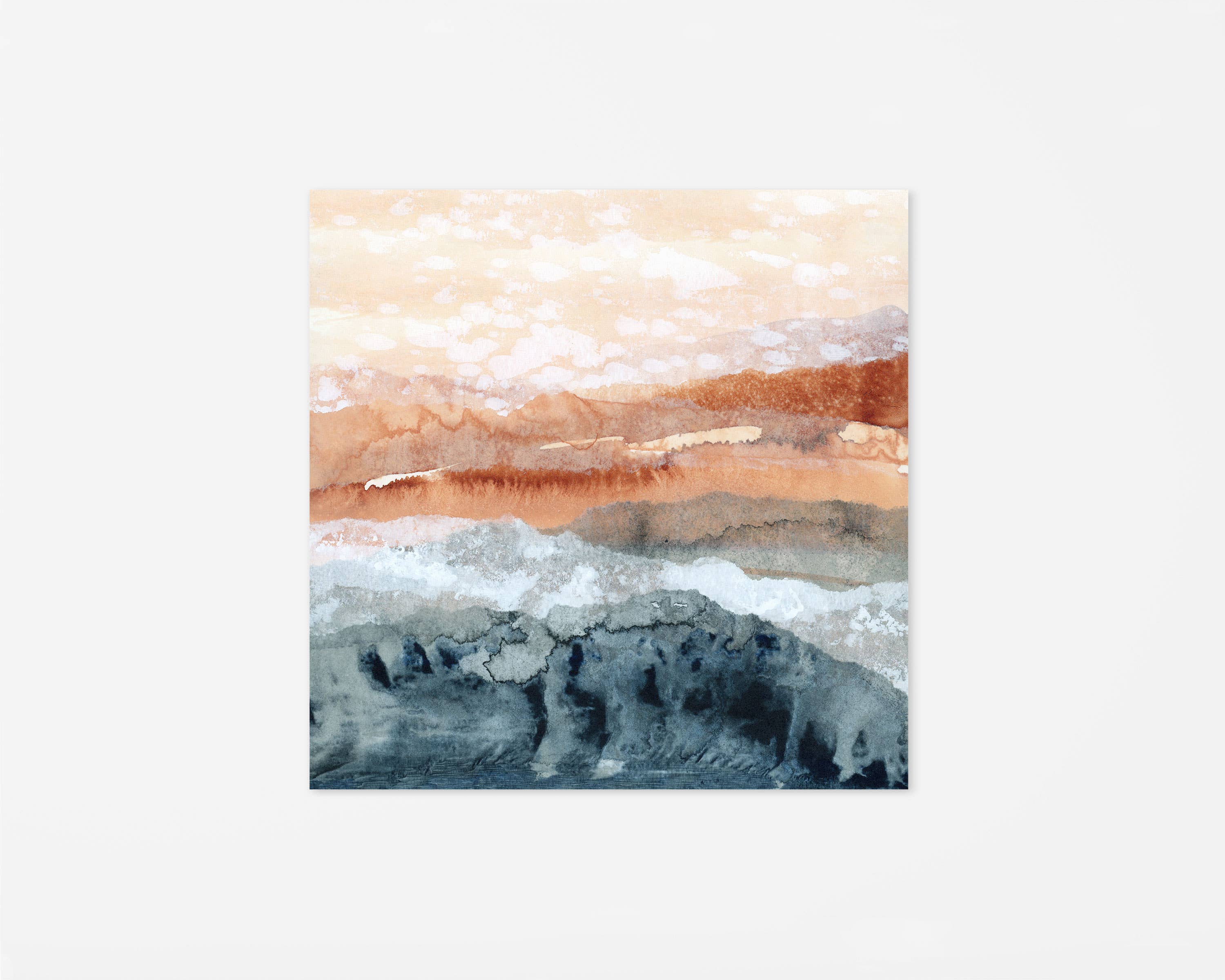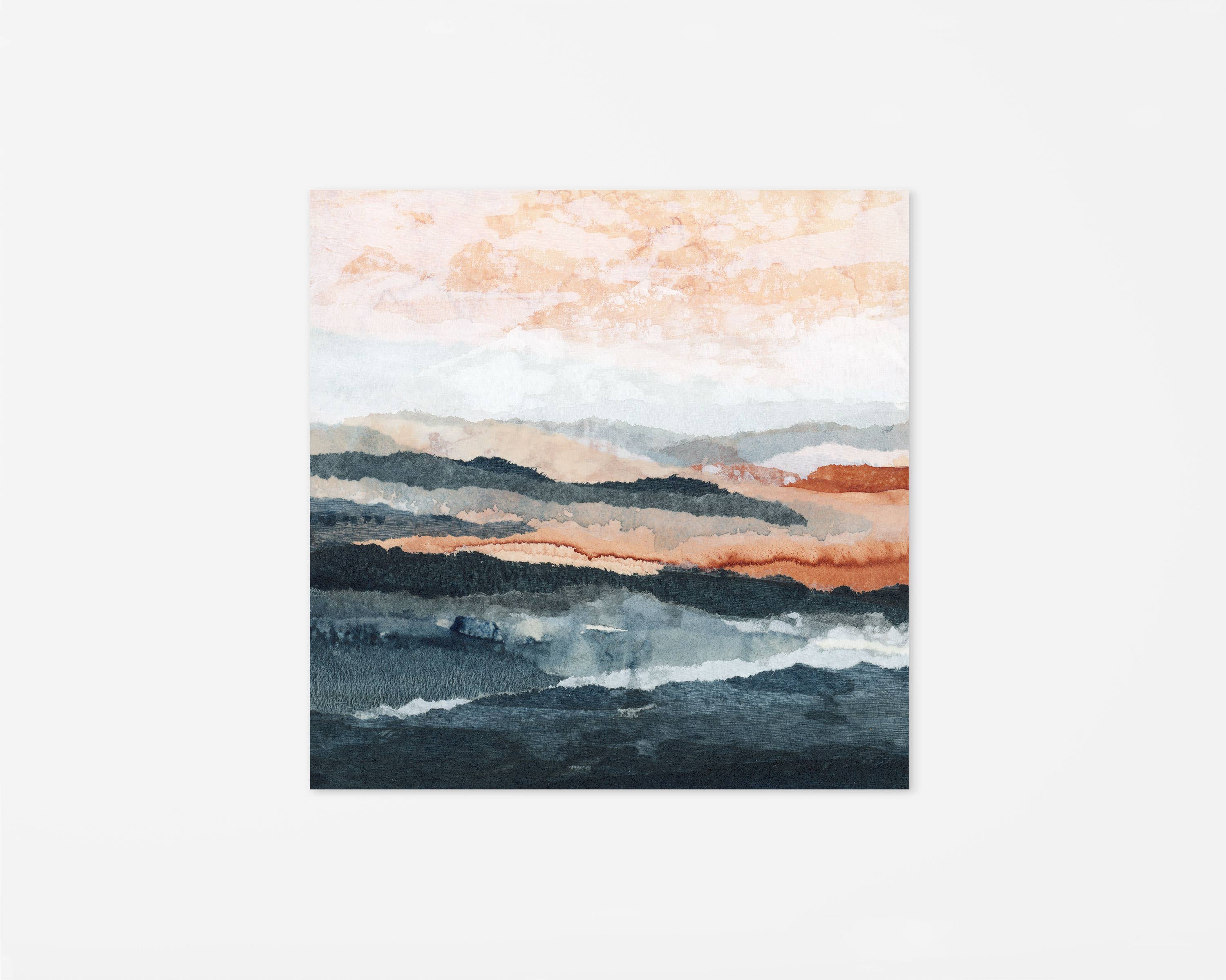 Lara Eckerman is an abstract collage and mixed media artist, wife and mother to two young children. She works from her home studio in the St. Paul metro of Minnesota, where she creates landscapes and geometric inspired paintings. Her work explores color, texture and layers using a variety of mediums including acrylic ink with water and handmade collage papers with varying transparencies. Lara hopes her work brings its viewers the same sense of calm and tranquility and peace that creating abstract artwork does for her.