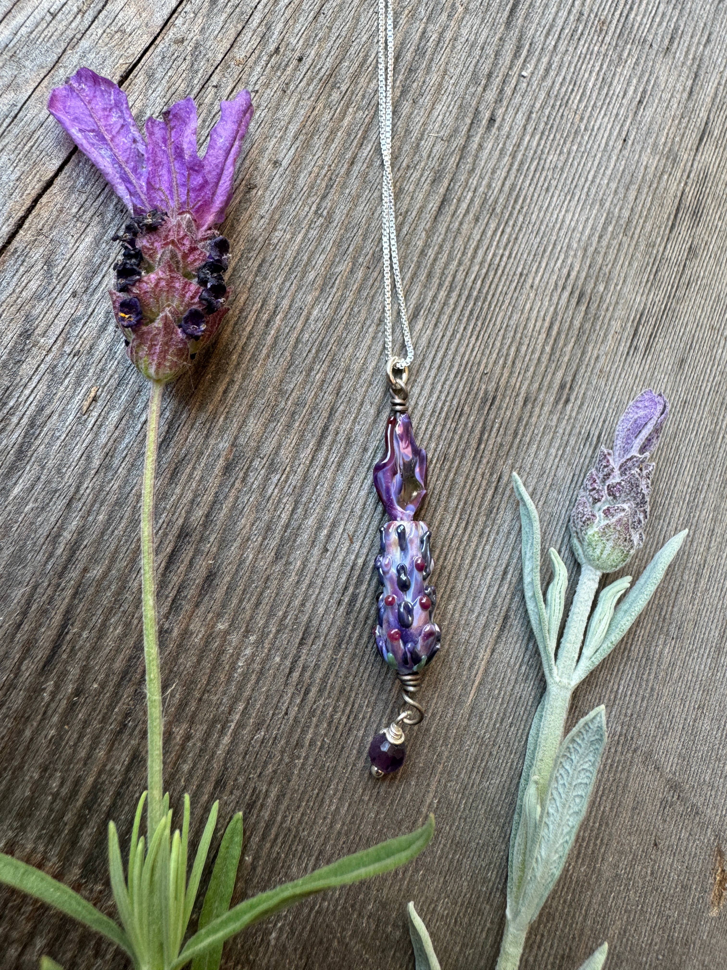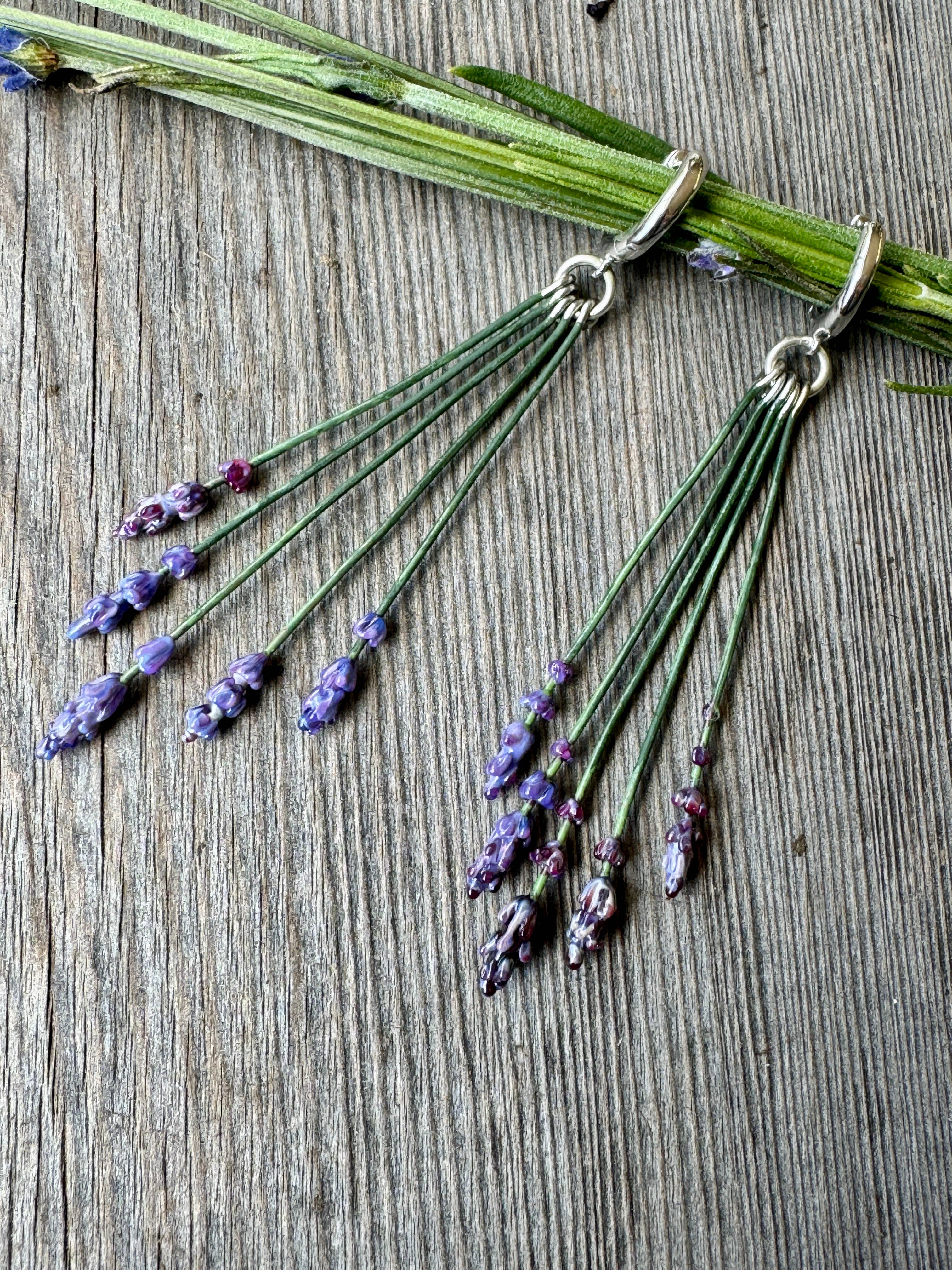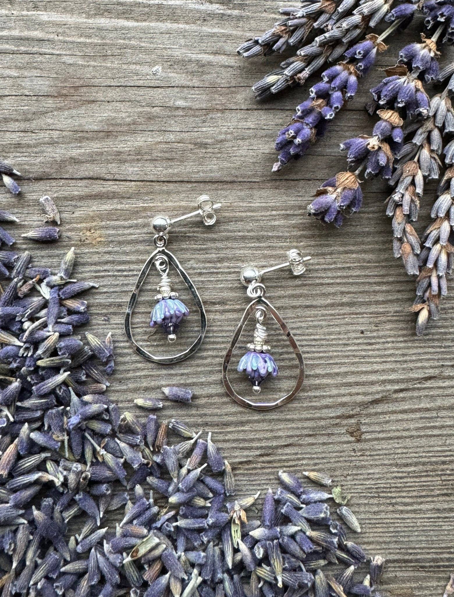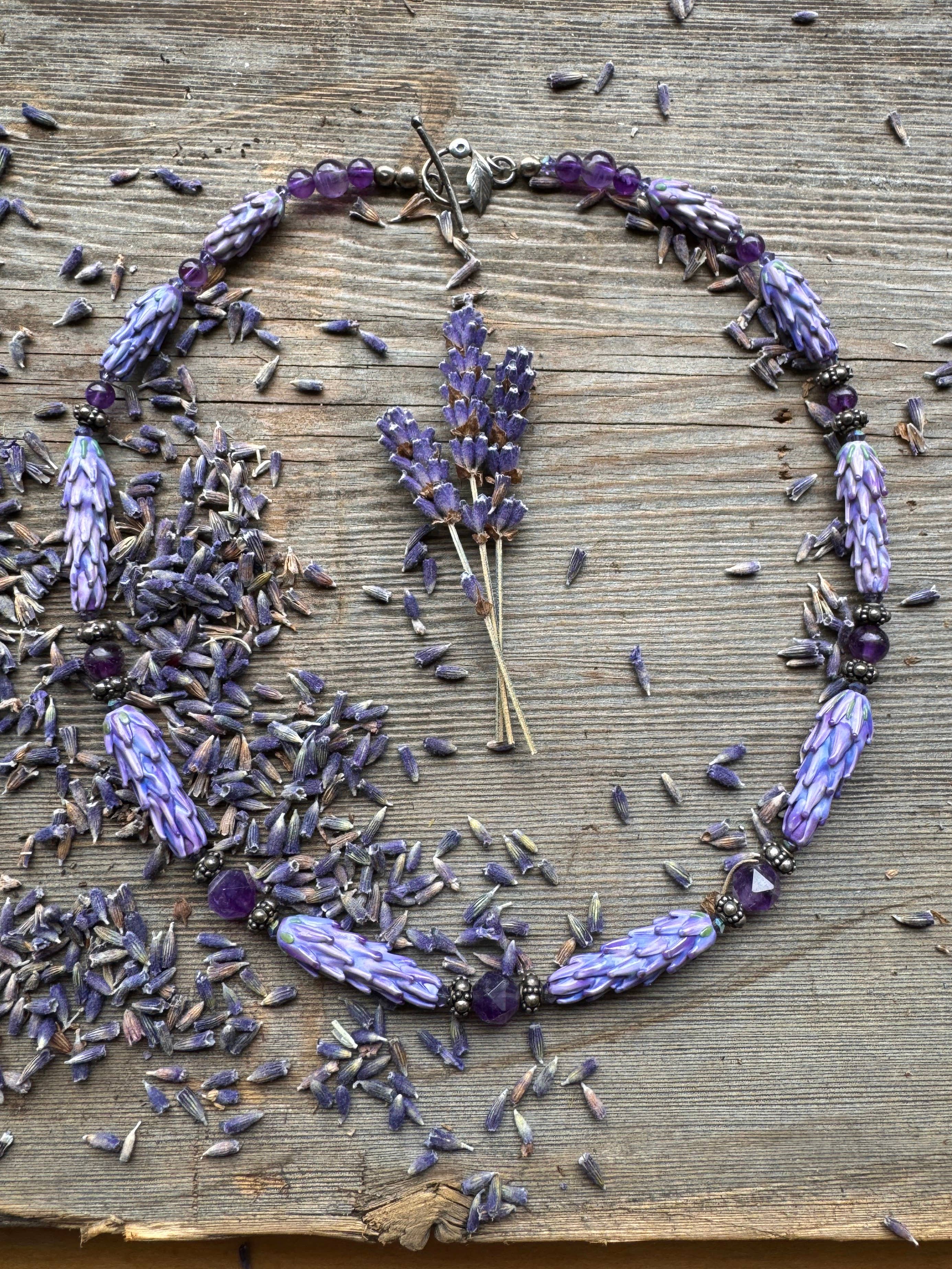 Andrea stands as the sole artisan behind Lavender Beads. Based in the beautiful San Juan Islands, nestled in the heart of the Pacific Northwest, she has been developing her torchwork methods for over 25 years. Fusing her passions for glasswork and lavender, she is inspired by the many unique varieties growing at the local organic farm where she has been employed for the past two decades developing value-added products from lavender flowers and essential oil. Andrea spends her days in her jewelry studio, crafting intricate, botanically accurate lavender blooms out of glass. Inspired by the varieties of the beloved local farm, she works to capture the essence of the form of the plant, from the first budding stage to full bloom. From there, she uses sterling silver findings and Swarovski Crystals to add glimmering final touches to pendants, bracelets, and earrings. Her bestselling gender-neutral Aromatherapy Bracelets use porous lava stones to soak up lavender essential oil, so you can carry the sweet herbal smell with you wherever you go. Each piece in the jewelry line not only serves as an accessory, but also a unique keepsake souvenir from a visit to a lavender shop or farm store. Find your next unique jewelry line here, at Lavender Beads!