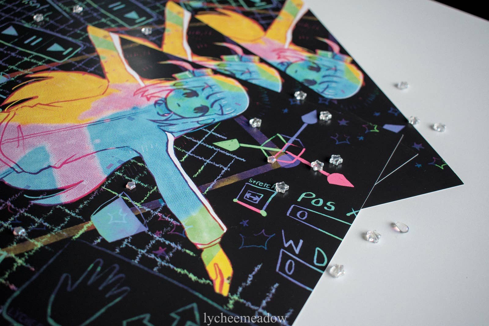 Lycheemeadow is a PNW-based artist and jewelry maker who loves designing whimsical, dreamy things inspired by her Chinese American upbringing with delicious food, delightful videogames, and thought-provoking anime. This includes things like silly stationery, clip-on and non-clip-on handmade earrings, colorful keychains, waterproof stickers, and much more!