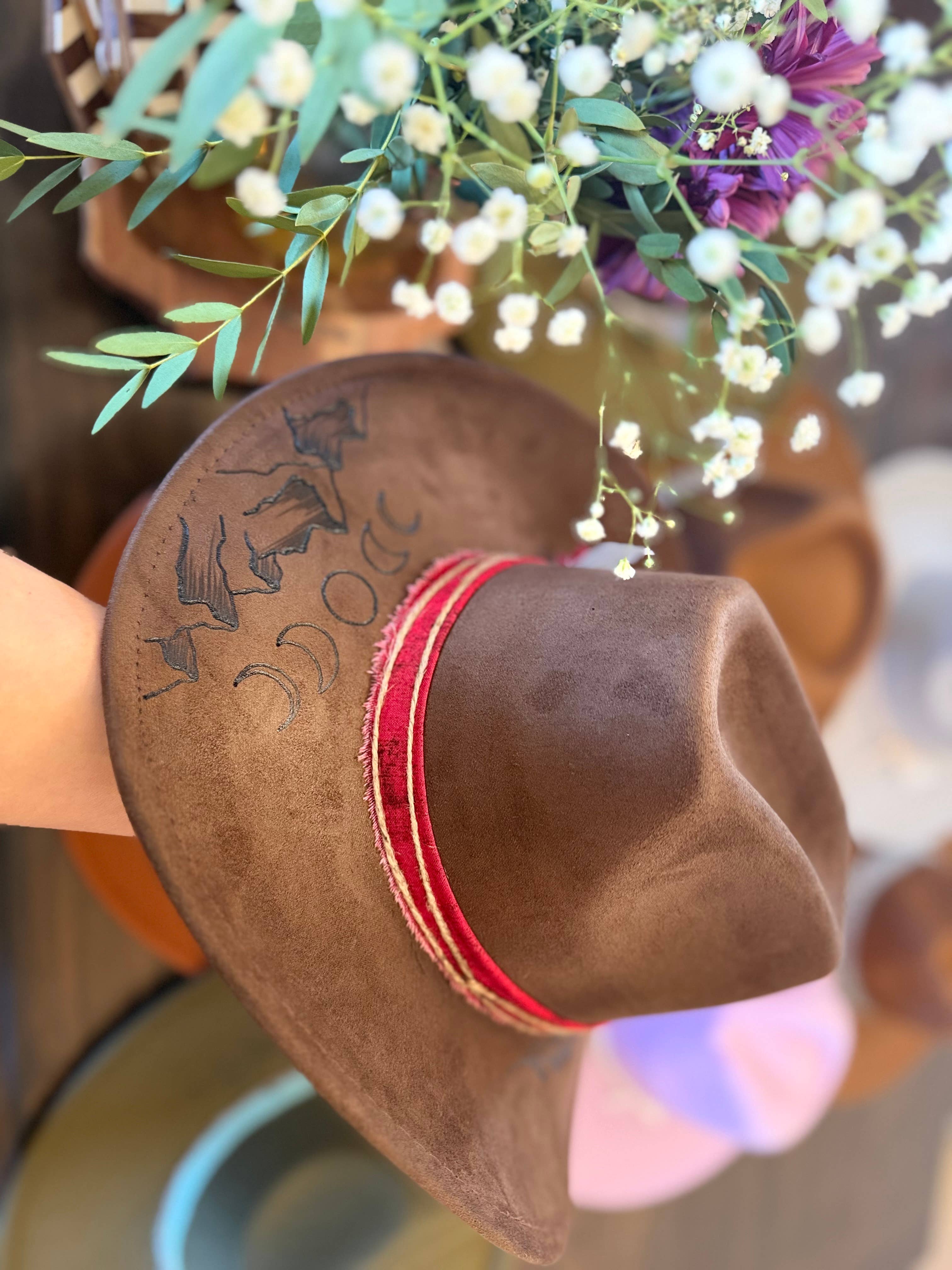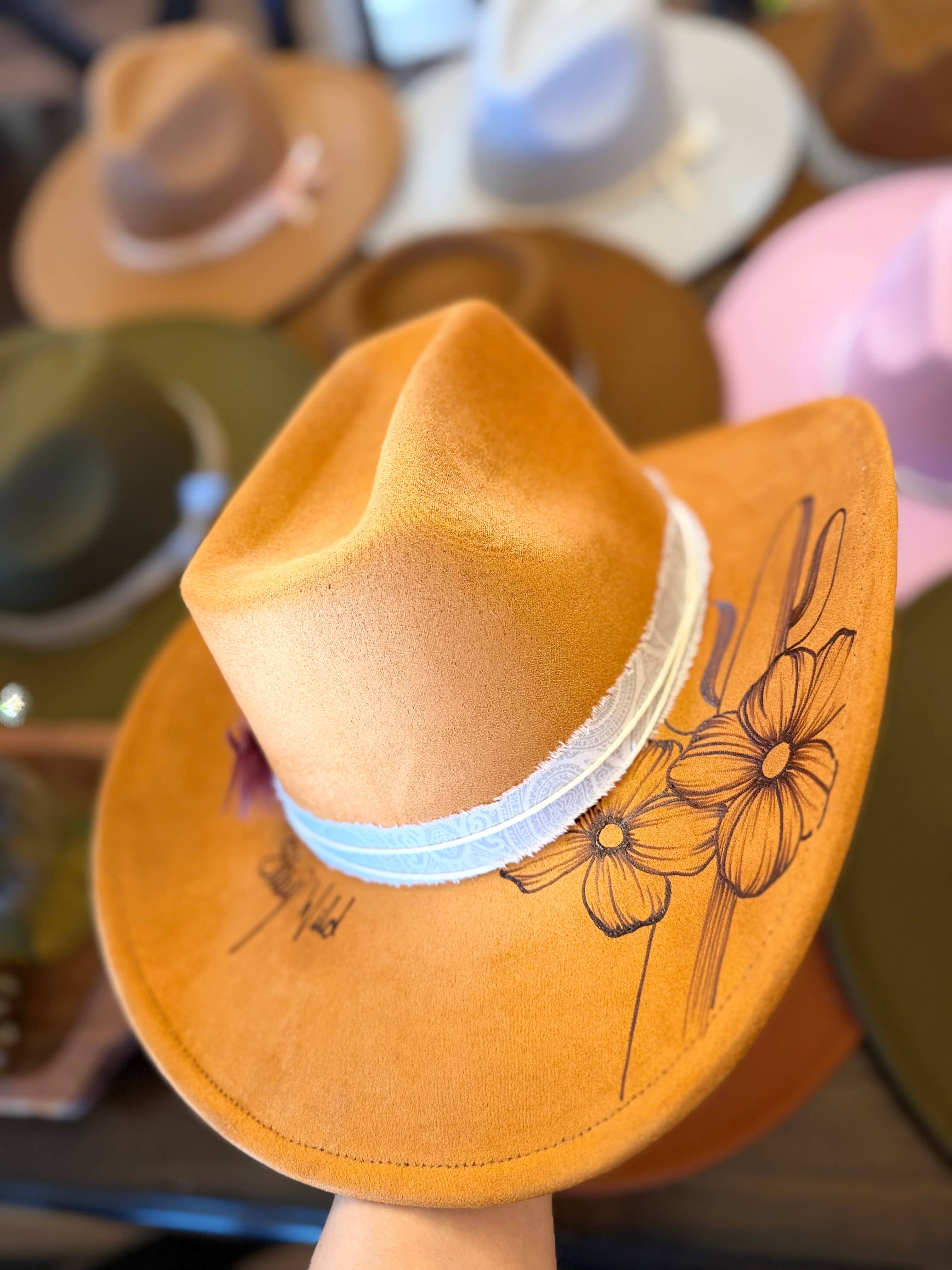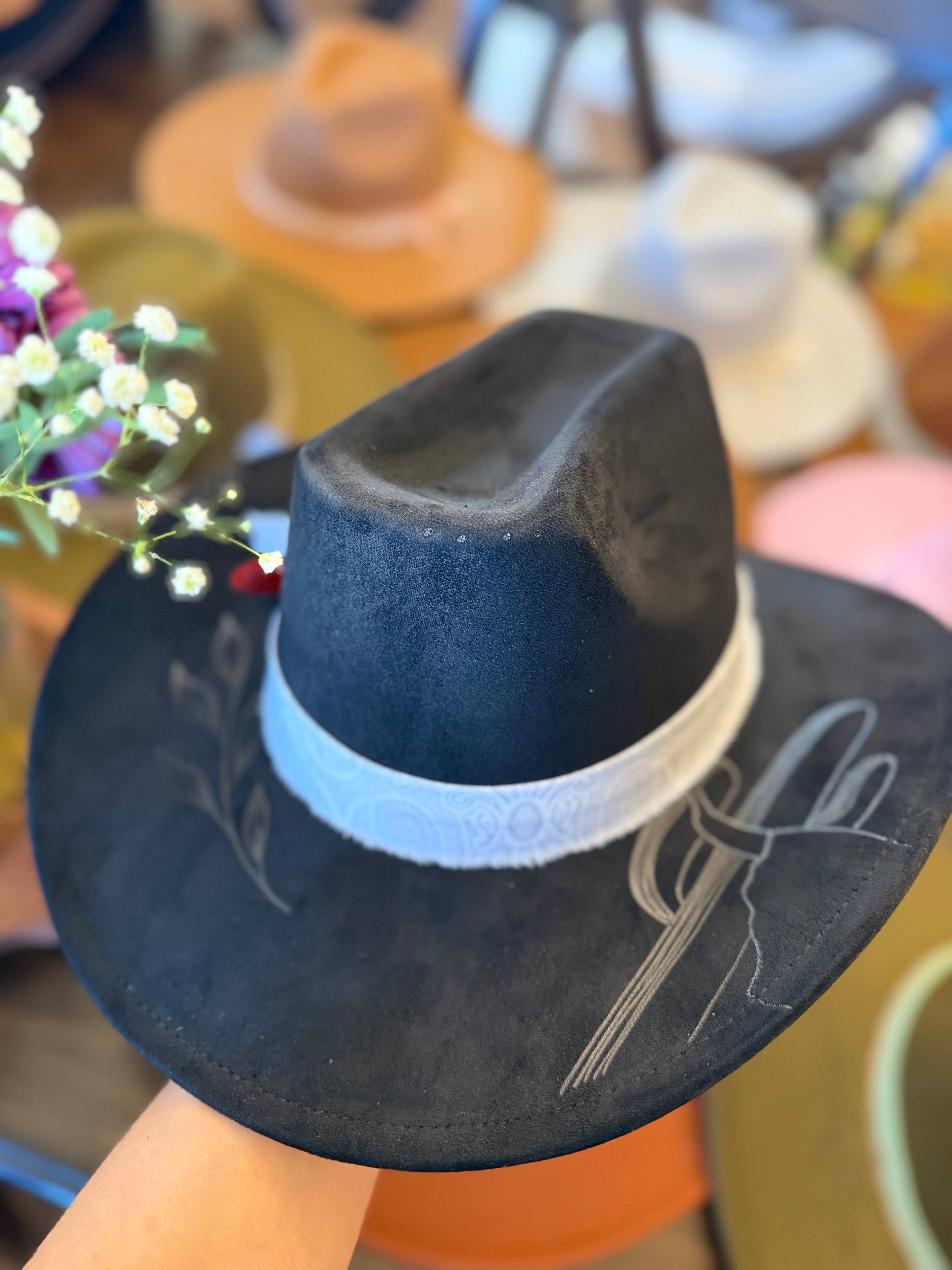 Ashley started burning hats to wear early in 2022. The first one sold almost immediately so she made another. That one sold too and before long they were selling like crazy! AJ came into the business in June and helped run the booth at rodeos, concerts, and events all summer then quit his day job in December to open the store and take on Whiskey Ranch full time. That has allowed Ashley to focus solely on creating and finding new wholesale opportunities. We are in over 60 boutiques around the US and growing, we're excited to bring these to Faire and offer them to a wider audience.