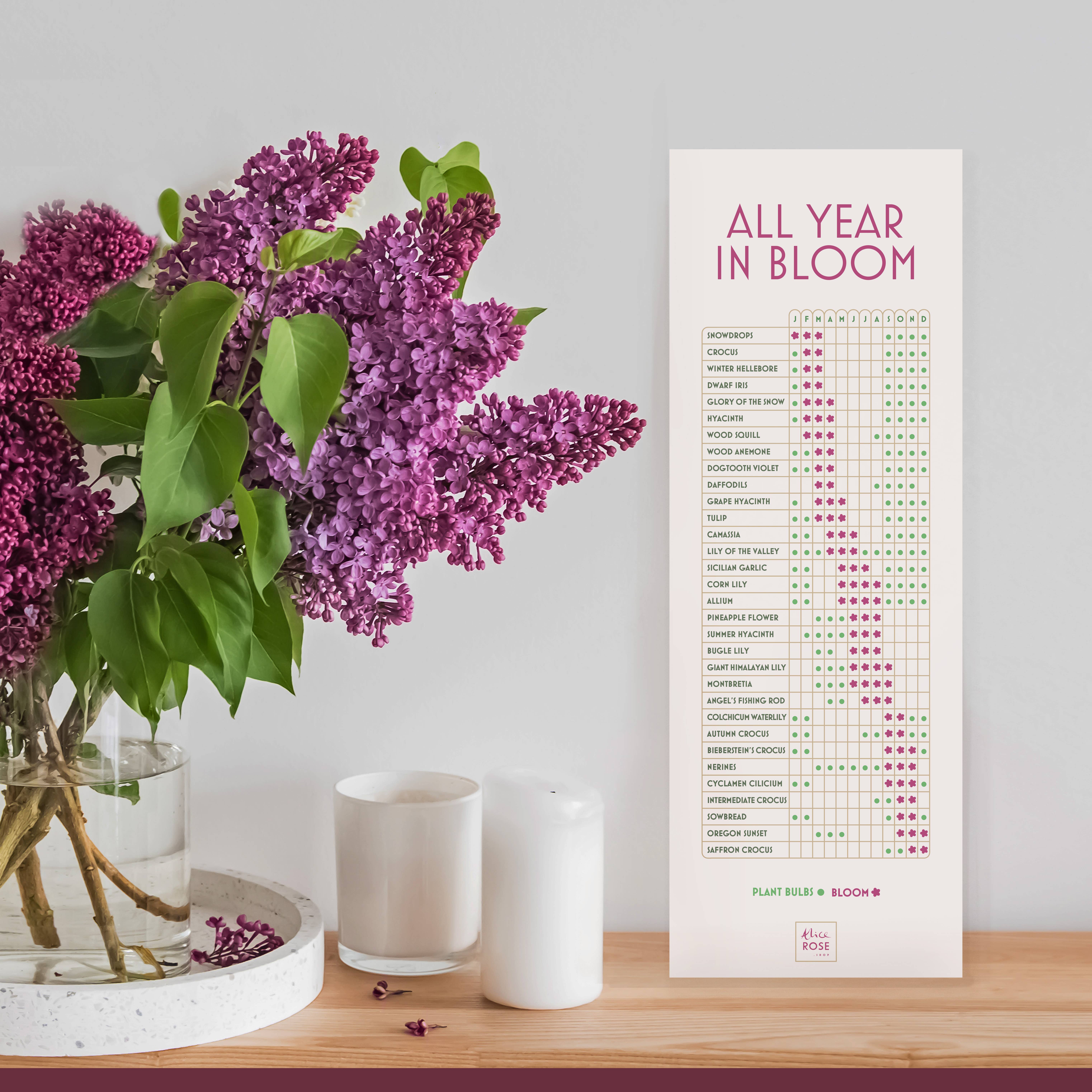 Alice Rose creates useful contemporary reference charts and calendars, full of the kind of information you want to know but can’t quite commit to memory! Whilst at Norwich Art School in the 90s, Alice realised that her fondness for origami and cross-stitch meant that she would never set the Fine Art Department on fire. However, her secret love of mathematical precision and those little orange Rhodia graph notebooks led to a career in designing graphics and finding ways to present vast amounts of information in really clear ways. Norfolk-based Alice Rose and her small team, design contemporary art prints with traditional information: a growing collection of charts and calendars illustrating the kind of details you find yourself looking up online but would rather have on display. A simple print on a board that will prop on your mantelpiece or can be framed as the perfect gift for the person that has everything!