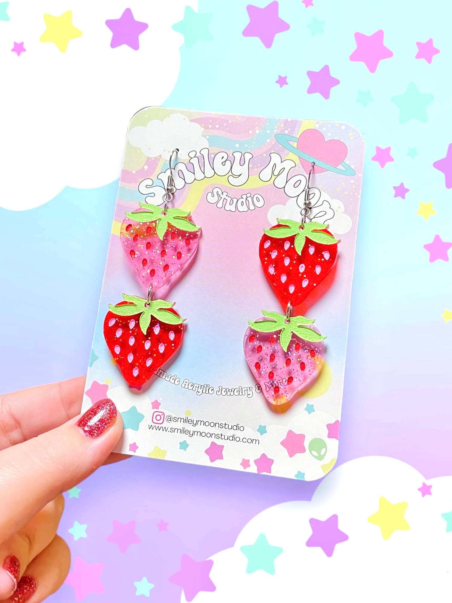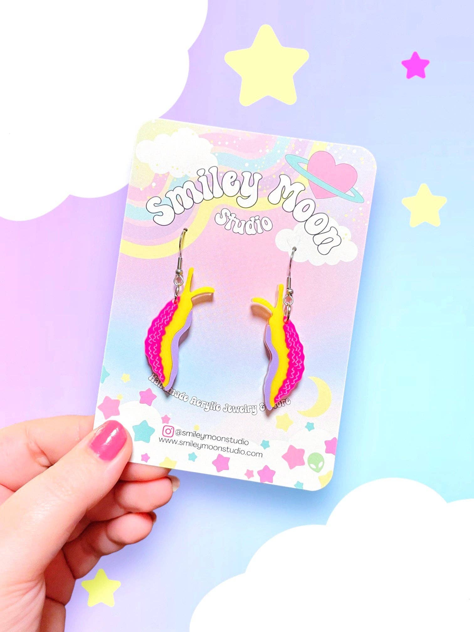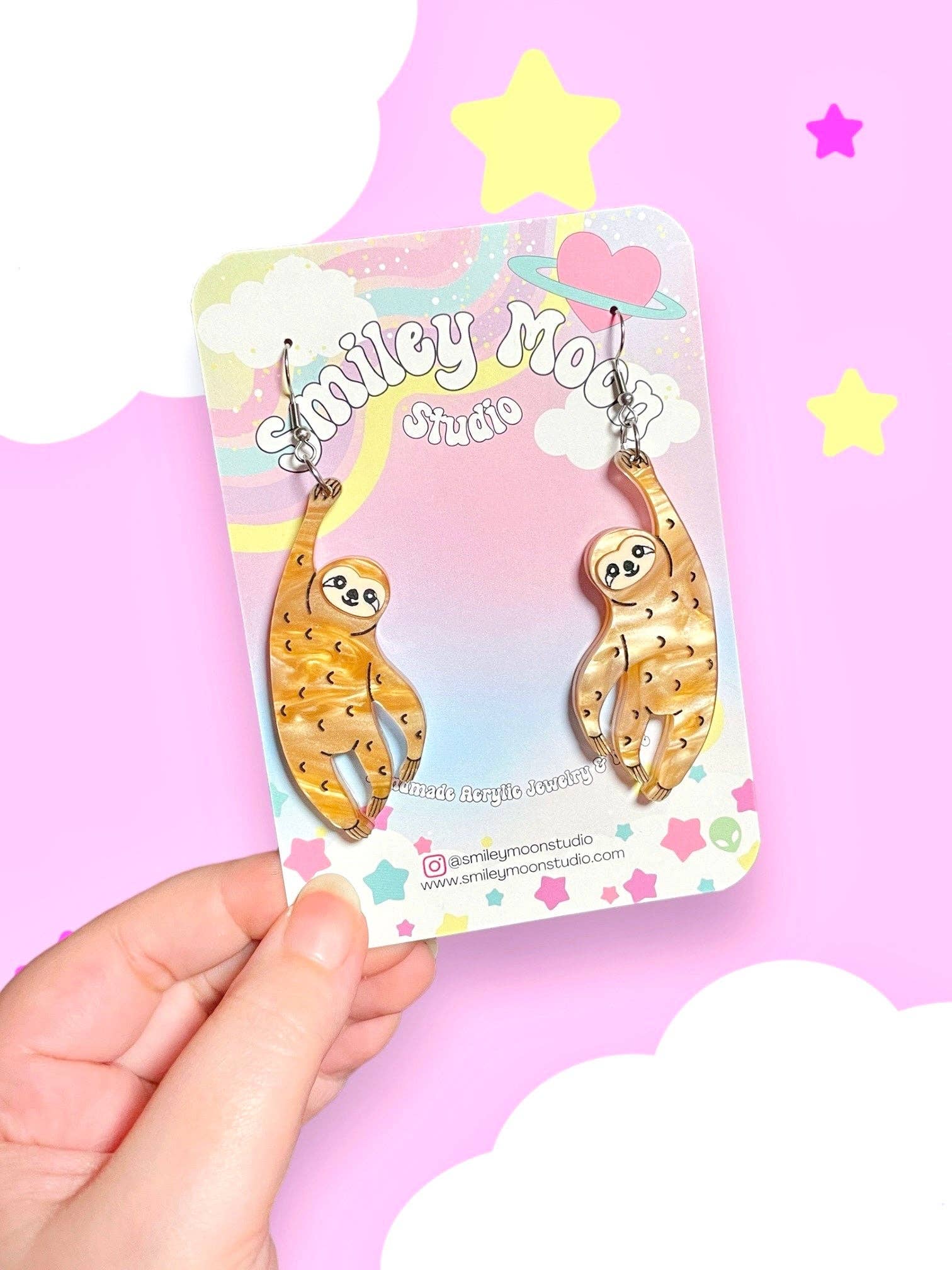 Welcome to Smiley Moon! My name is Dani, the owner of Smiley Moon Studio LLC. I run this little small business out of my home. Creating art that makes people feel beautiful and express themselves brings me indescribable joy. My favorite pieces to make are all things whimsical, animal and science related, and of course- nostalgic. All earrings in my shop are made in my studio by hand. Your support is making my creative dreams come true. :)