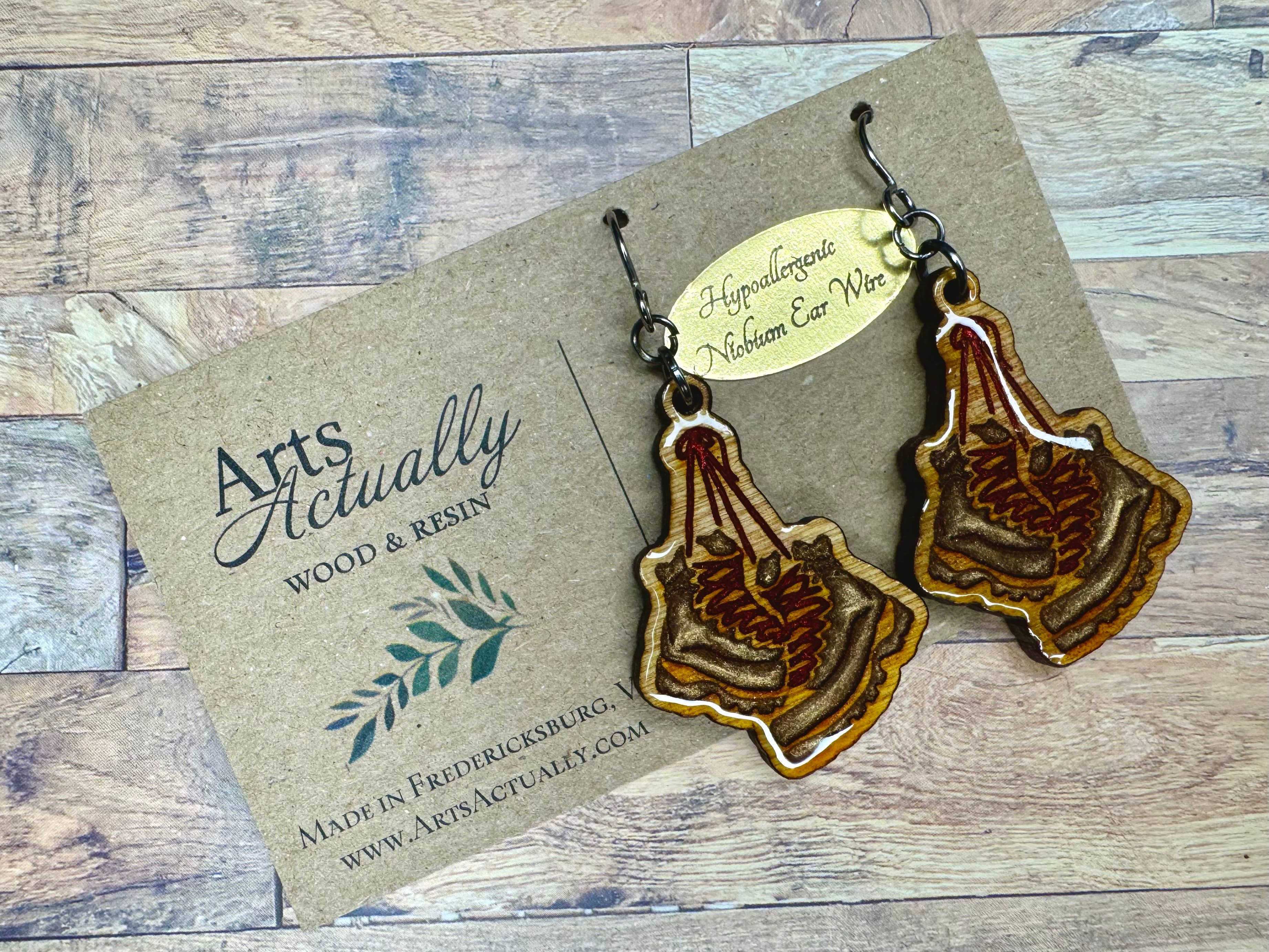 Hello, friends! My name is MJ, and I'm a wife, mother, and coffee shop/roastery owner who loves creating. I picked up the art of pyrography (woodburning) in 2013 when I decided I wanted all the signs at my coffee shop to be burned by hand, and eventually that turned into burning artwork and laser engraving as well. I've been selling my creations in my coffee shop since 2015 and since they've always sold incredibly well, I recently decided to start accepting local wholesale clients as well, inevitably resulting in expanding onto Faire! I love the earrings I make because they're lightweight, fun, and hung on hypoallergenic niobium ear wire! This makes them a perfect gift item. The lip butters I make are natural and handmade, and have always been a big seller for me, developing a bit of a cult following behind them. I've been making these since 2012, when I worked hard to develop a recipe for a lip balm that has safe ingredients, staying power, and won't dry out or chap your lips! Another feature people like about this lip butter is that it's pleasantly scented. Oftentimes lip balms can have a strong scent that takes over your nose when you apply it, but this has a sweet subtle scent of orange and honey. My Epic Map collection is a fun way to display your local region! All maps are sanded and finished with multiple layers of a UV-protectant spar-urethane, which both protects from the sun and protects the live bark edges so they are no longer fragile.