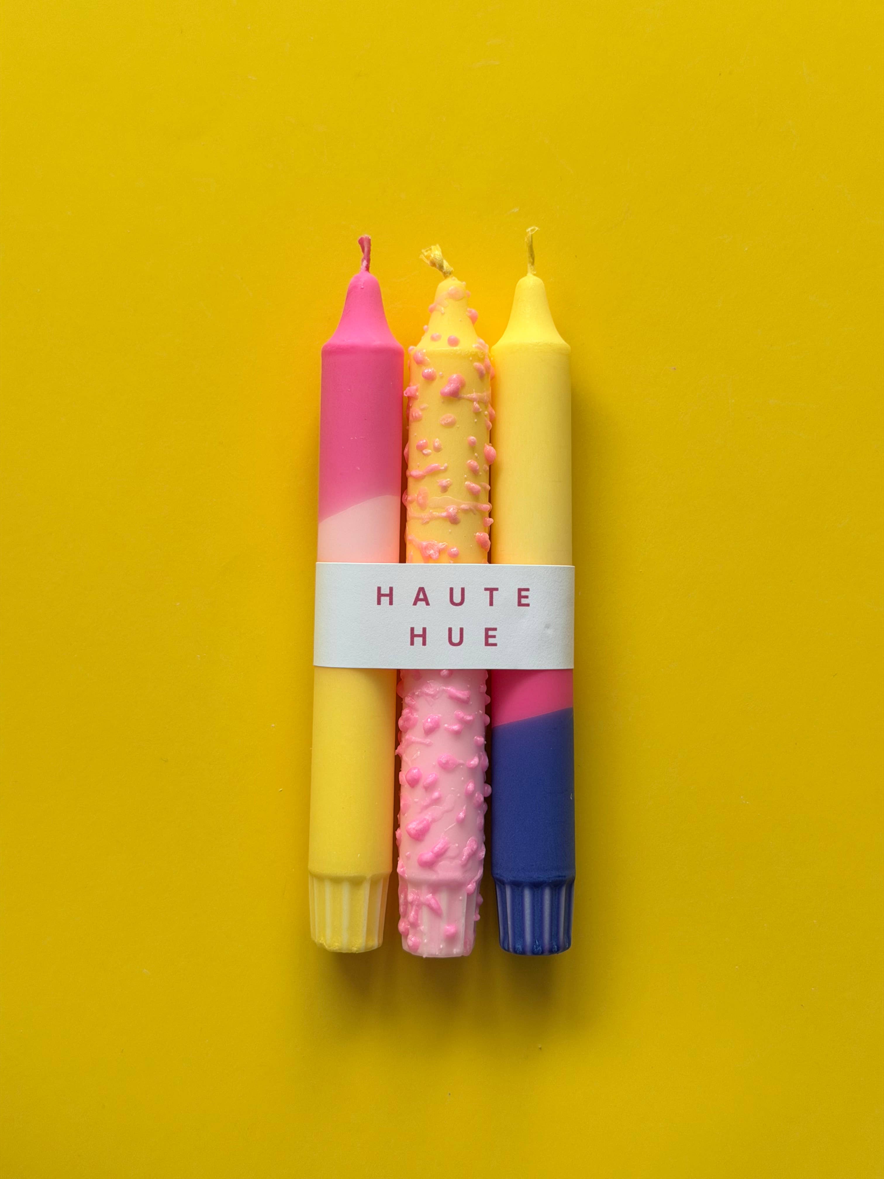 I’m Pravallika — candle lover, color enthusiast, and the one behind all the hand-decorated goodness here at Haute Hue, straight from my little corner in Montreal, Canada! It all started with a scroll. One day, I stumbled across some gorgeous candle art online, got curious, grabbed a few plain tapers, and gave it a go. Next thing I knew, my desk was covered in color, and I was totally obsessed. What began as a fun little hobby quickly lit up into a full-blown passion — and now, it’s a joyful business that lets me share my love for hues with the world. At Haute Hue, every candle is made with stearin wax, hand-decorated by me, and packed with personality. They’re little bursts of happiness, made to brighten your space — and your mood. Because let’s face it — why should a day look plain when it can pop with color?