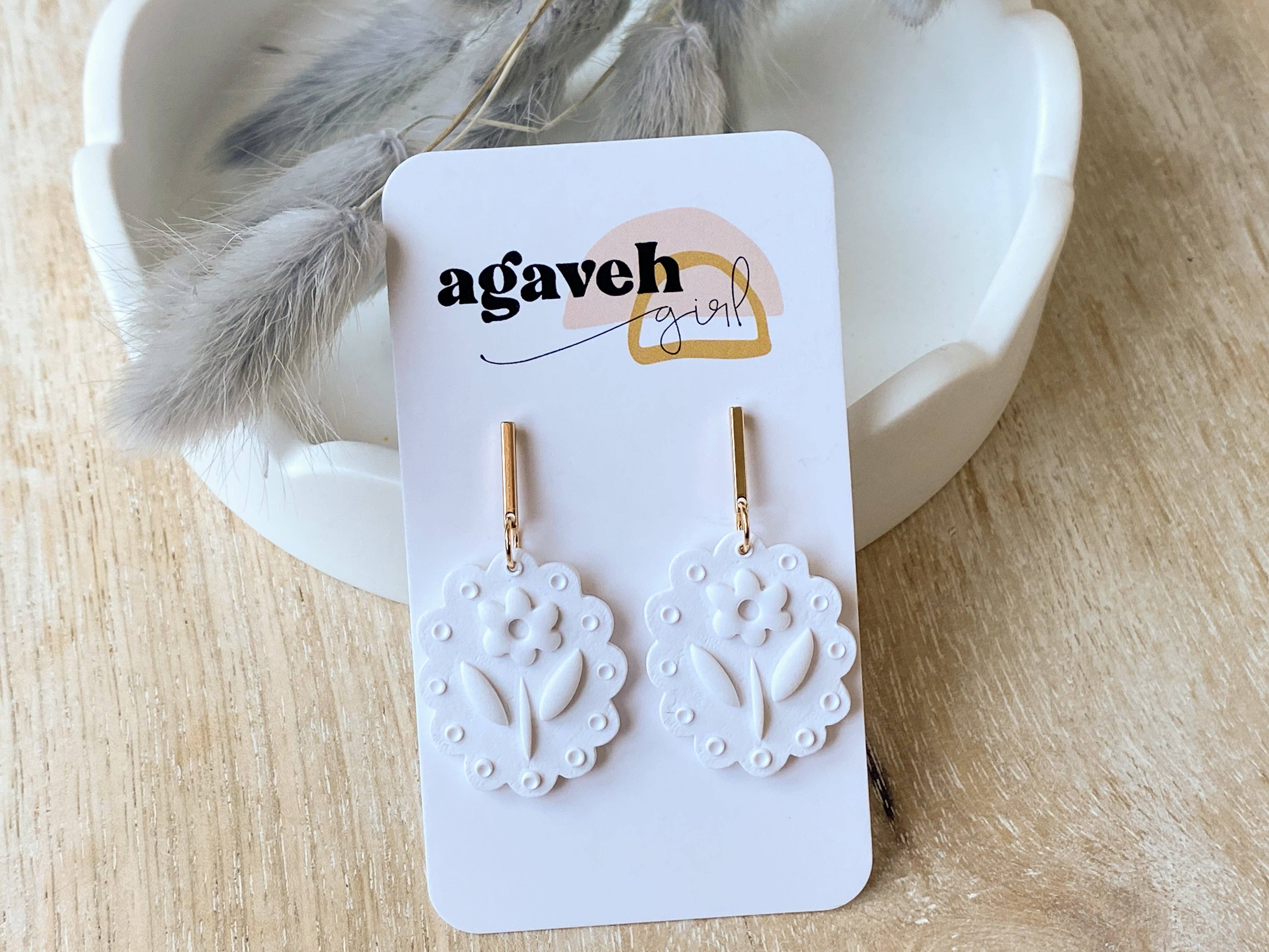 Agaveh Girl was born out of a desire to help women feel their beauty and worth as they wear our earrings. Each earring is carefully handcrafted in Alberta, Canada with products that are lightweight and hypoallergenic. All our earrings are nickel free and safe for sensitive ears. Each earring is handmade with precision with custom polymer clay colours and cutters that we curate in our home studio. We take pride in creating unique and versatile pieces for everyday life. We have crafted our earrings to appeal to both the young, old, and everywhere in between. Agaveh Girl elevates the everyday by providing a fresh take on the traditional earring that everyone can wear with ease and pride.