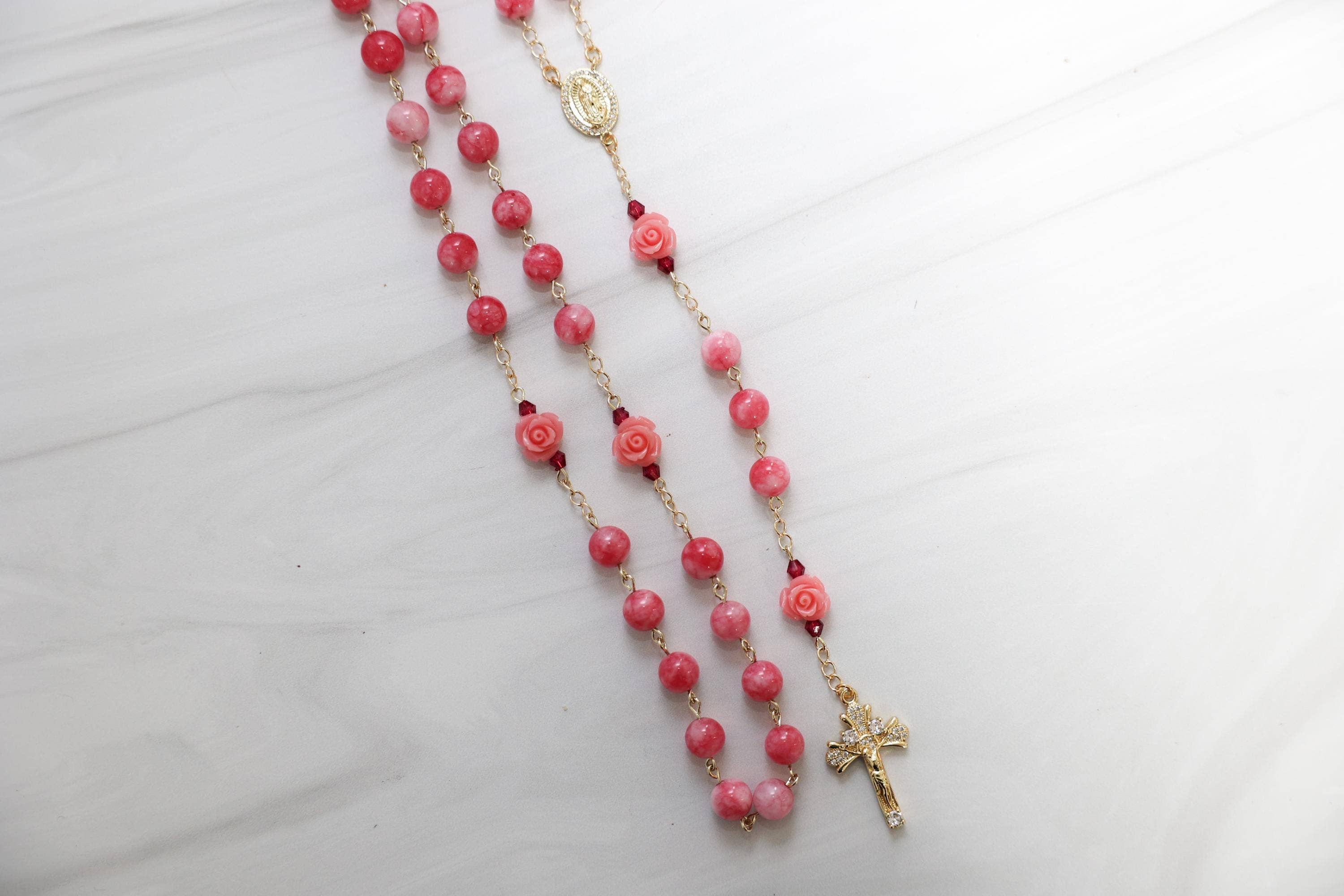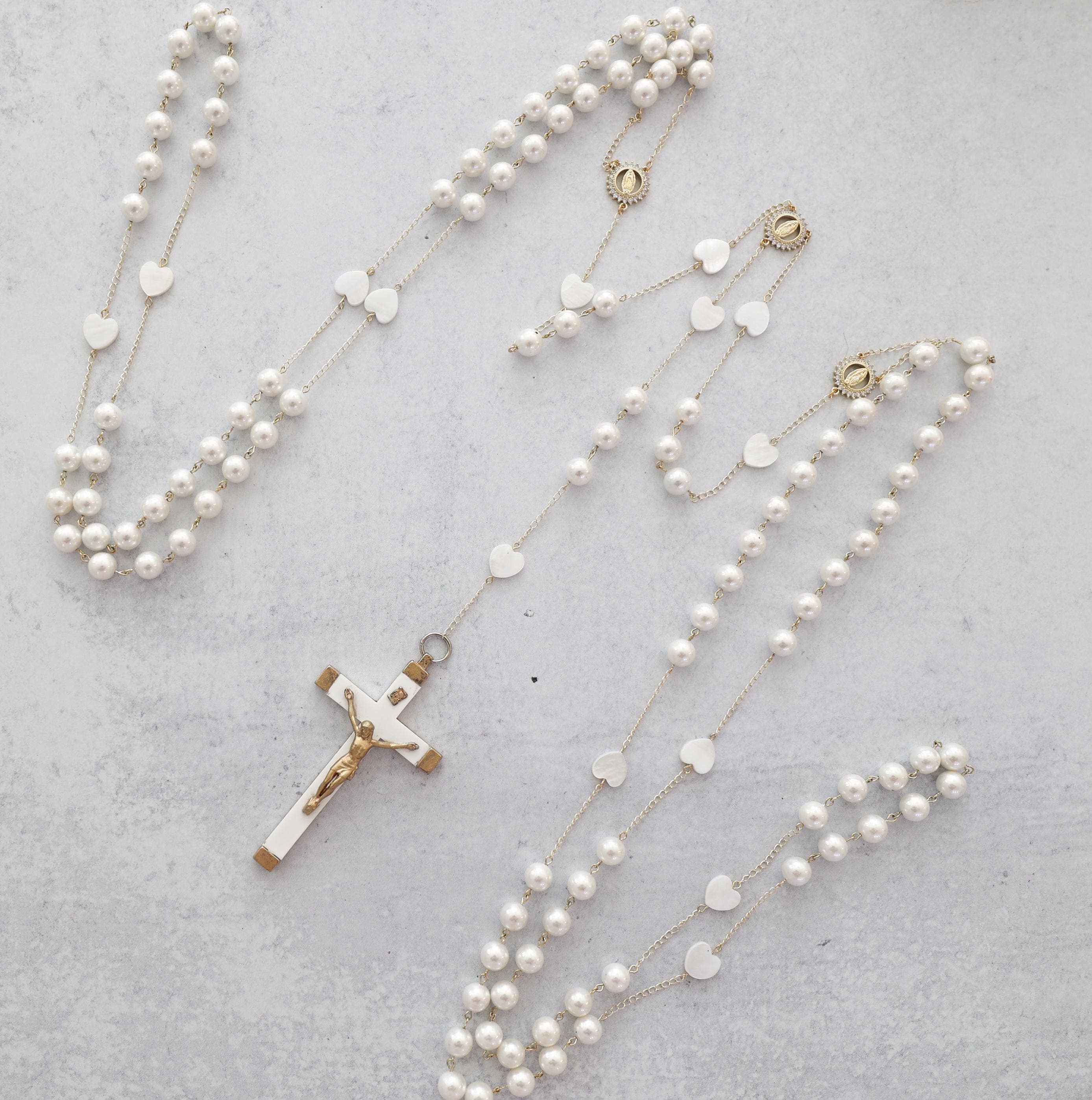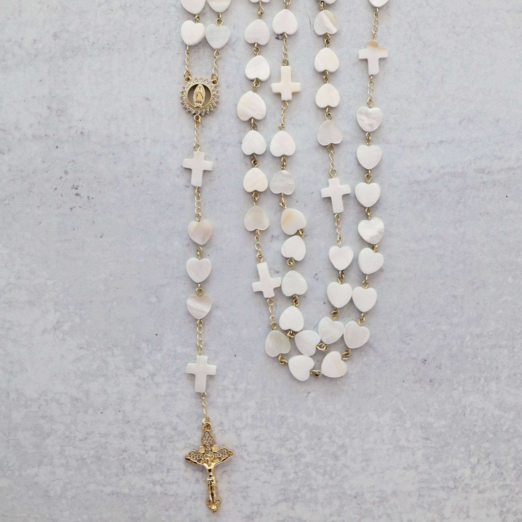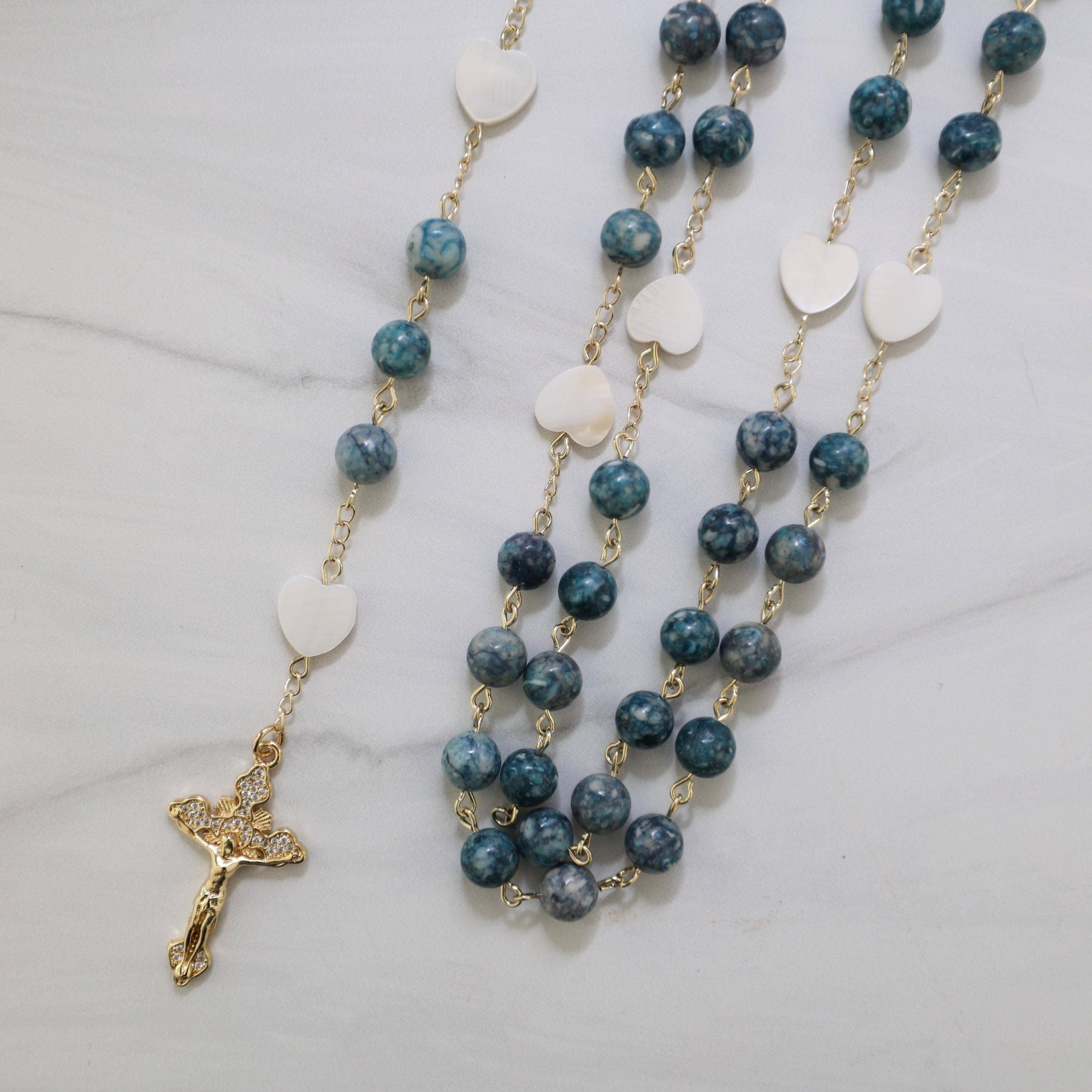 One rosary changed everything for me. 🩷 I found it at the Mission of San Juan Capistrano. At the time, I wasn’t religious, but I was struck by its beauty and I had to have it. That simple moment led me to read Praying the Rosary Like Never Before, to pray, and to learn more about the Catholic faith. As I continued to explore, I began crafting my own rosaries to gift to friends and the Church, and eventually entered RCIA. In 2023, I was received into the Church, receiving all my sacraments, including the Sacrament of Matrimony later that year. 🕊️💒 That experience became the heart of this brand. My mission is to create rosaries that move hearts the same way mine was moved... pieces that inspire prayer, devotion, and love for Our Lady, and invite others to share the faith. Each rosary is handmade with the highest quality gemstones and 18k gold findings, crafted with intention, reverence, and the hope that it will do for someone else what that first rosary did for me. 🤍 Many of the rosaries I make mark personal moments in my own life, including my wedding. One of our bestsellers is the Something Blue rosary I made for my bouquet, along with our wedding lasso and family rosary, Her Heart Shines. Every piece tells a story of faith, love, and devotion - created to be prayed with, treasured, and passed on. 🙏