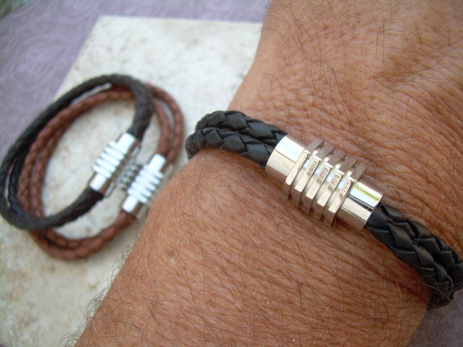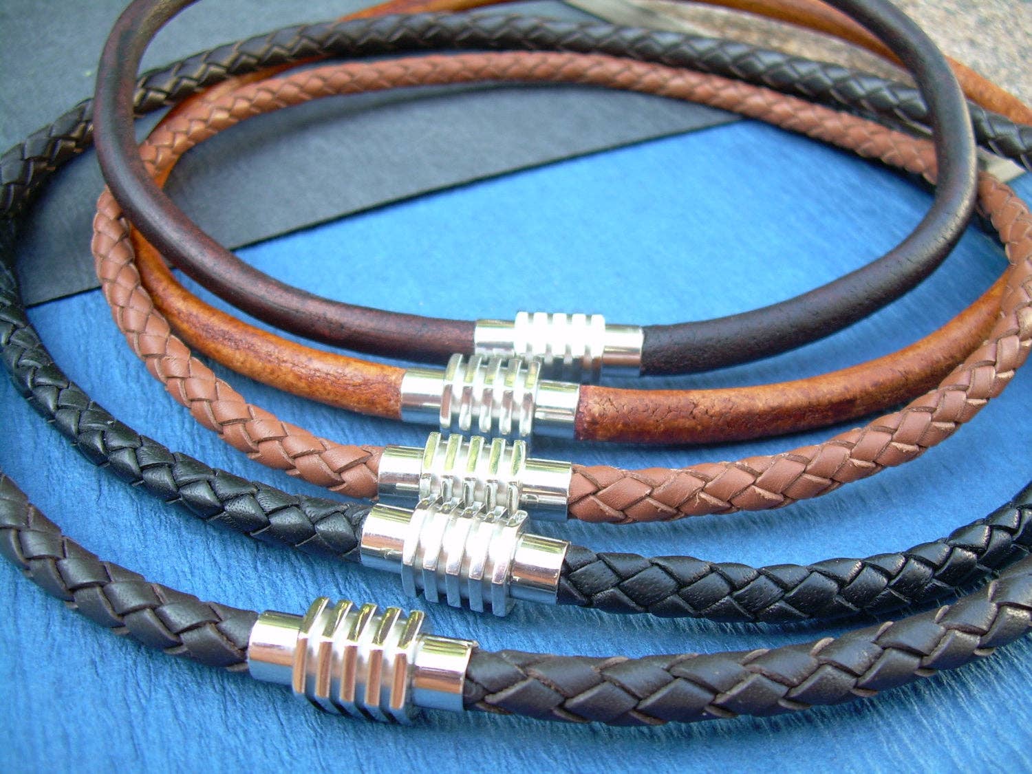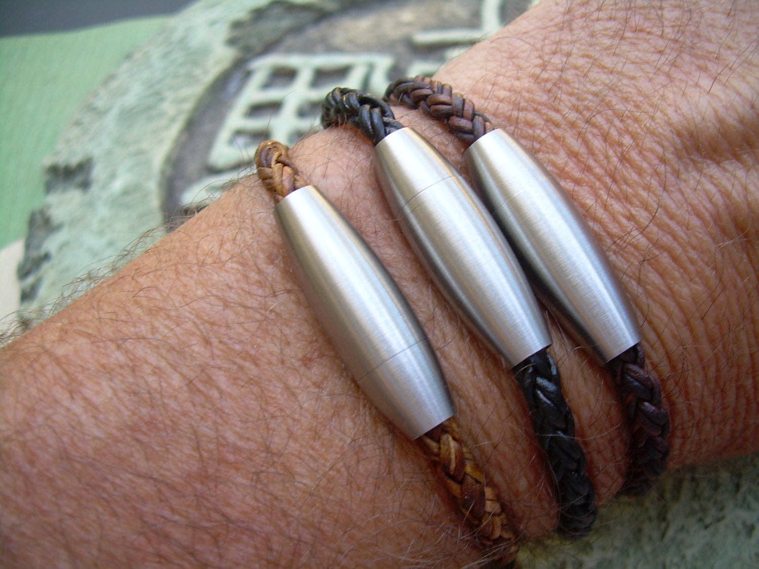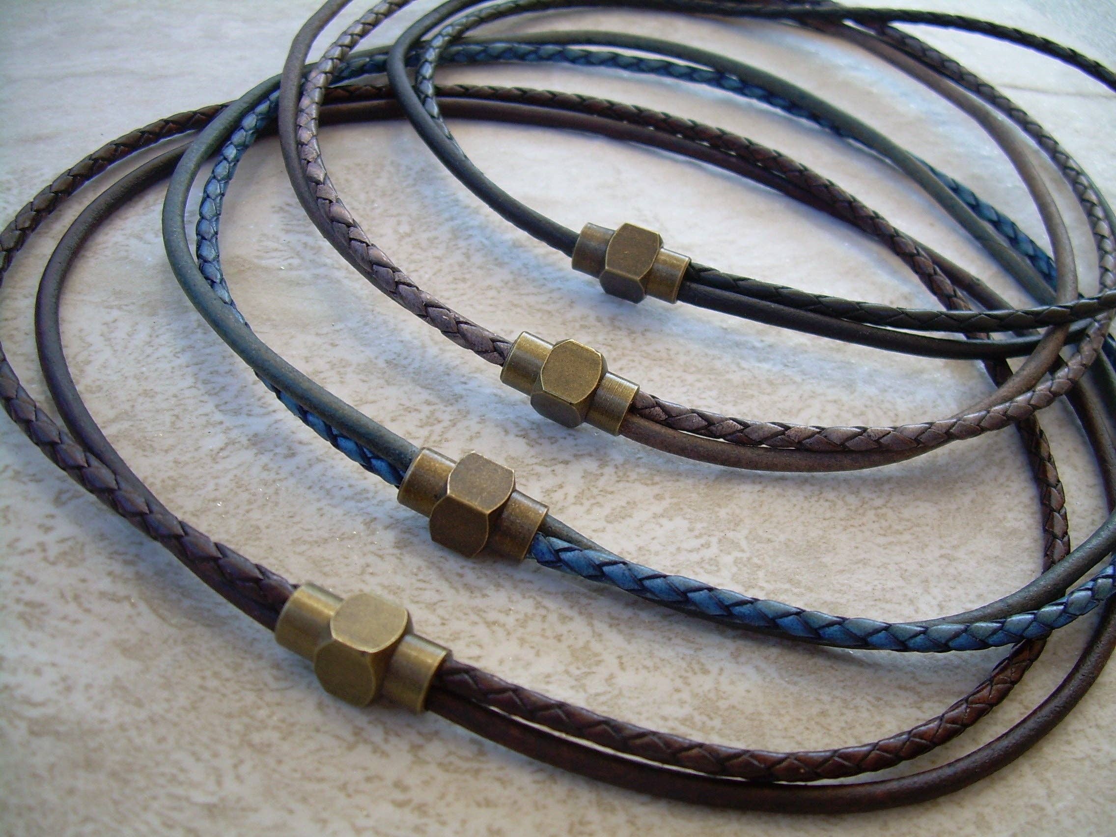 ESTABLISHED 2009 -All made to order in my Marana Arizona studio, I am pleased to offer Hand Made Fine Imported Leather and Alternative Metal Bracelets, Necklaces and Chokers, for Women, Men and Teens. My leather suppliers only use dyes that are certified 100% Lead-Free and meet all requirements of the German Goods Ordinance, REACH (European Union), ROSH (U.K.), and CPSIA (U.S.) which require consumer goods to be free of Lead, AZO’s and carcinogenic chemicals. Be careful with Imported jewelry which may not comply with these quality standards. All of the metal components that I use in my collection are Lead Free and many of them are Nickel Free as well. Please contact me for any metal specs. WHOLESALE : Urban Survival Gear USA is proud to work with several Retail Partners all over the country. Please drop me an email if you would like wholesale information. SIZING: Please order by your firm wrist measurement. Wrap a piece of string around your wrist - just over the wrist bone...not tight or loose, just a perfect measure. (do not add any extra length – I will do that) Cut the string and lay it flat on a measuring tape. If you give me that exact measurement, I will make sure to custom fit it to your wrist allowing just enough length for leather, clasp and a custom comfort fit. All items are sized and made to order.... so I can fit ANYONE! CUSTOM: If you need anything.... special sizing, coloring, mix or match etc...just let me know, I am happy to work with you in creating