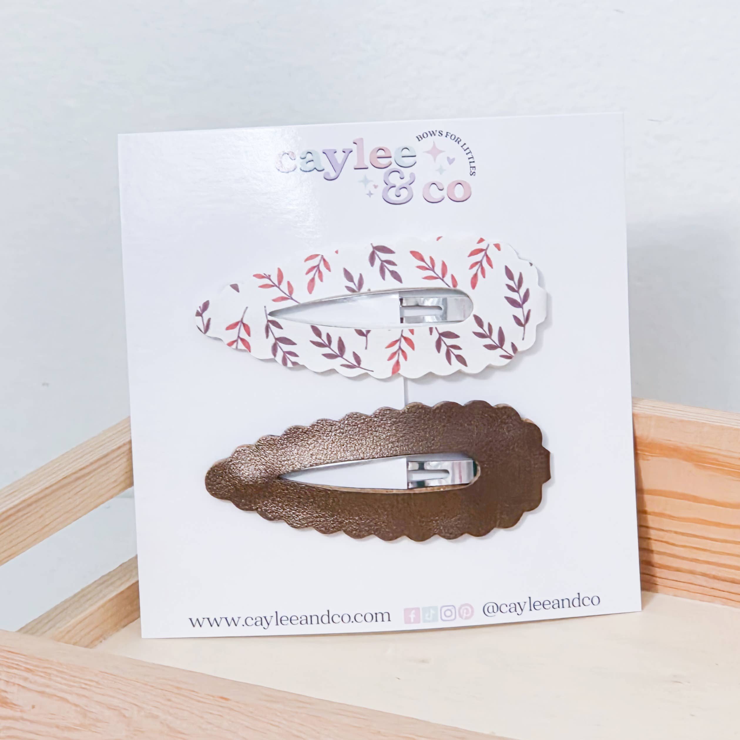 I'm ChanTell, wife, mom of two, and the brains and hands behind every Caylee & Co bow. Caylee & Co began just months after my daughter was born prematurely in 2015 and most headbands could not fit her at a wee 5 pounds. As a new SAHM I wanted to create a way to help provide for my family while being present for every moment and utilizing my passion for making in the process. I've always been a crafty mama, creating many different things but hair accessories are my passion. I offer a wide variety of accessories made with love and lots of iced coffee here in Michigan.