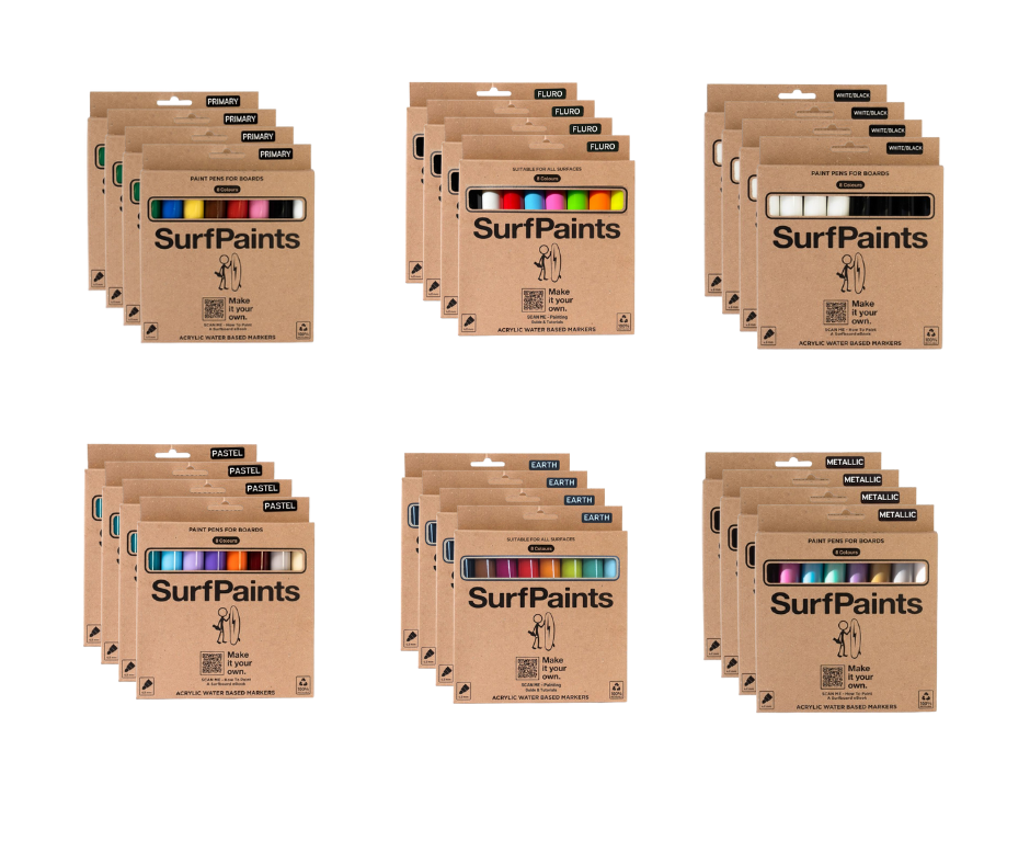 Surfpaints began with a mission to create a high-quality paint pen for customizing surfboards, but it didn’t take long for the art community to embrace our pens for their versatility and vibrant results. Today, Surfpaints is loved by artists, hobbyists, and educators for its ability to work on nearly any surface—wood, glass, ceramics, metal, and more. Proudly Australian-owned, we’ve grown over the past five years to be stocked in over 150 stores across Australia & New Zealand. We also have presence in South Africa, Indonesia, Maldives, Singapore, Europe & USA. Our water-based acrylic paint pens deliver bold, durable colours that help creators bring their ideas to life, whether it’s for art, DIY, or professional projects. We’re passionate about partnering with retailers who share our love for creativity. Surfpaints is here to make art accessible, fun, and inspiring for everyone.