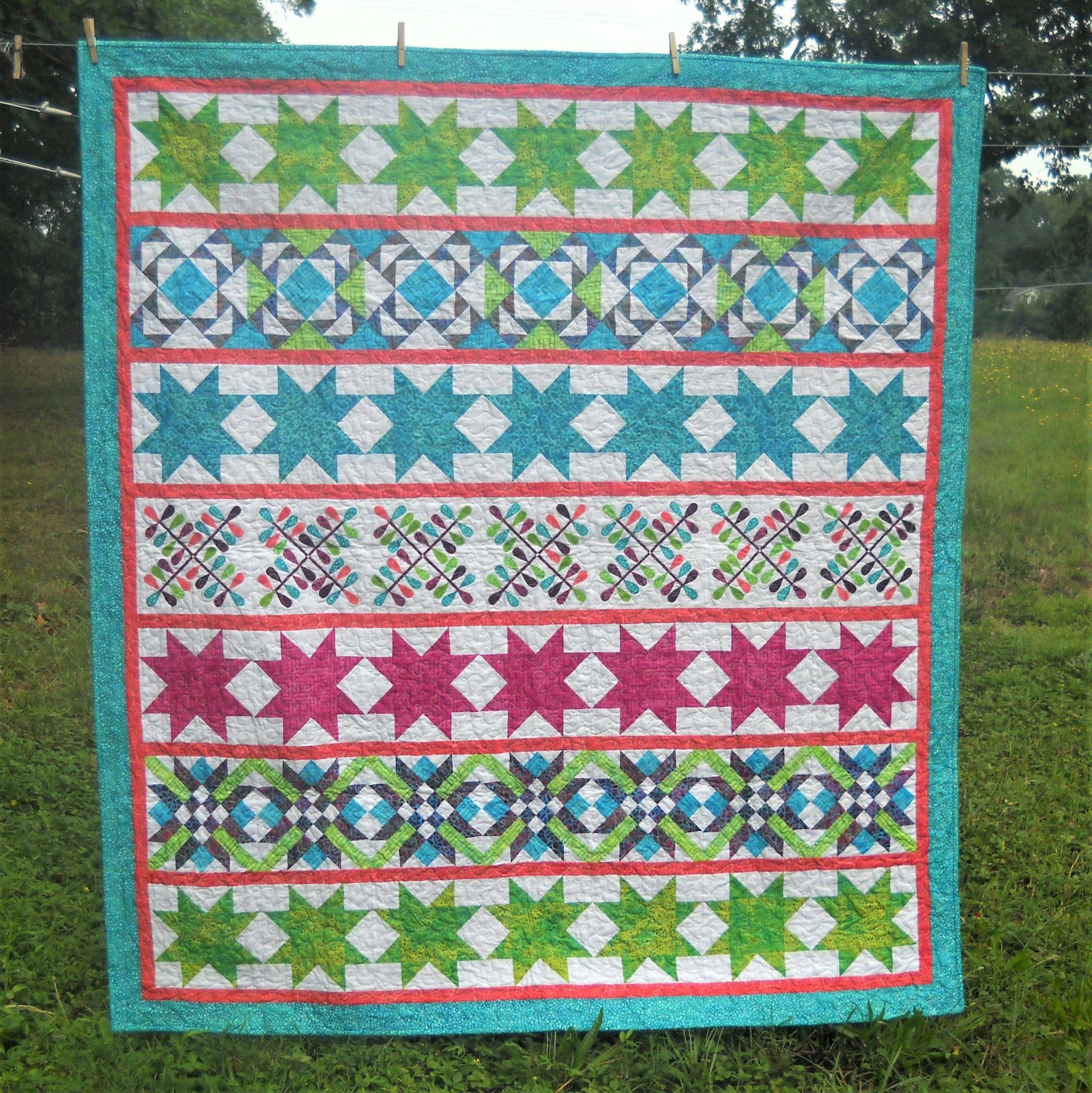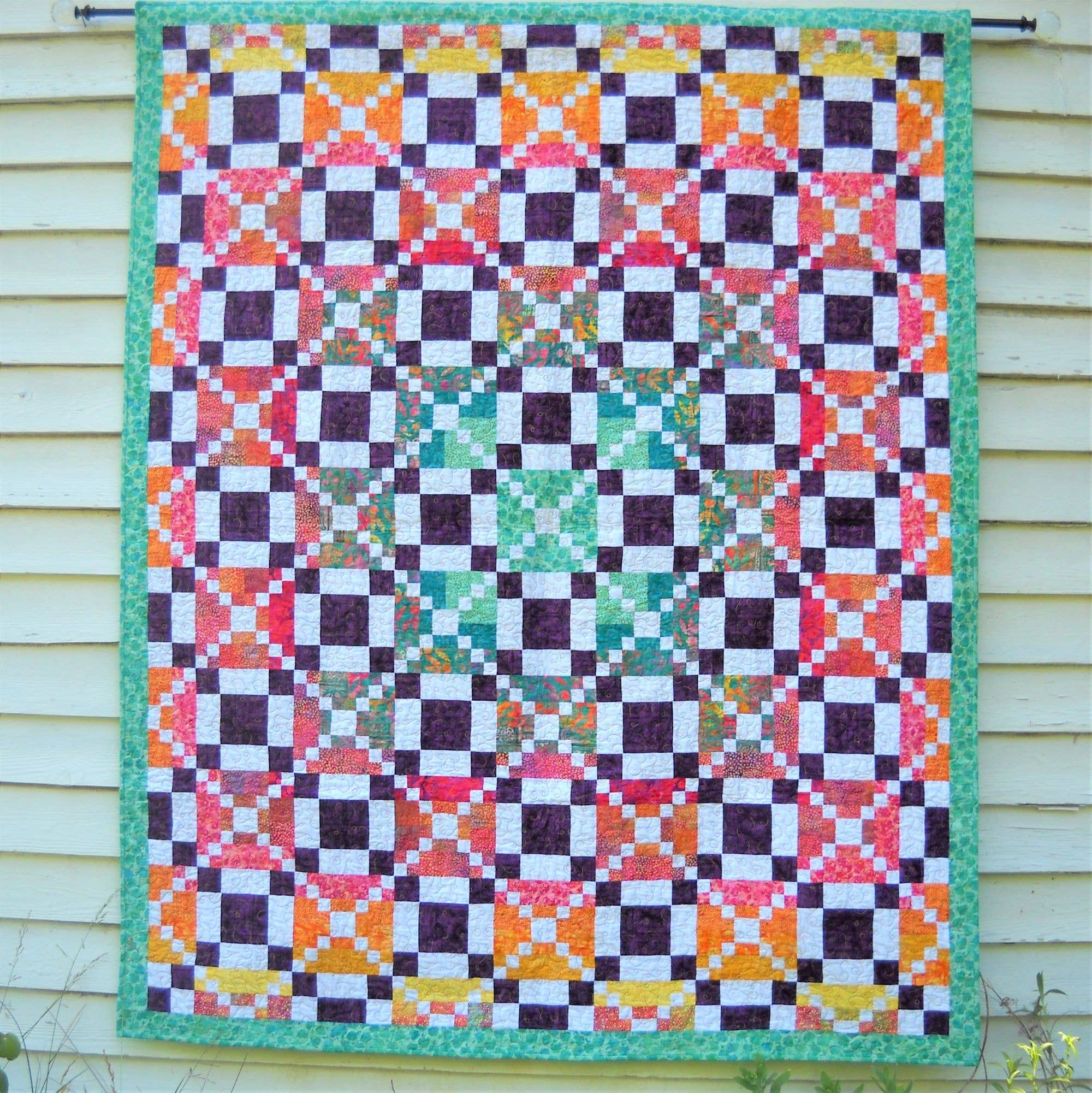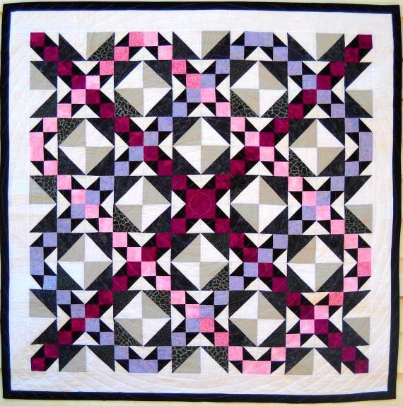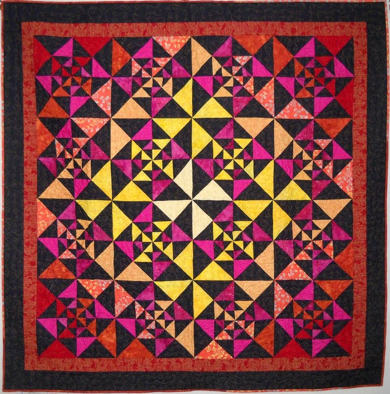 Once upon a time there was a girl with a passion for color and design. She spent endless hours rearranging her 64 crayons into different color families, drawing explosive designs filled with shapes, saturated with bright colors, and filled in with all her most secret emotions. She spent years locked away in the uppermost room of the tallest tower of her daydream castle, always creating new designs, filled with the spark of excitement that only comes with true inspiration. Her dilemma? She had more ideas than she could create herself. How could she share her ideas with the world? How could she spread this passion and joy to other like-minded living souls? She began this great quest by submitting quilt designs to magazines. Publication! How wonderful to see her ideas in full color with complete instructions. Even better to see other quilter's interpretations of her work. Satisfaction, indeed. But how to further spread the joy? Finally, an answer to that question. Her very own pattern company, Curlicue Creations was born. A place where all of humankind can converge, seeking out new ways to "get creative", express themselves, and enjoy the simple, heartfelt, joy of quilt making. And she created happily ever after....