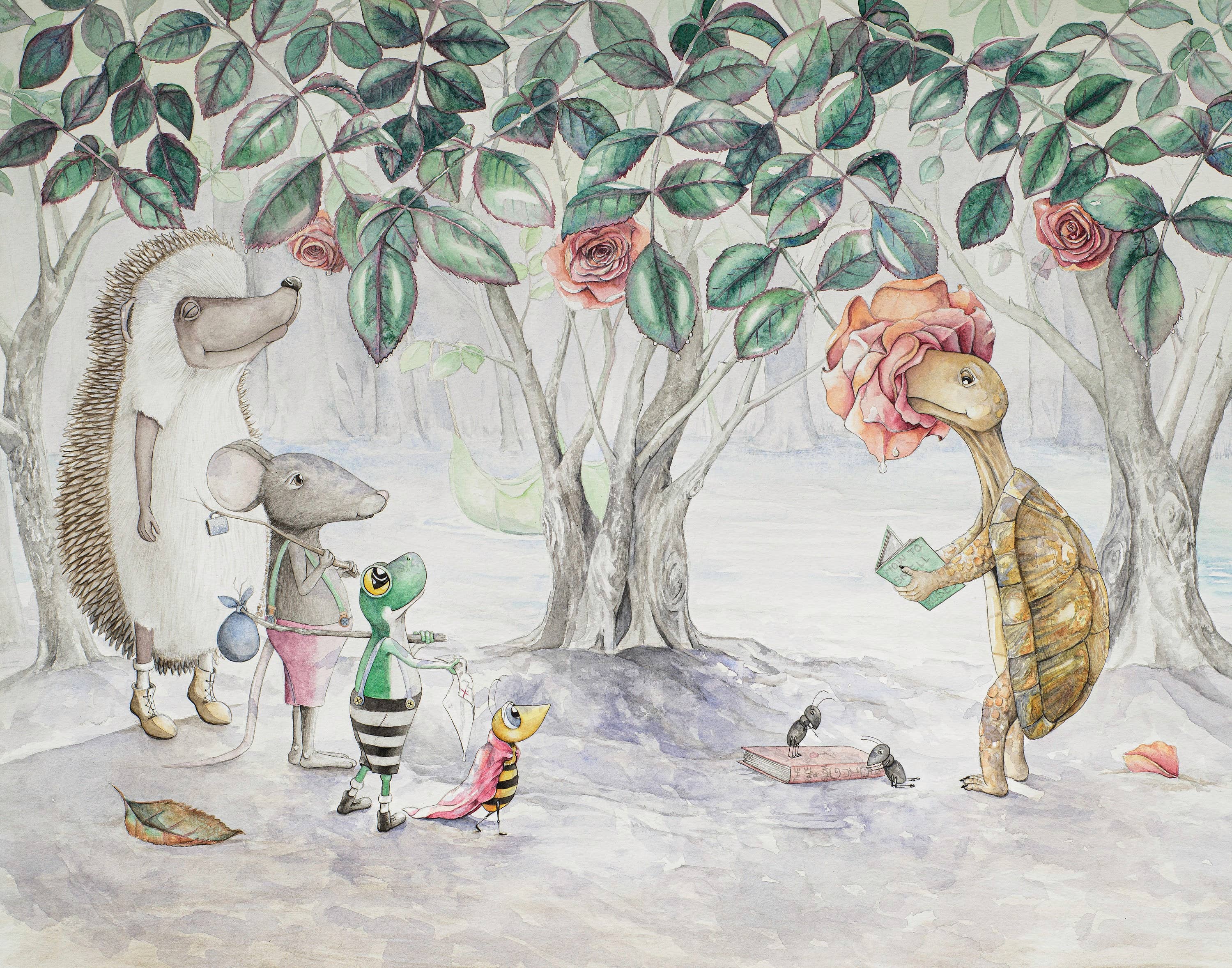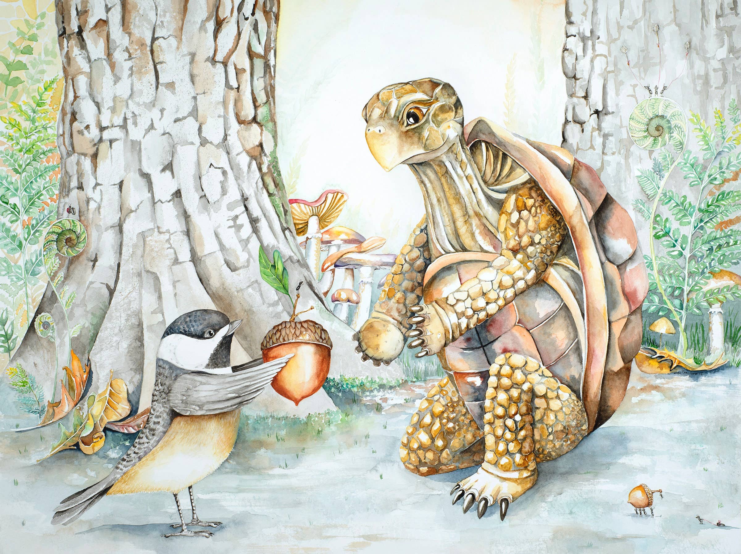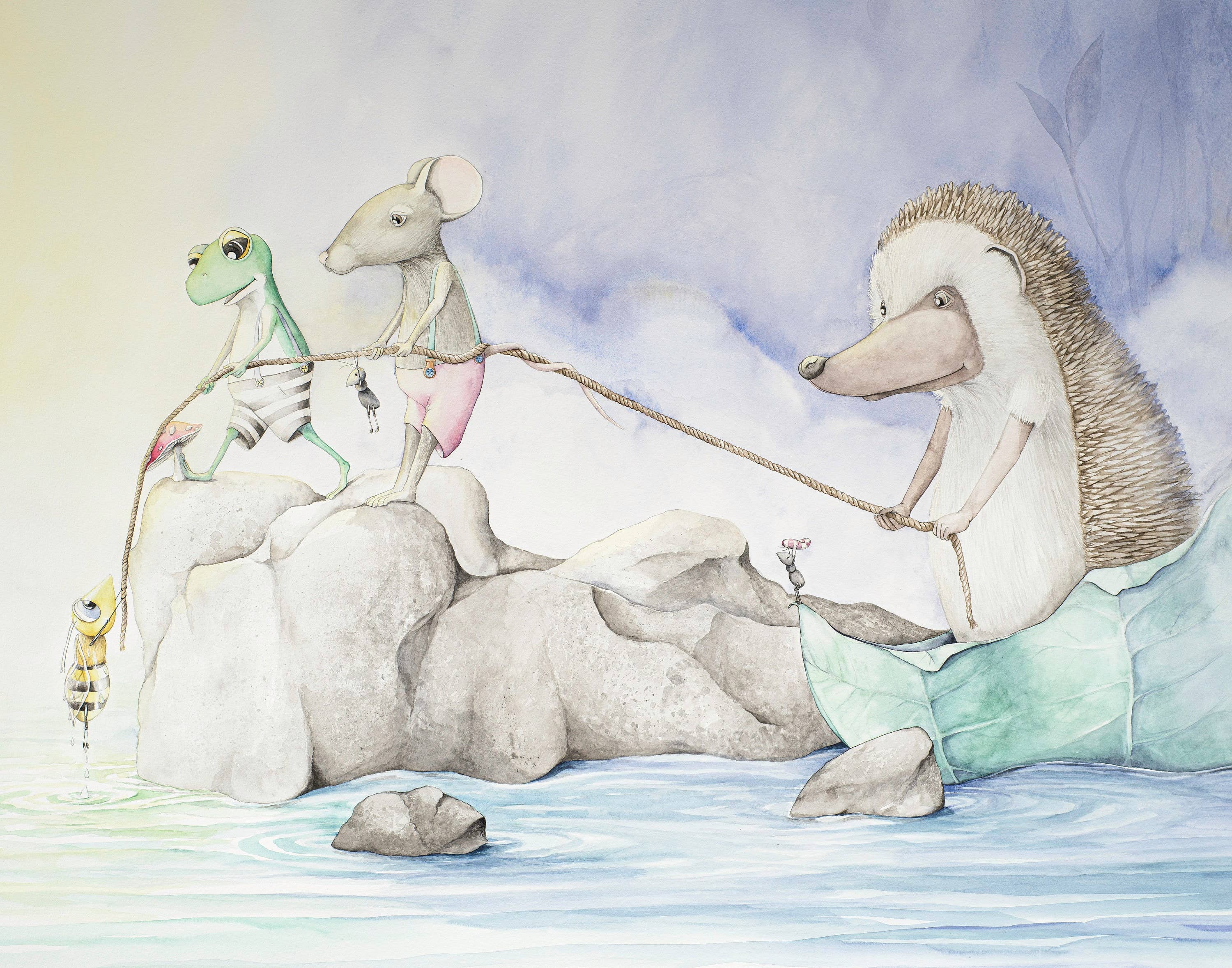I love creating work where our inner child and our adult selves can meet. My sneaky plan is to use whimsy to tell just enough of a story that the viewer is drawn in:.....and then starts to fill in the mystery with memories of their own. I have two main styles that I tend to flip flop between. Straight watercolor and mixed media watercolor. With straight watercolor there is a detailed pencil sketch and then watercolor. This style is very planned out, controlled and technical. My mixed media watercolor technique is more experimental and abstract. I create the background first, usually with no preconceived notion of what it’s going to look like or what kind of story it will tell. I move paint around and see what happens! I find going back and forth between these two opposite techniques prevents burn out.