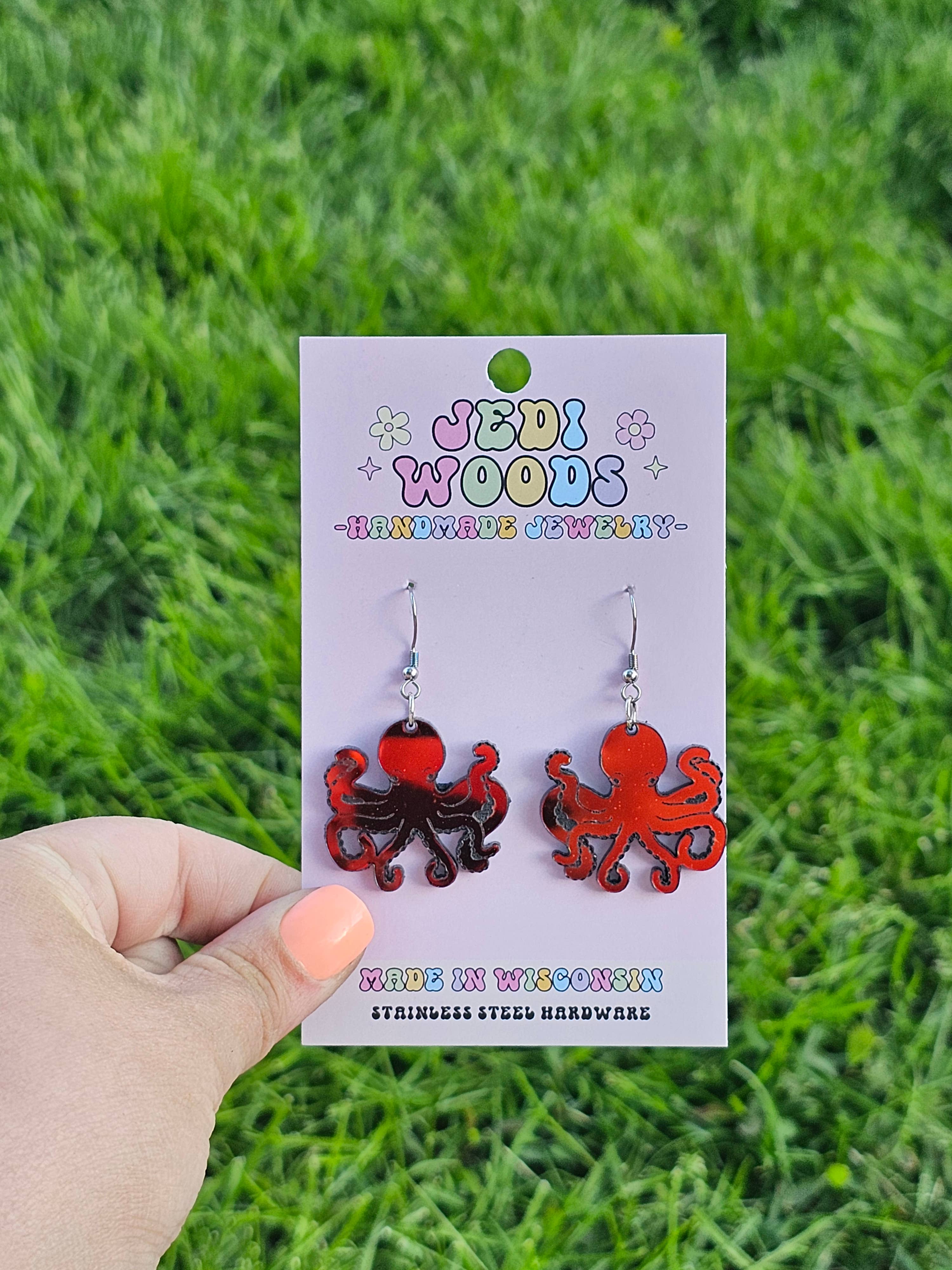 WE ARE UPDATING OUR PACKAGING! COMING THE LAST WEEK OF MAY! Jedi Woods is a family owned, woman ran, Lgtbq friendly business out of Green Bay, Wisconsin! Main Cheese - Cindy. Our brand started in 2022 when I was looking for change! After the addition of our second child, we struggled to find a new normal. After surfing social media during the long nights of newborn care, I fell into watching videos of laser engraving and cutting machines. Within a few months we had impulsively purchased our own and were on the journey to make our own crafts! After a steep learning curve, we realized laser cutters were a piece of machinery that definitely required a lot of work and learning. After countless tearful nights, Jedi Woods was finally started as a facebook page. Combined with our main material at the time and my husbands love for Star Wars, we created Jedi Woods as a place to share our craft creations. When we first started we had no intentions to sell anything we made but quickly realized with the help of friends and family, that we had a demand for the unique items we were creating! In late 2022 I finally found my niche in Jewelry making and over a year later it remains our best selling category. With the help our our business I was able to leave my corporate job and begin crafting full time and creating a brand I was proud of. Investing in our brand means you get to grow with us and we are so excited to grow with you!