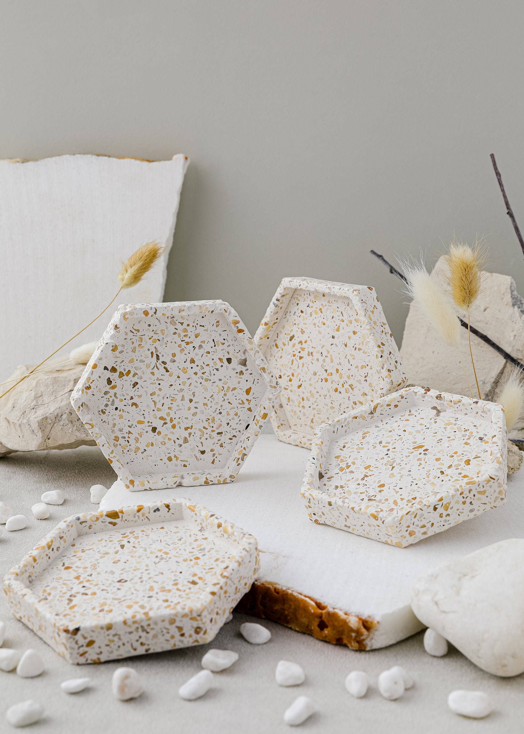 Nema concept was created out of our love and desire to keep our home environmentally friendly and it’s atmosphere beautifully scented. The concrete containers and terrazzo ones are handcrafted and painted from the very beginning by our team in Greece. For our candles we use 100% soy wax (no blends) which is of course poured by hand, so that is why each candle is unique and has its own character. All our products come in an eco-friendly packaging made from recycled or Bio-based Materials. We believe in quality over quantity so we aim to create products that last long. Our mission: 90% of the candles on the market are made of paraffin wax, which emits carcinogens in the air and is generally recommended to burn in open air environments. The soy wax we use is a non-toxic and safer alternative for humans, pets and the environment. We use 100% (vegan friendly) vegetable wax made from the oil of soybeans, so be sure that when you use soy wax you will find slow, uniform and most importantly clean burning. Our goal is to create something beautiful and unique that can be used over and over again and leave a green imprint with zero waste. In addition, the materials we use for our packaging are all recyclable.