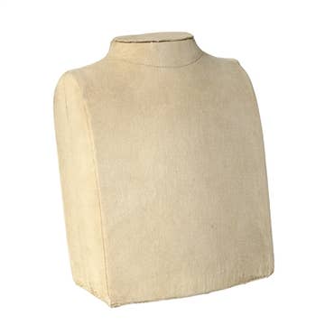 Designed after a European classic our Tabletop Bust has a solid core covered in slightly distressed fabric, a beautiful piece to display jewelry upon.