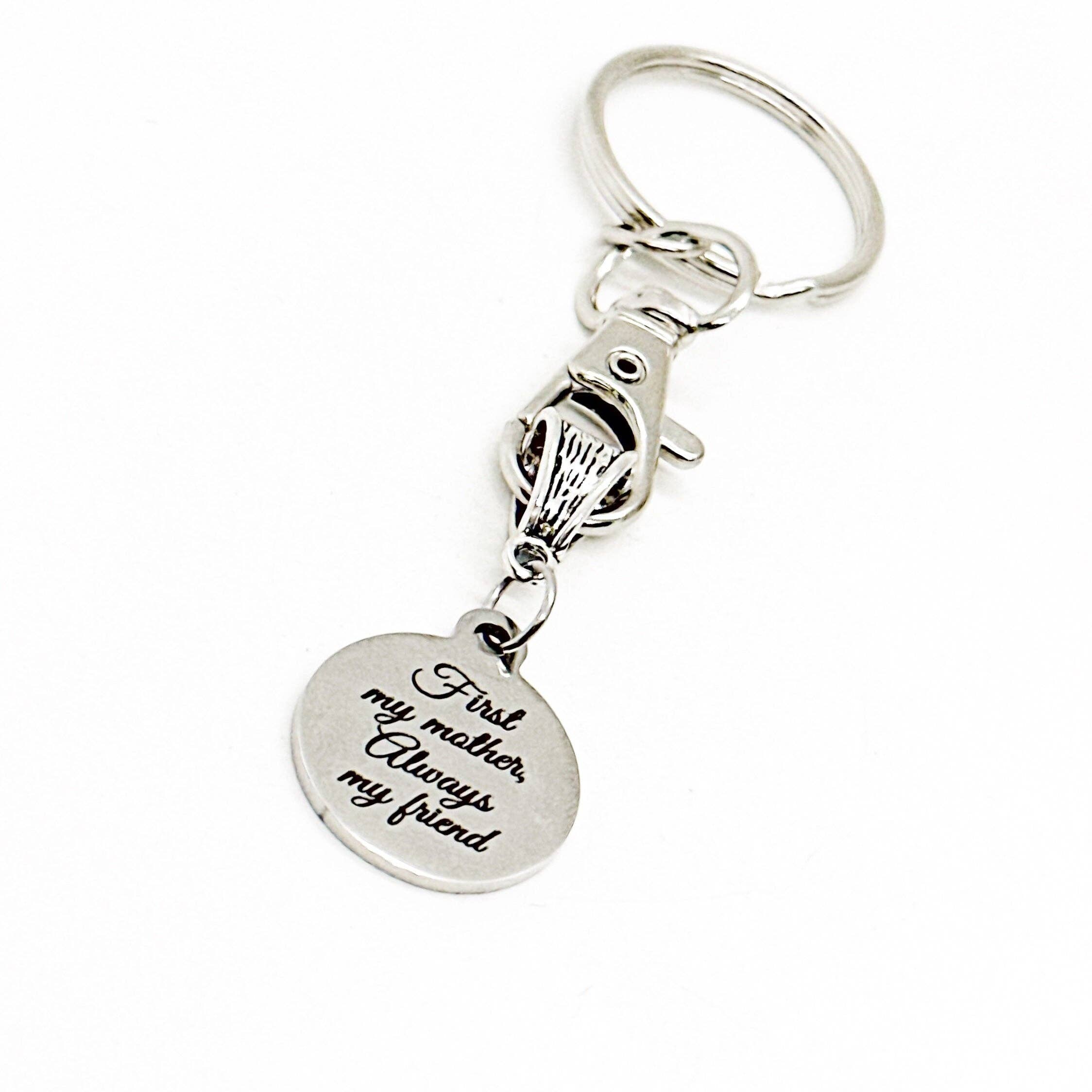 One of our 100% genuine American pewter charms hung from a steel standard size key ring.
