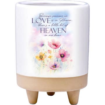 I thought of you today bereavement angel flower pot this flower pot is a thoughtful and comforting bereavement gift, especially if you add your own soil and small plant! Flower pot has a terra cotta tone and is engraved in white with the poem "I thought of you today". Attached angel figure, holding a heart, brings an extra little touch of comfort. Bottom of flower pot has small drain hole. Height of piece is 5"; diameter of opening at top is 3". Made of resin. Text of poem: I thought of you today, but that is nothing new. I thought about you yesterday and days before that too. I think of you in silence, I often speak your name. All I have are memories and your picture in a frame. Your memory is a keepsake from which I'll never part. God has you in his arms, I have you in my heart.