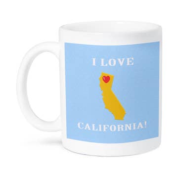 Our "I Love You California" Bear Hug Mug combines hand painting with spot decals of vintage art from the 1913 sheet music cover for the California State Song, "I Love You California!" 3.75" x 3.75" x 5.25" 16 oz. capacity gift boxed Dishwasher and microwave safe - may get hot. MSRP $14.95