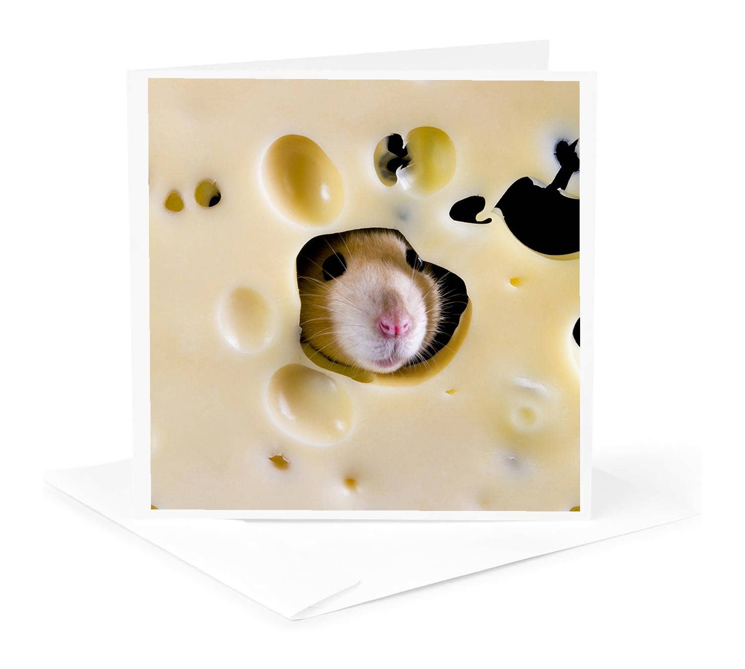 Say hello with this everyday notecard filled with cheese! Printed on 100% recycled paper and paired with a coordinating envelope. Blank inside and sealed in a protective cellophane sleeve. Size A2 (4.25" x 5.5"). Blank patterned card features an illustrated pattern of cheeses.
