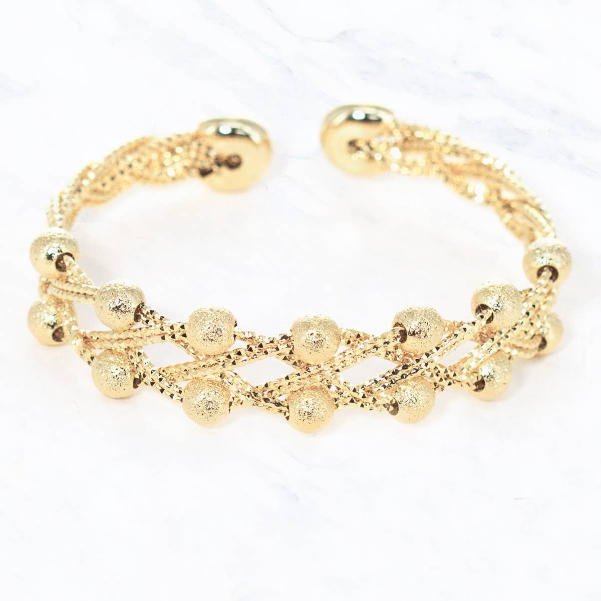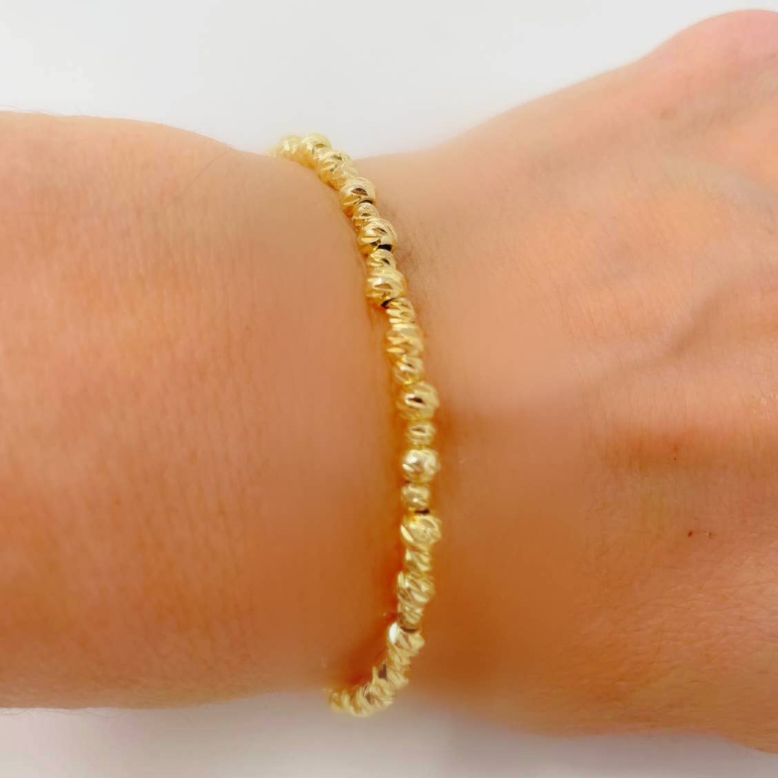 Bauble Bracelet- Playful yet sophisticated this bracelet is sure to become your favorite. Matte gold plated for a warm golden finish that has a subtle glow. 7" - Need a different size? No problem. Let us know what size you need and we will make it happen. Resist tarnishing Handcrafted in Florida Due to the handcrafted nature of our product, all items will vary slightly