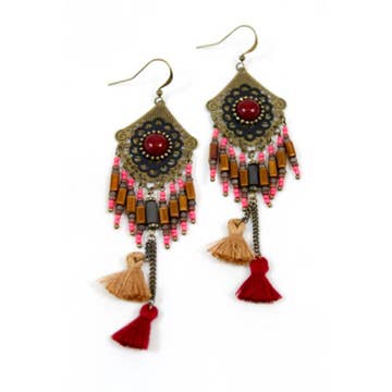 Pretty hand-dyed ombré swirl appliqués with an assortment of hangings. Ombré Swirl Earrings measure 2 inches long by 0.5 inches wide. Materials: hand-dyed applique, crystal cabochons, resin beads, antique gold and antique silver findings, castings, gold filled earwire.