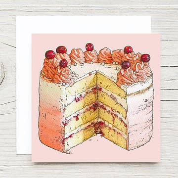 This card features a hand-painted illustration and includes the phrase “The icing on the cake.”