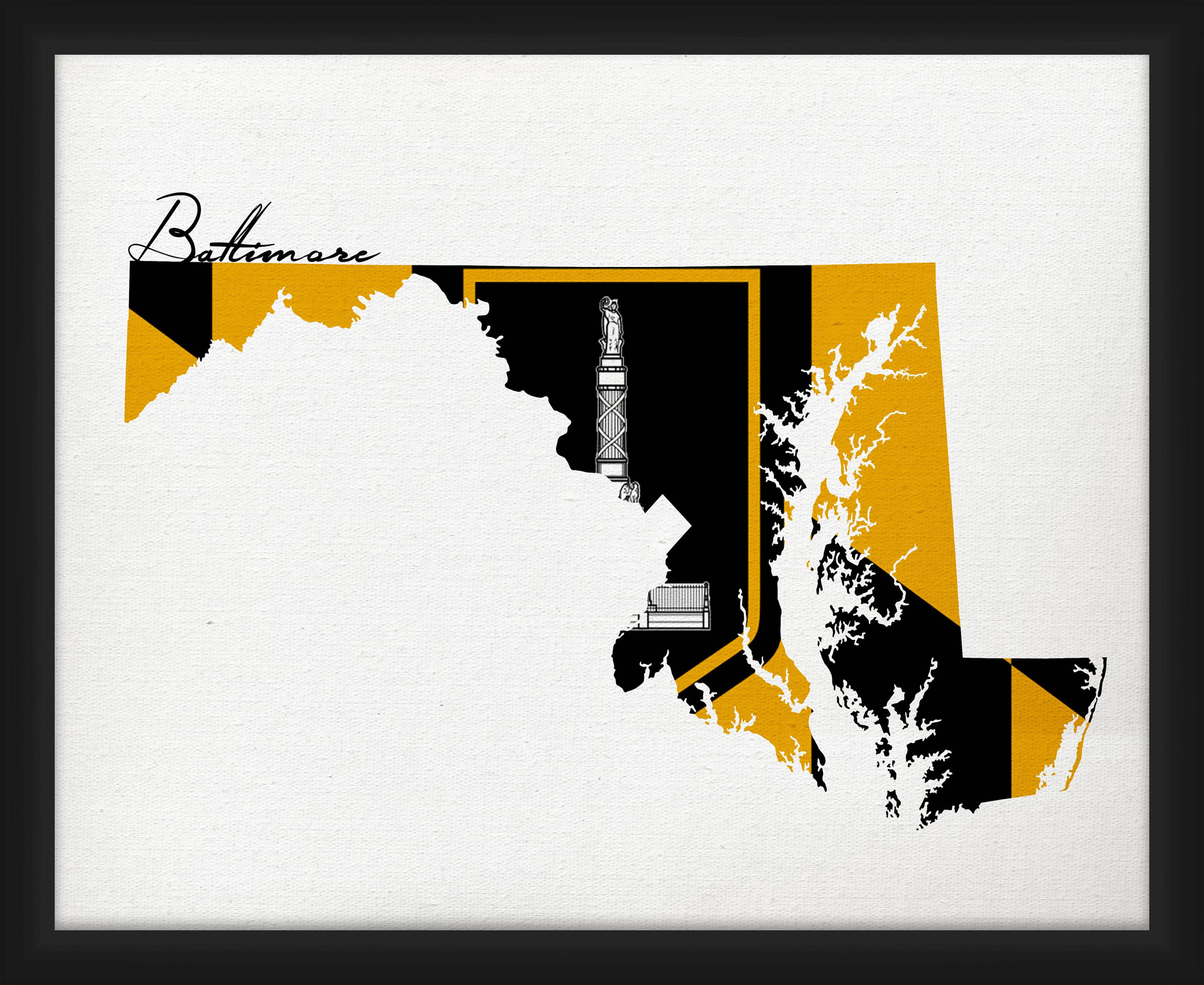 This high-quality print measures 11 x 14 inches. The frame is not included. There is no need for custom framing. Premade frames are easy to find for this standard size. The print ships sealed in a clear cello bag along with a sturdy backer board. This design is also available as a magnet and greeting card. Made in the USA.