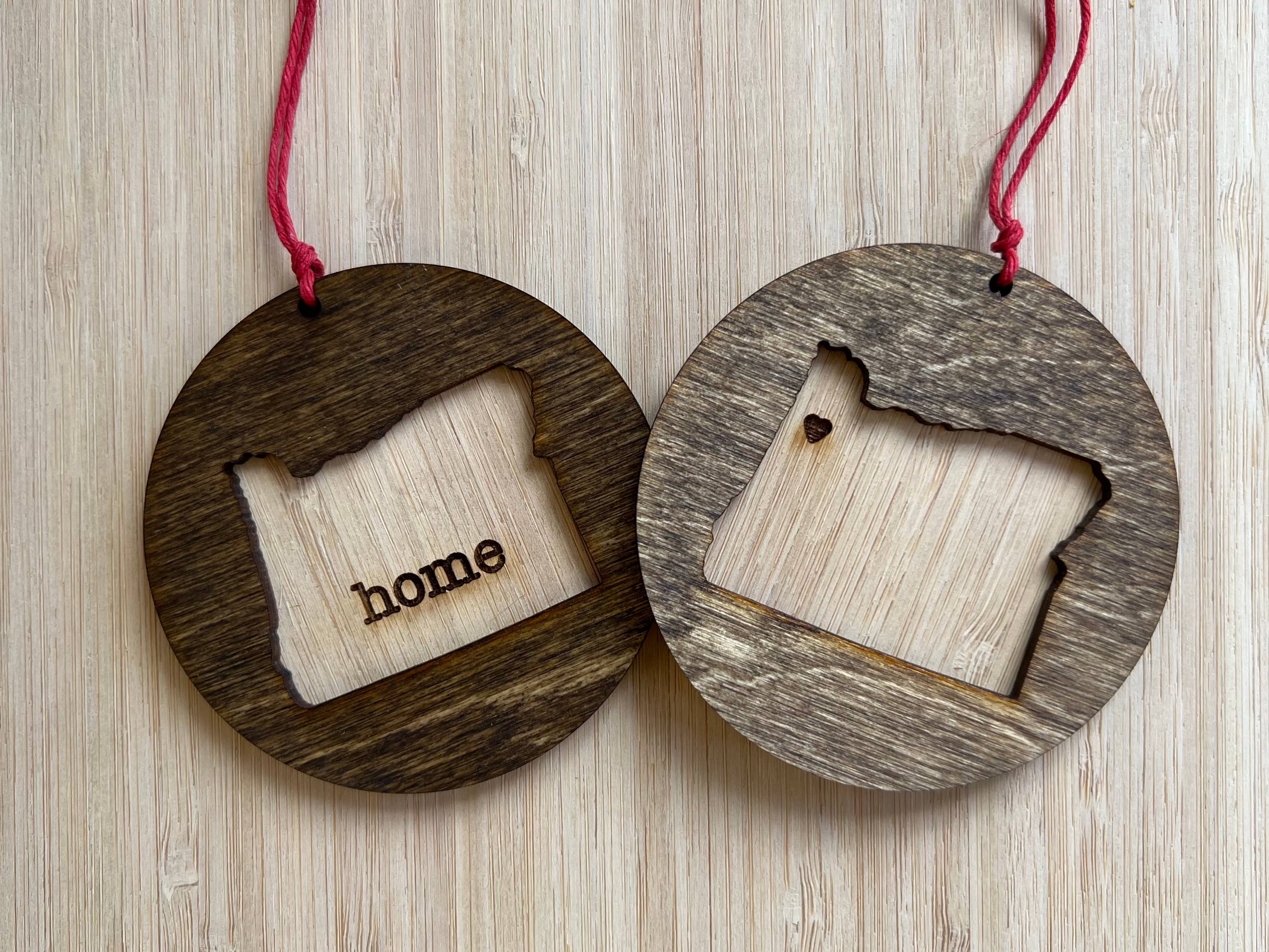 Let your customers show their pride with this Oregon diorama featuring Mt. Hood set against a magnificent rainbow sky. Available as an ornament or magnet. Oregon Diorama Ornaments are made from layered wood to create a three dimensional scene with incredible detail. Ornaments are mounted on an eye-catching 3" square blue card and hang with a hemp cord. Magnets are made with a strong rare earth magnet embedded in back.